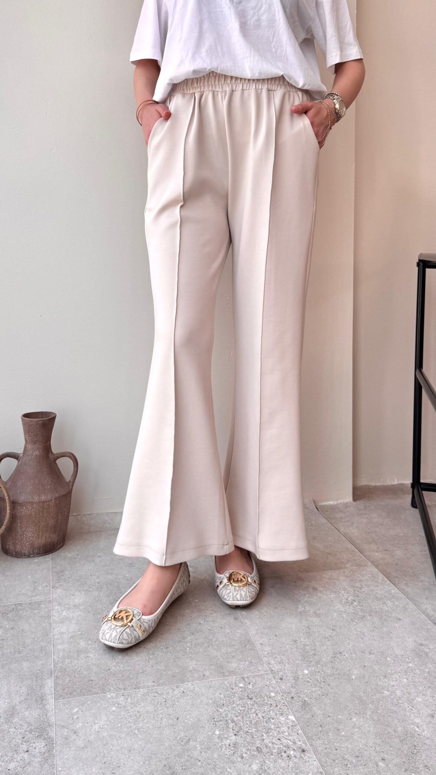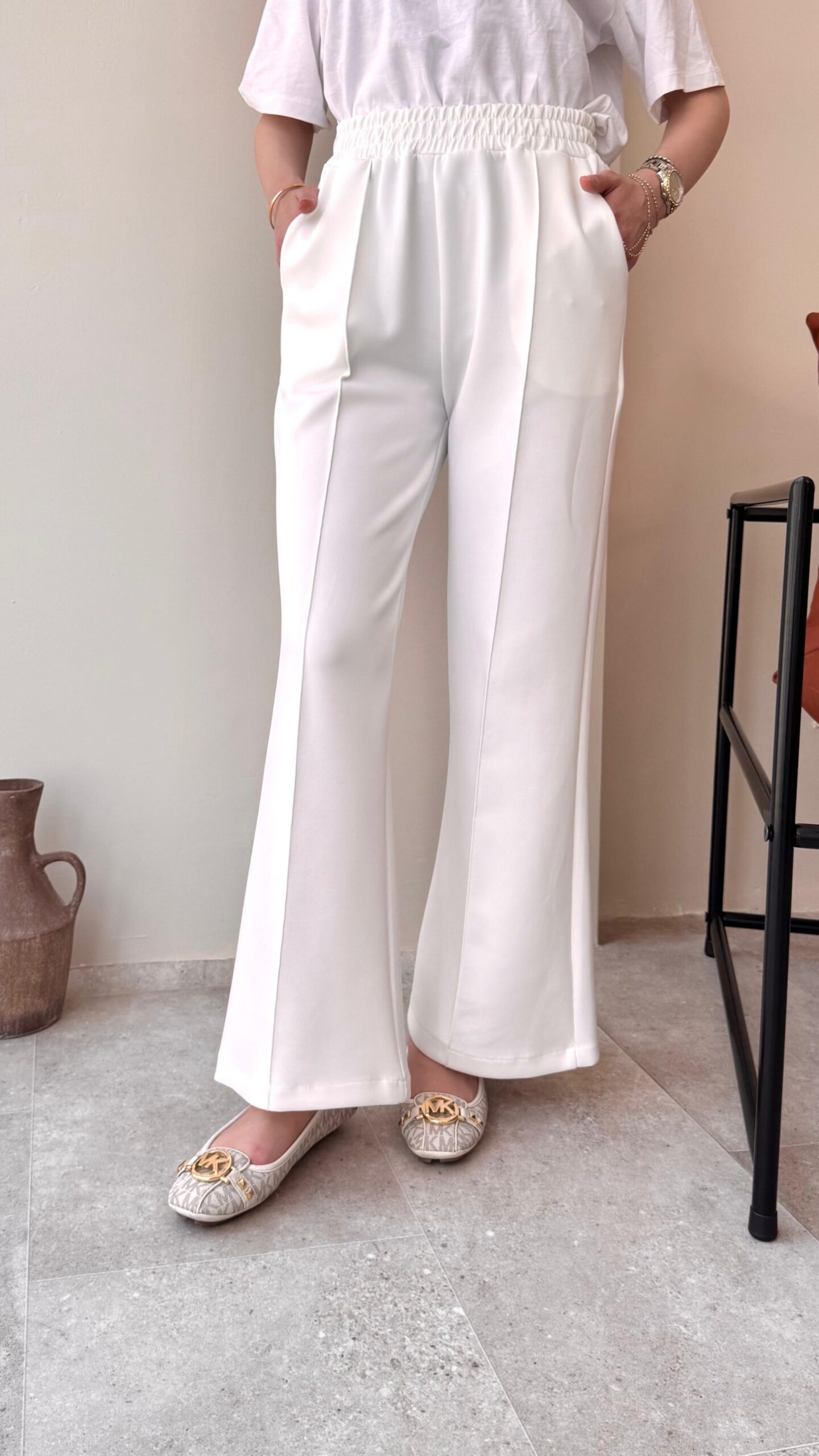 Düz Kesim Scuba Pantalon – Beyaz