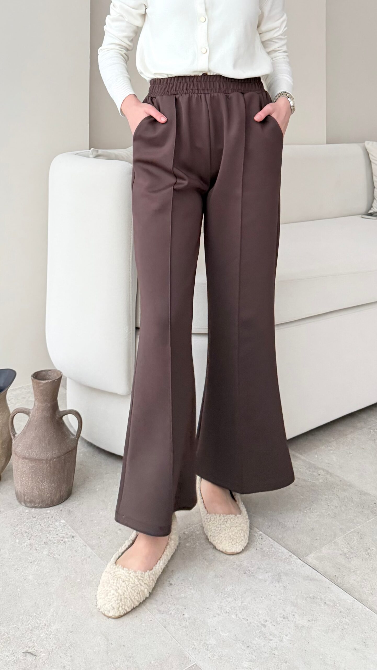 Uzun Scuba Çimalı Pantalon – Kahverengi