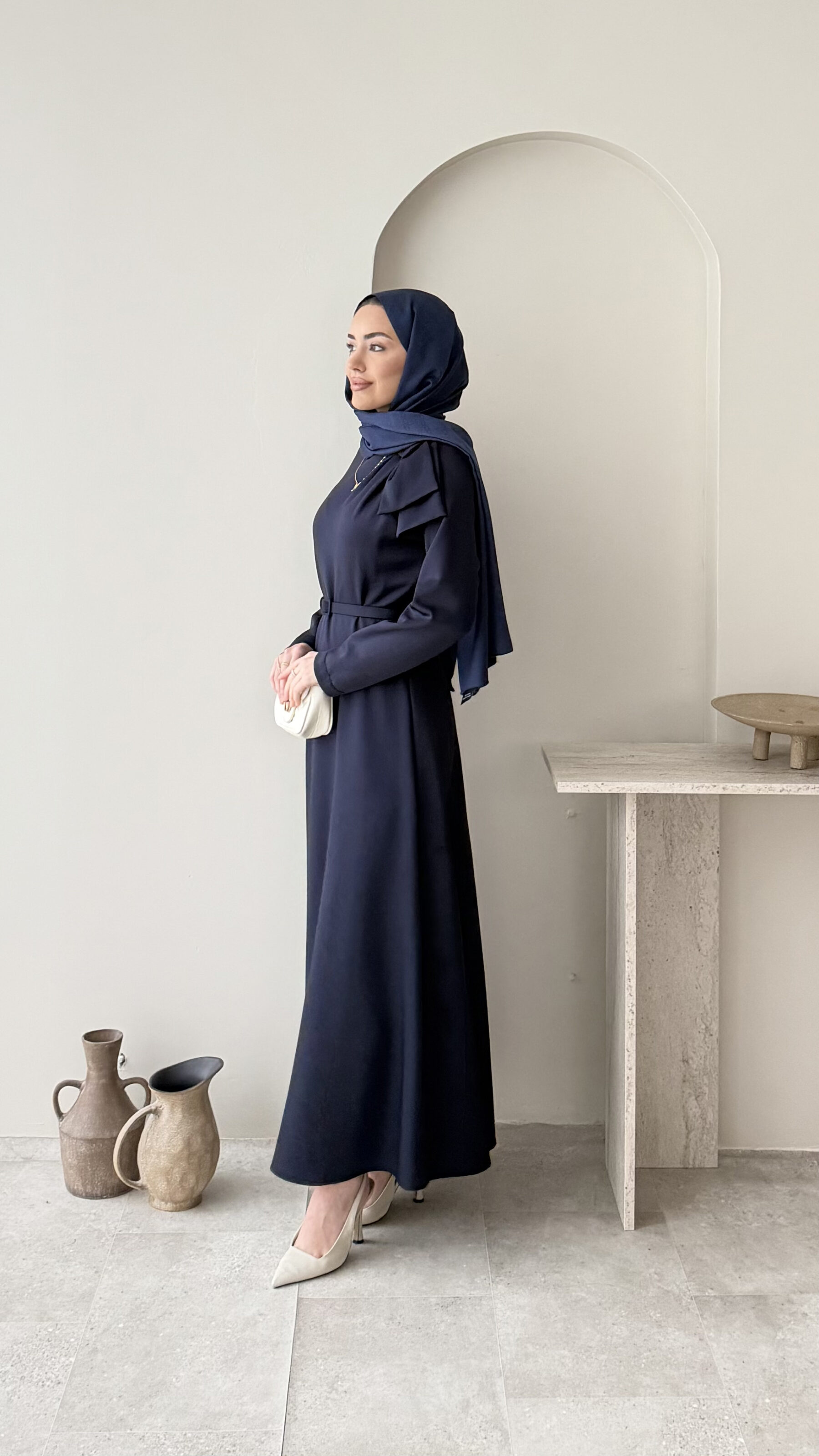 Sare Pileli Elbise – Lacivert (ön sipariş)