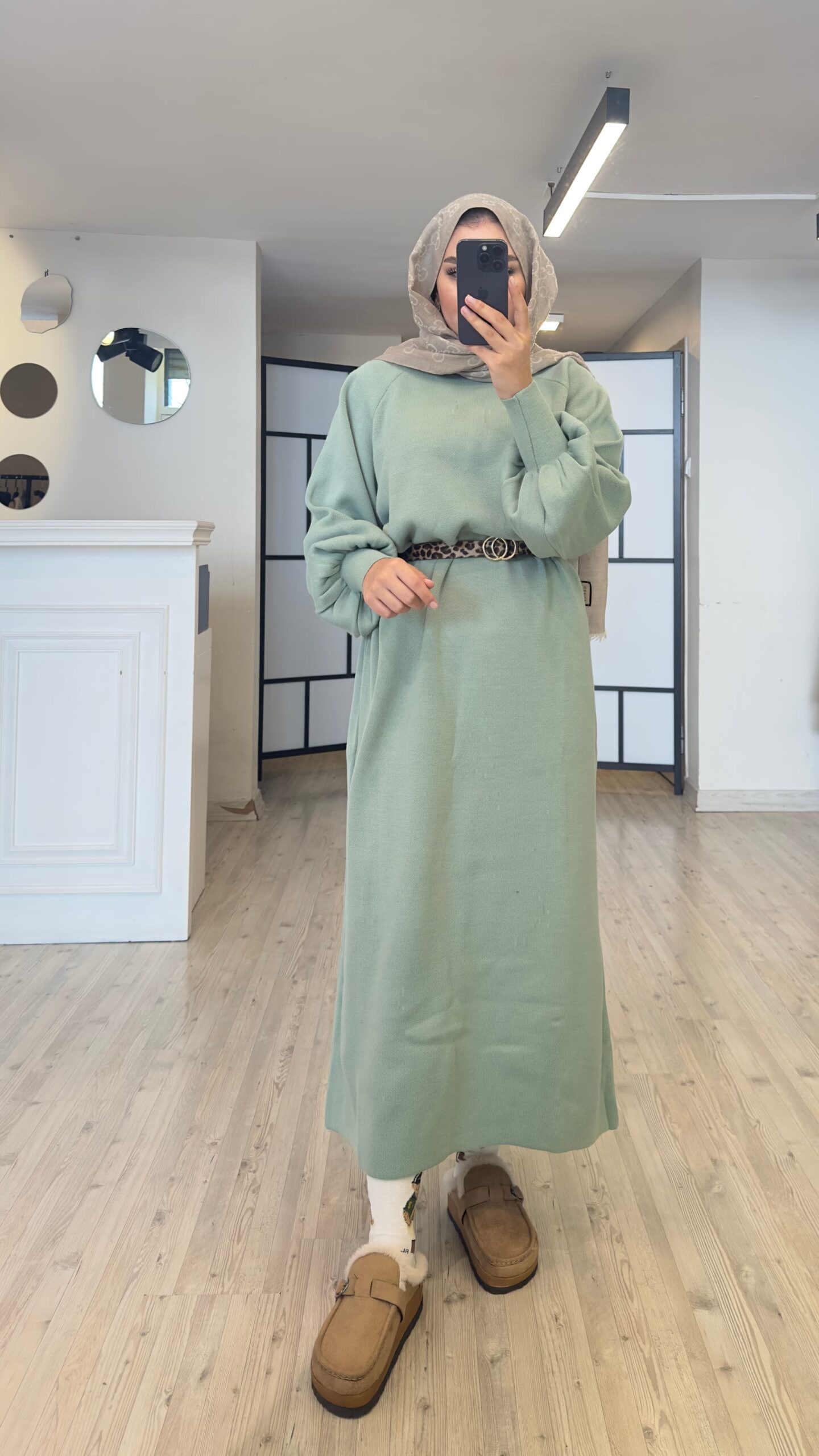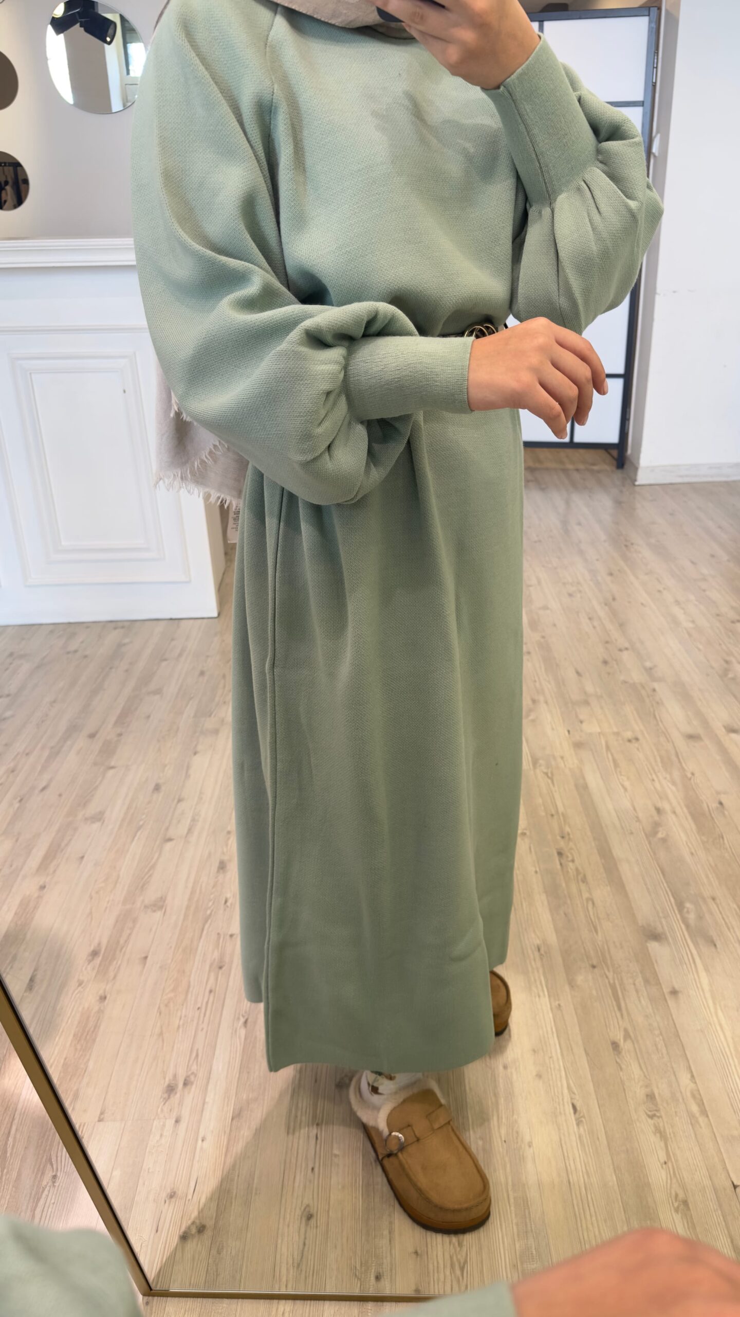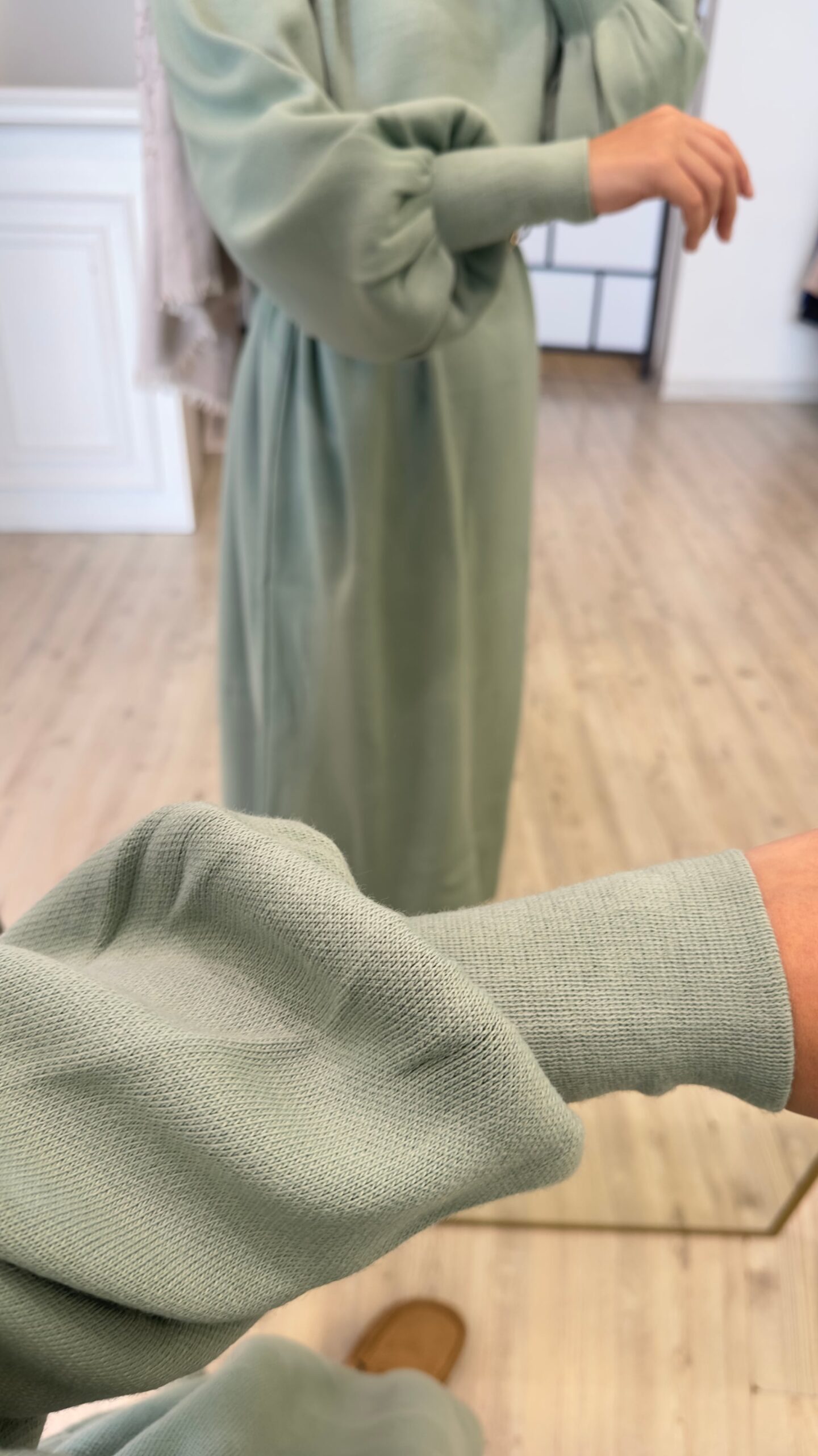 Balonkol Triko Elbise – Mint Yeşil