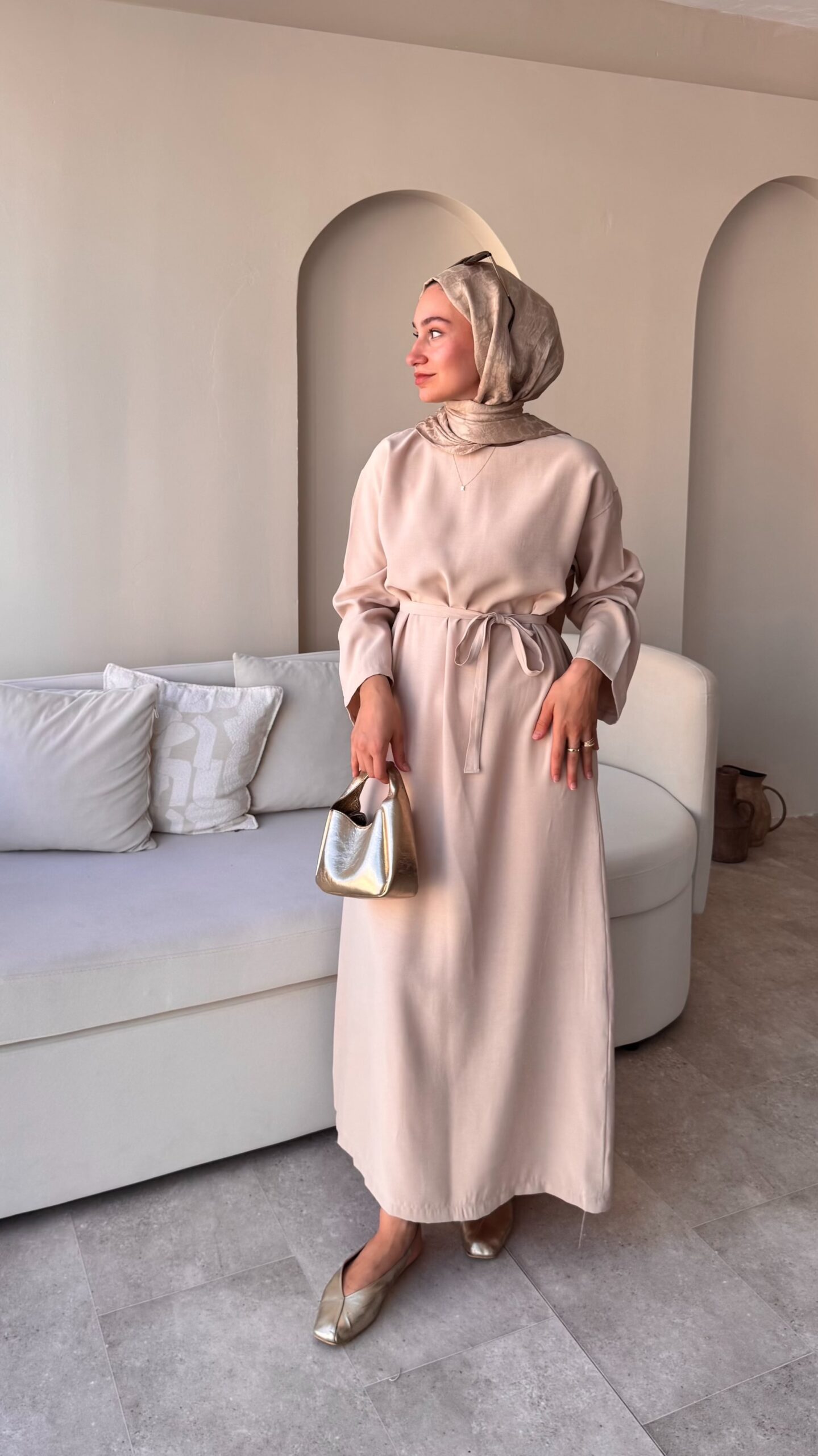 Esil Tensel Elbise – Bej