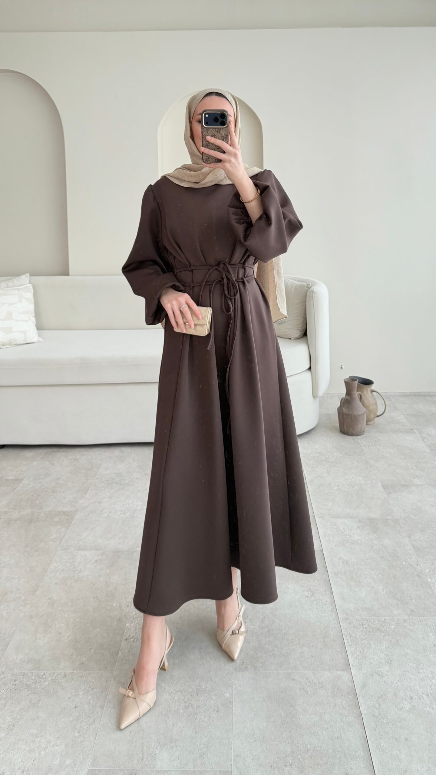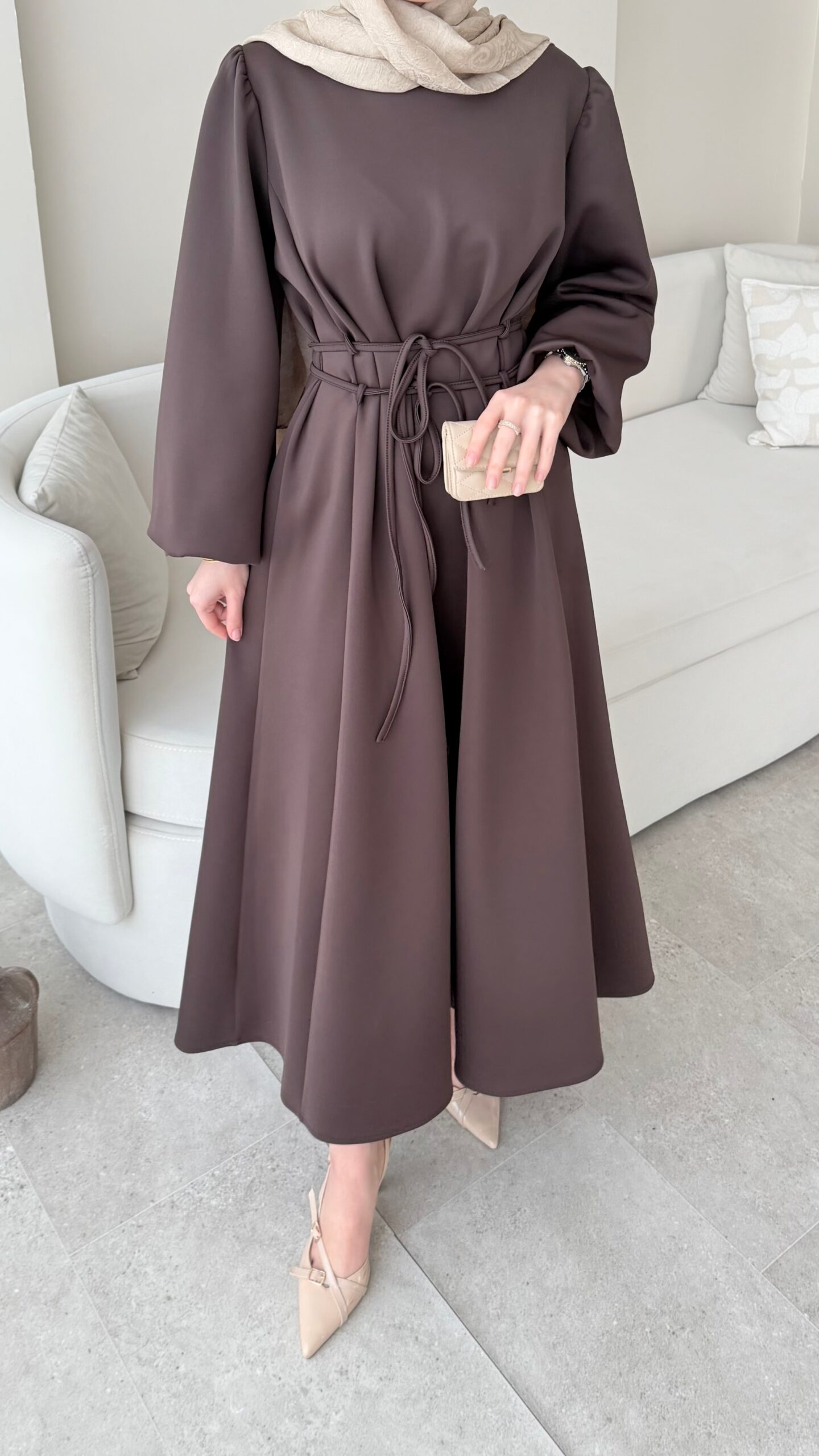 Lovra Bağlamalı Scuba Elbise – Kahverengi