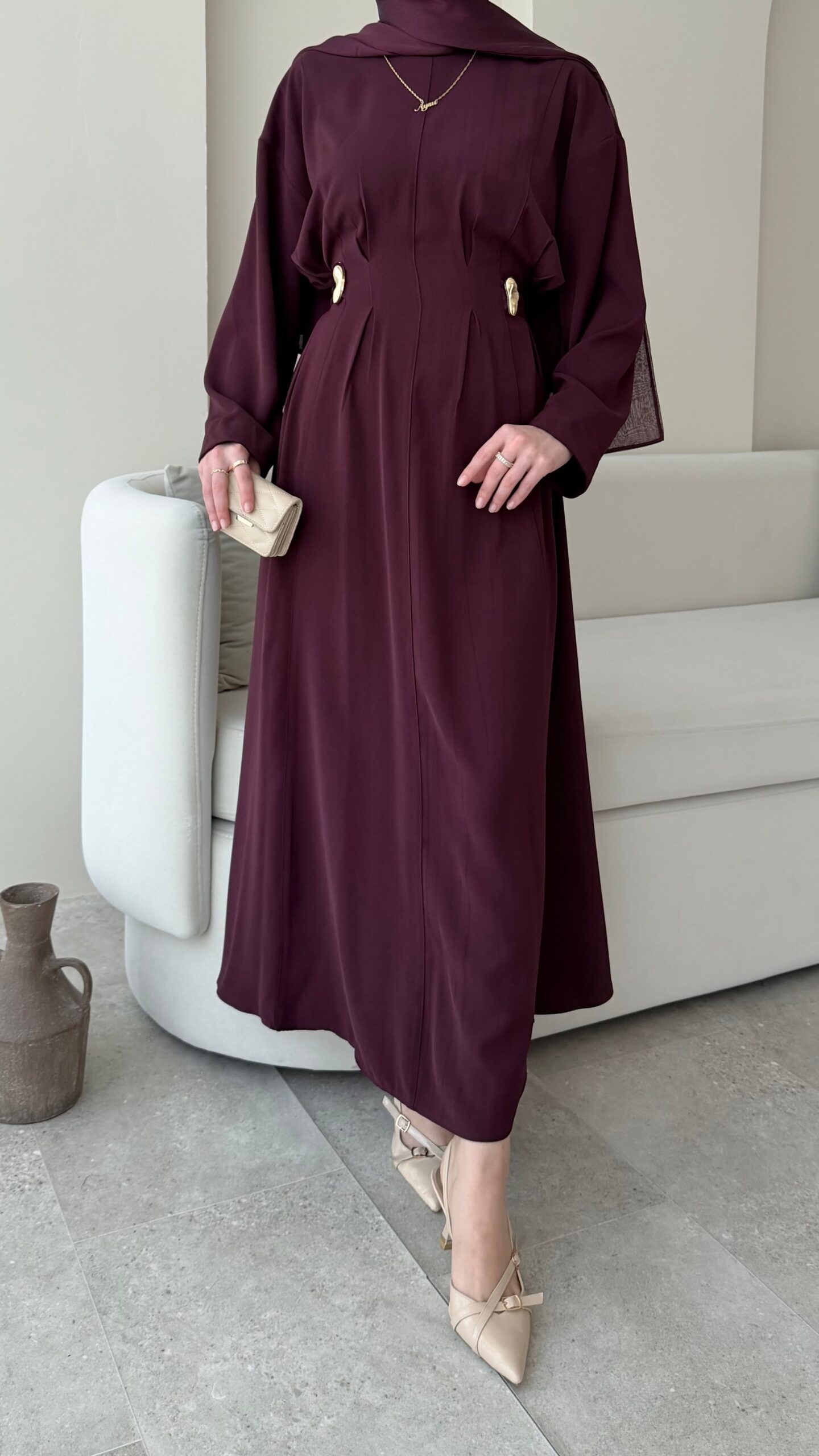 Meyla Gold Detaylı Elbise – Bordo