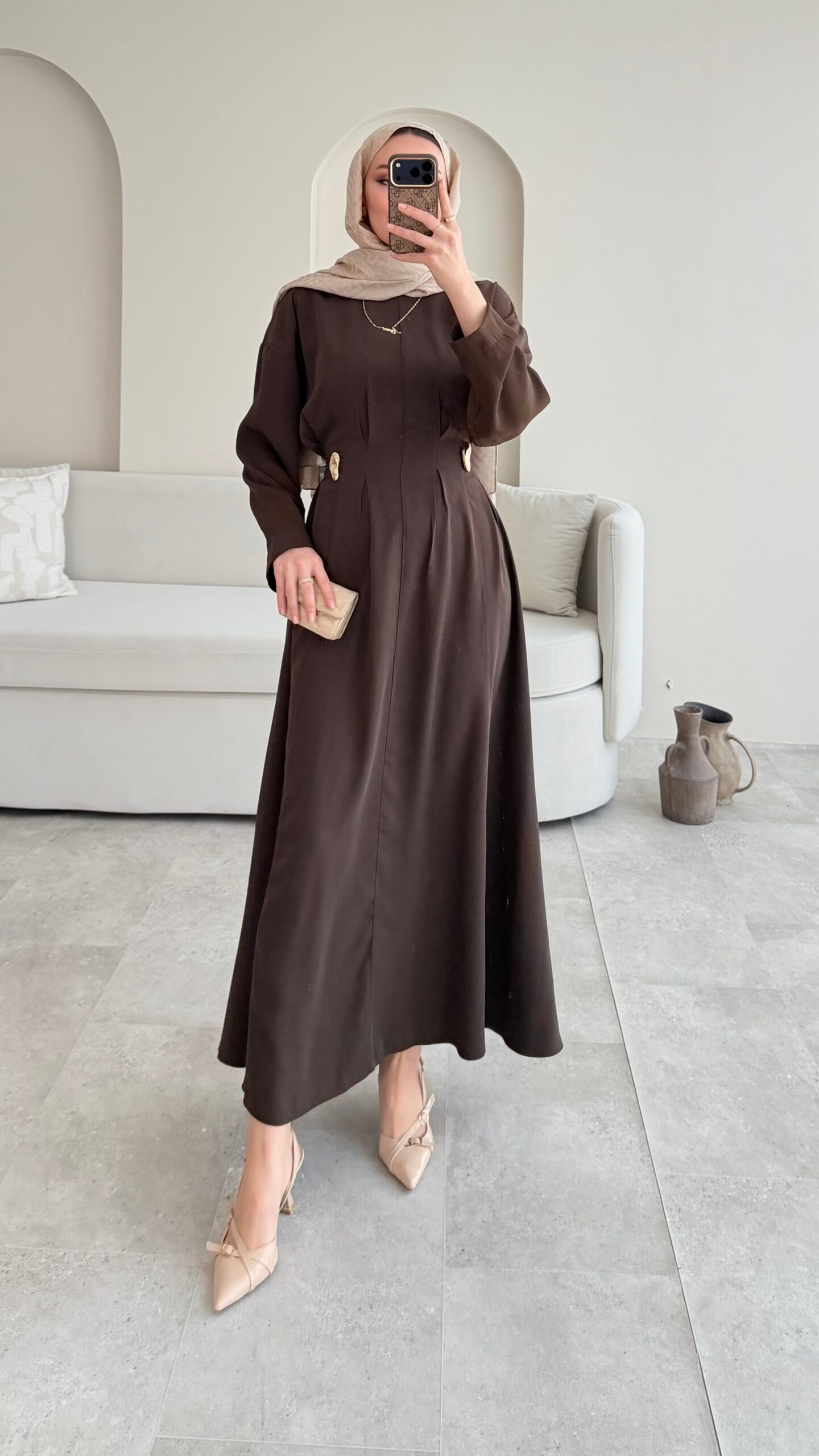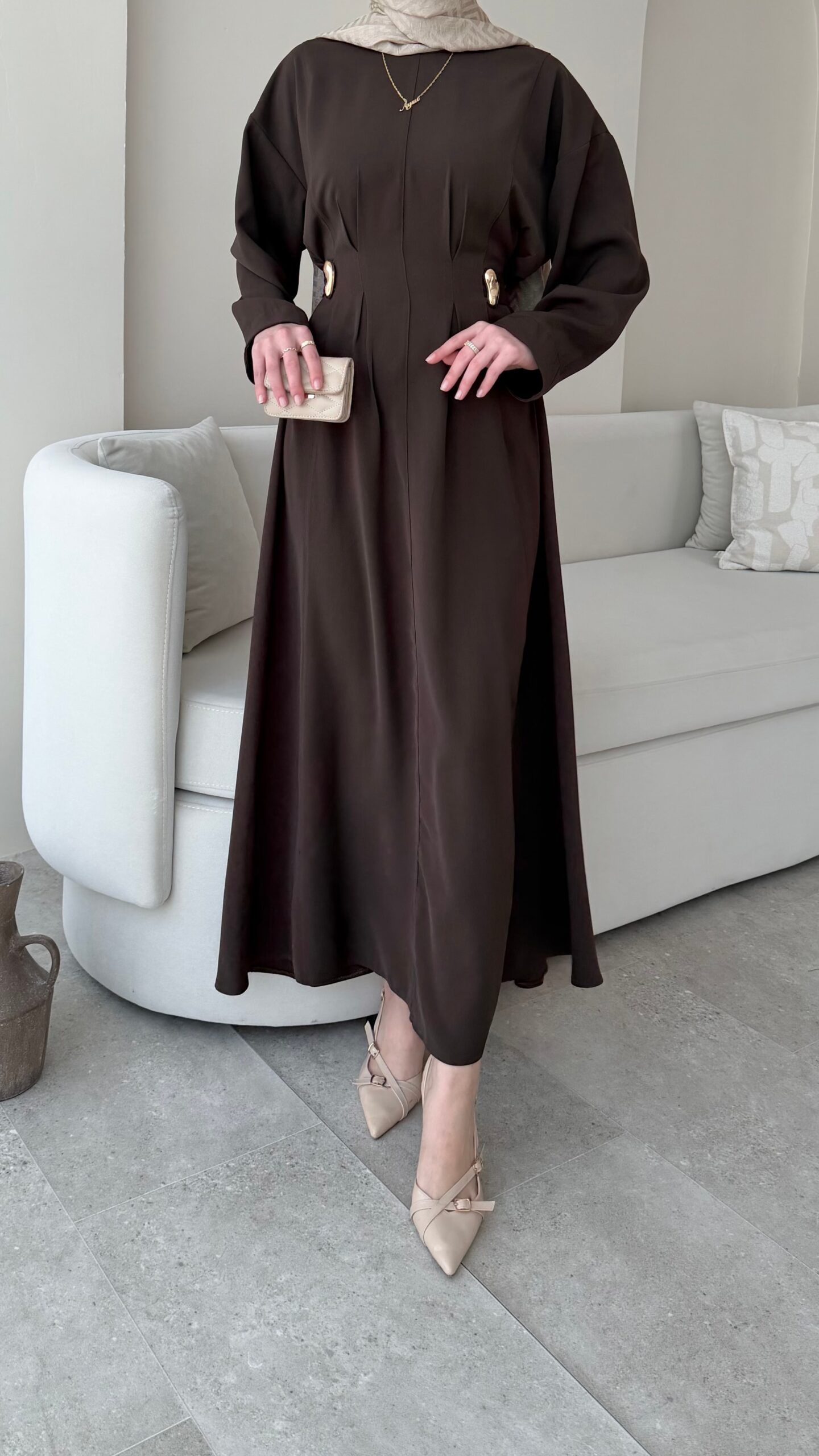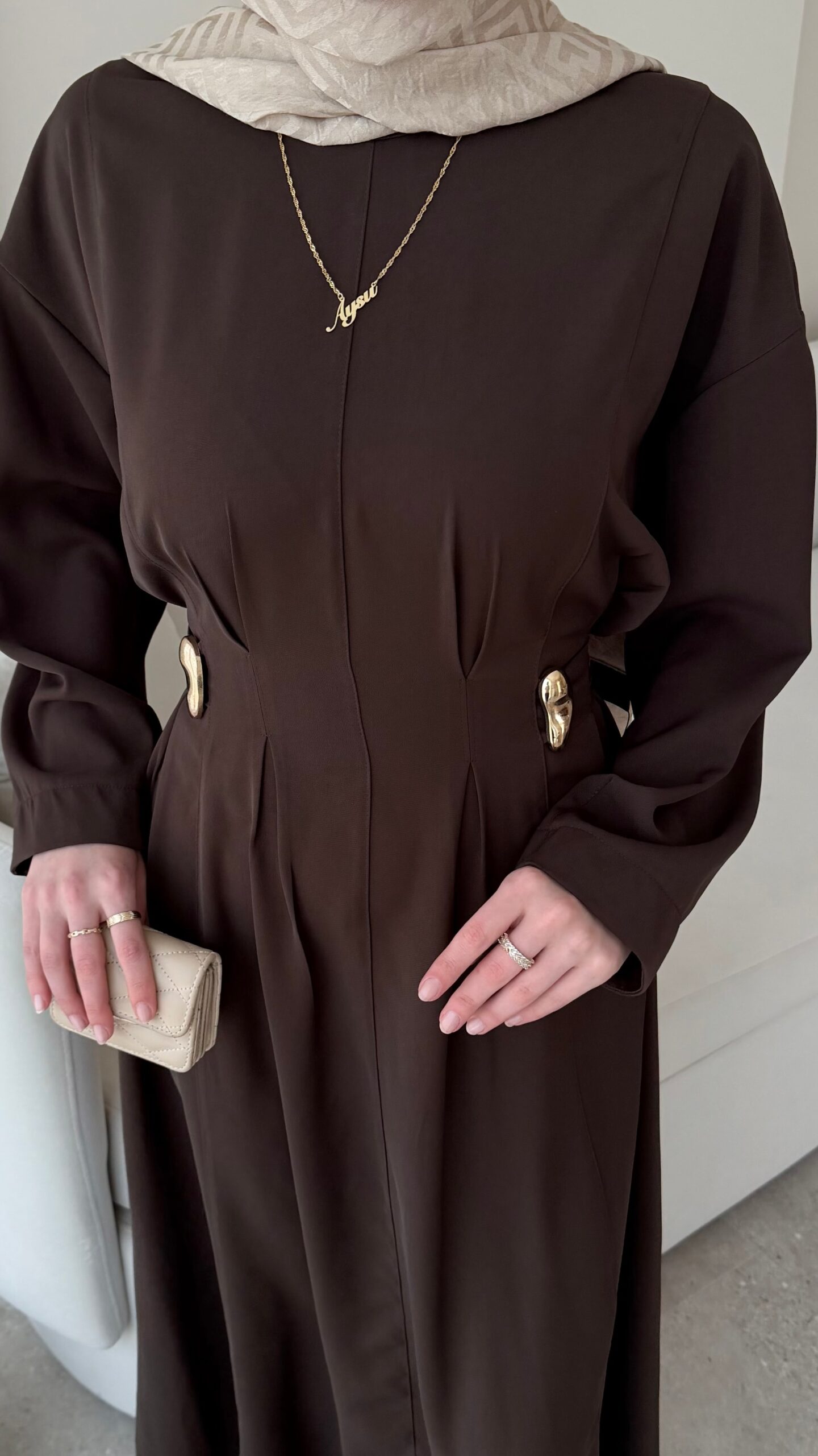 Meyla Gold Detaylı Elbise – Kahverengi