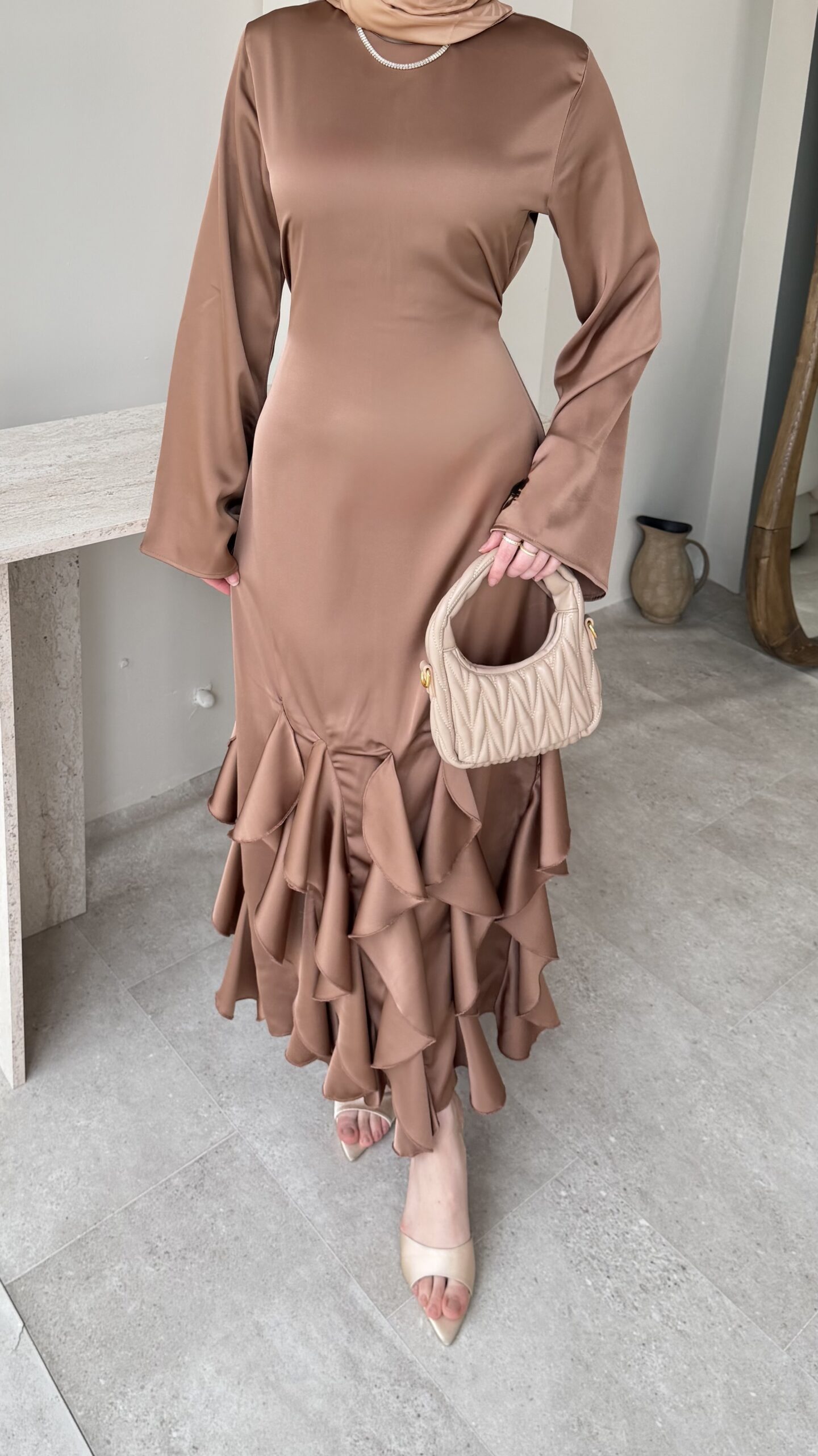 Arya Saten Elbise – Camel