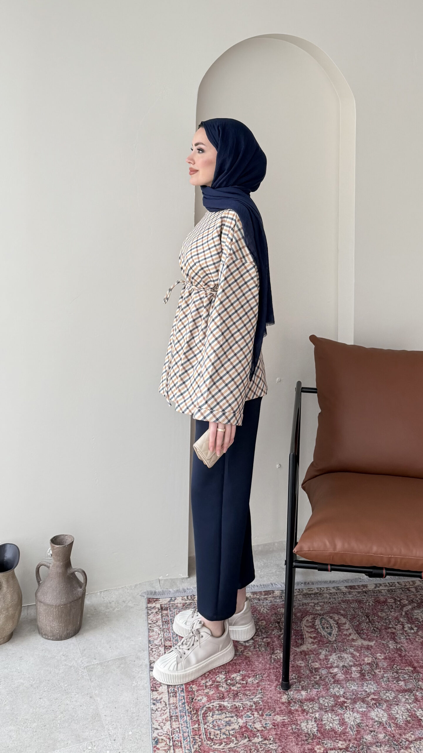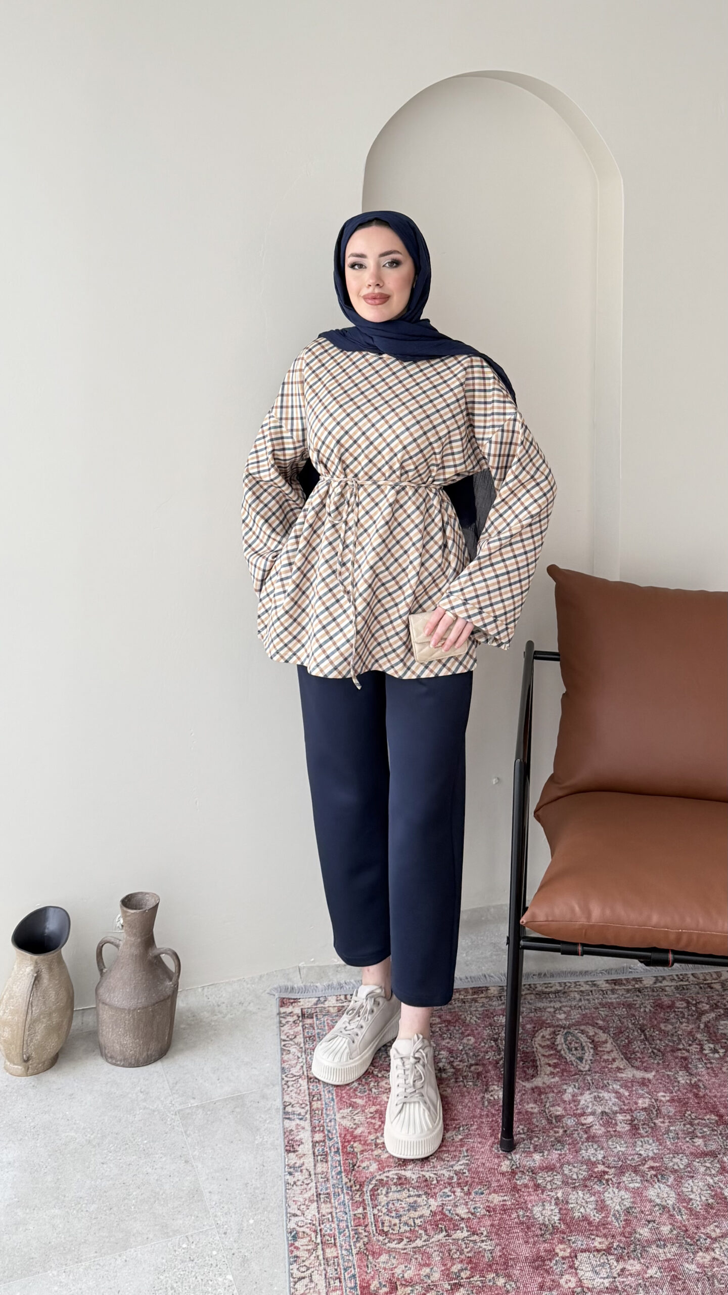 Ekose Scuba Sweat – Lacivert & Bal Köpüğü
