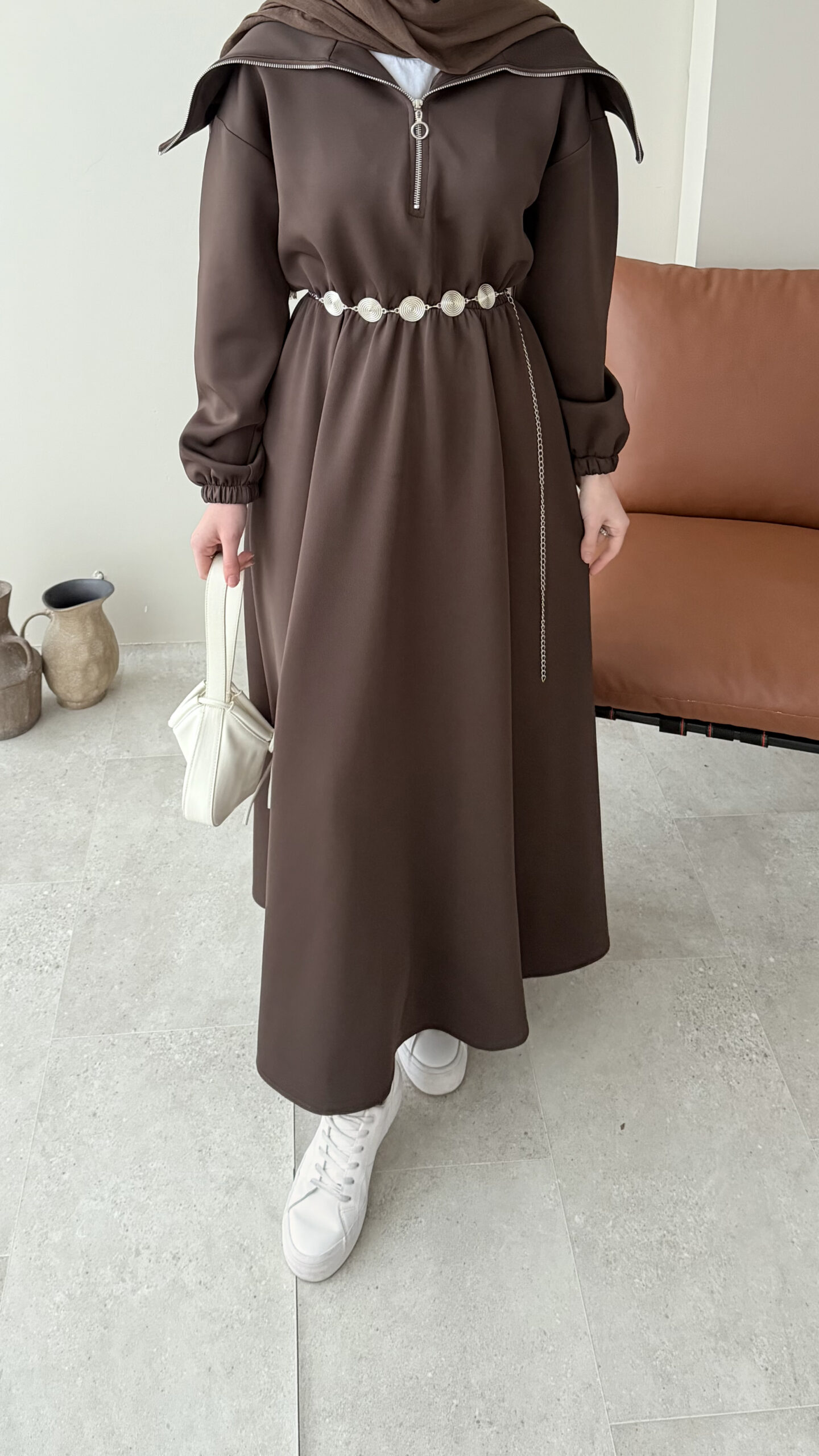 Elen Zincirli Scuba Elbise – Koyu Kahve