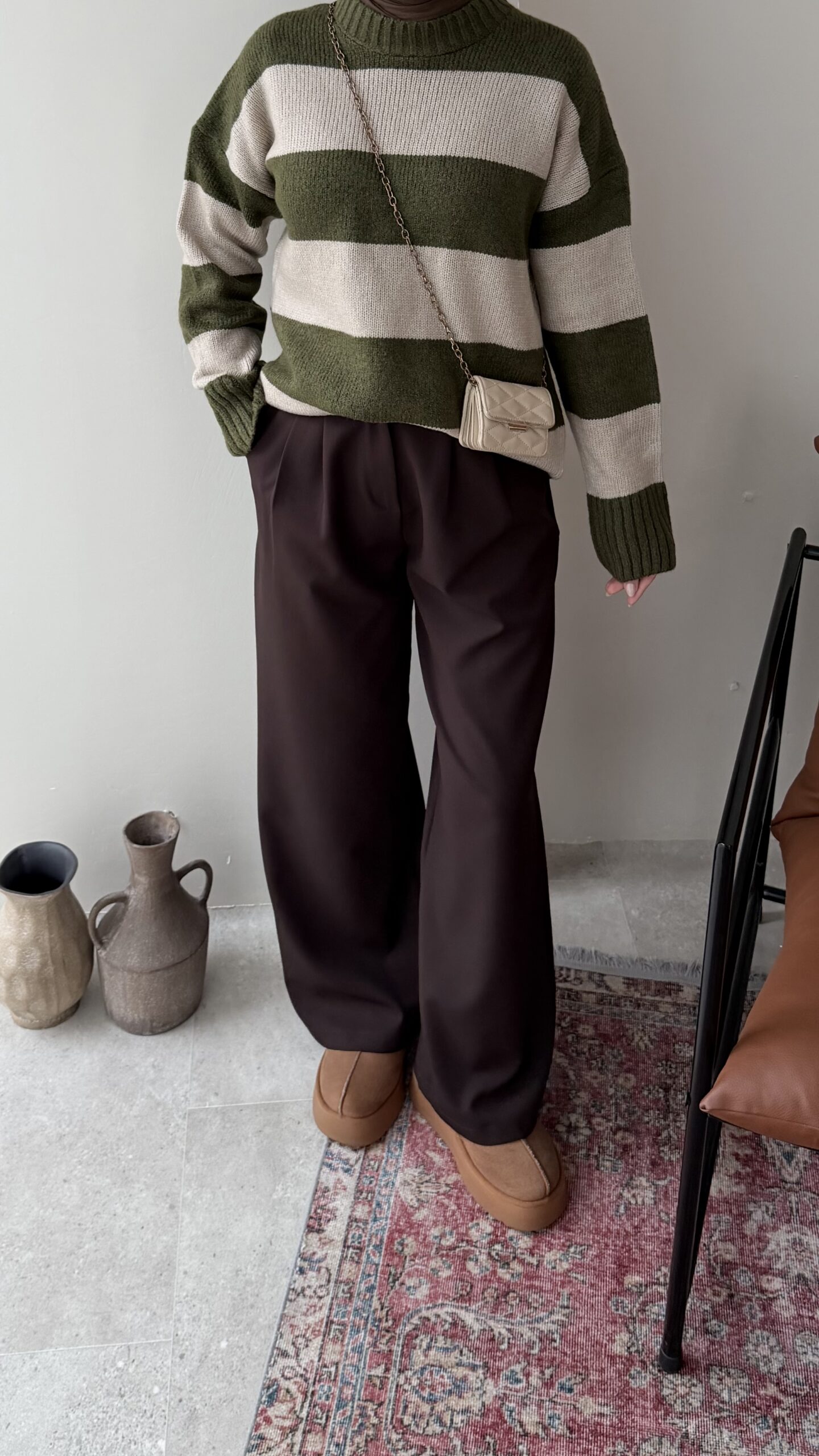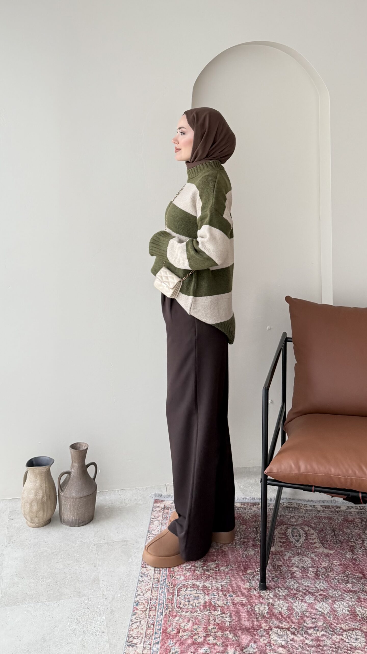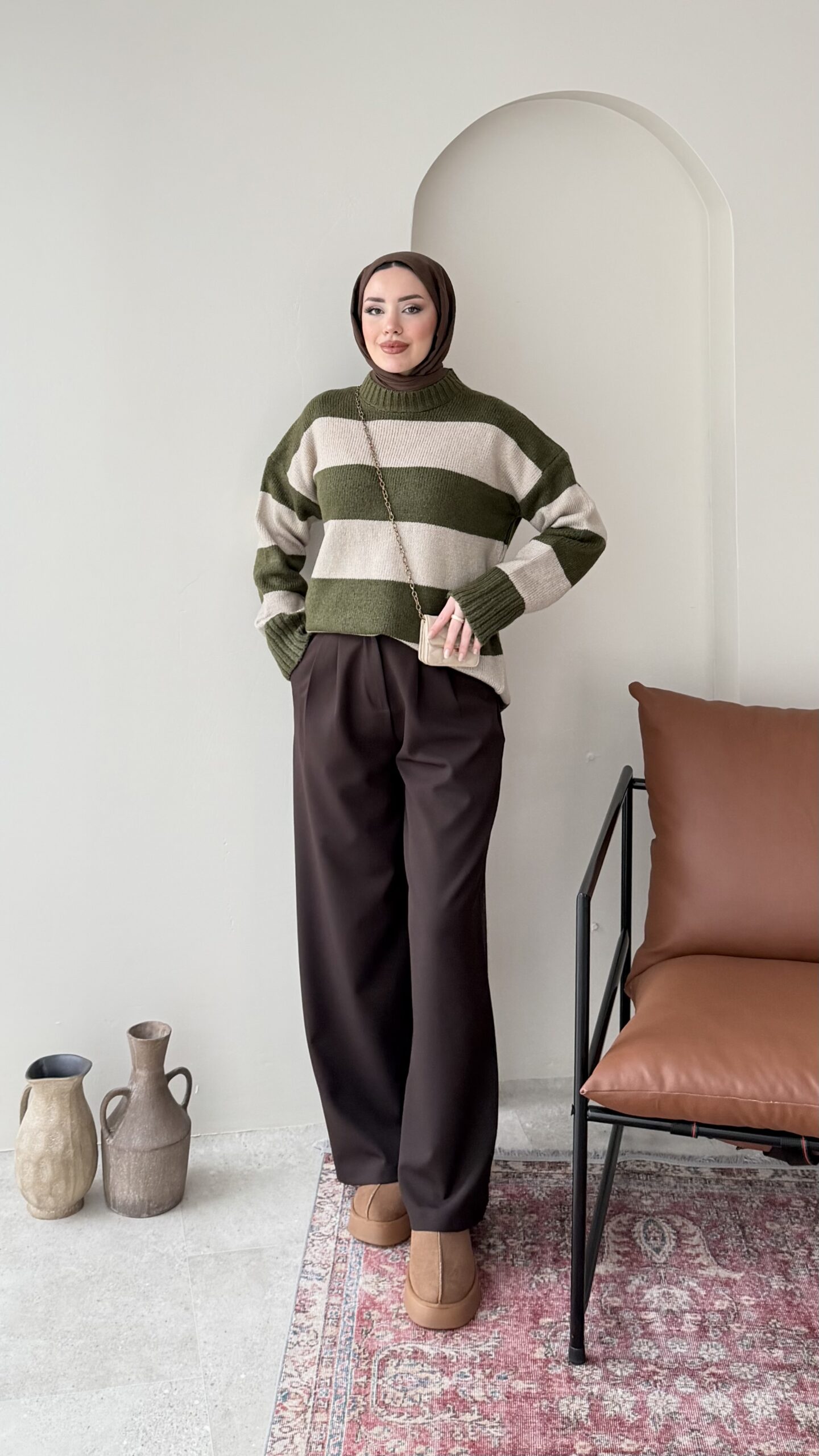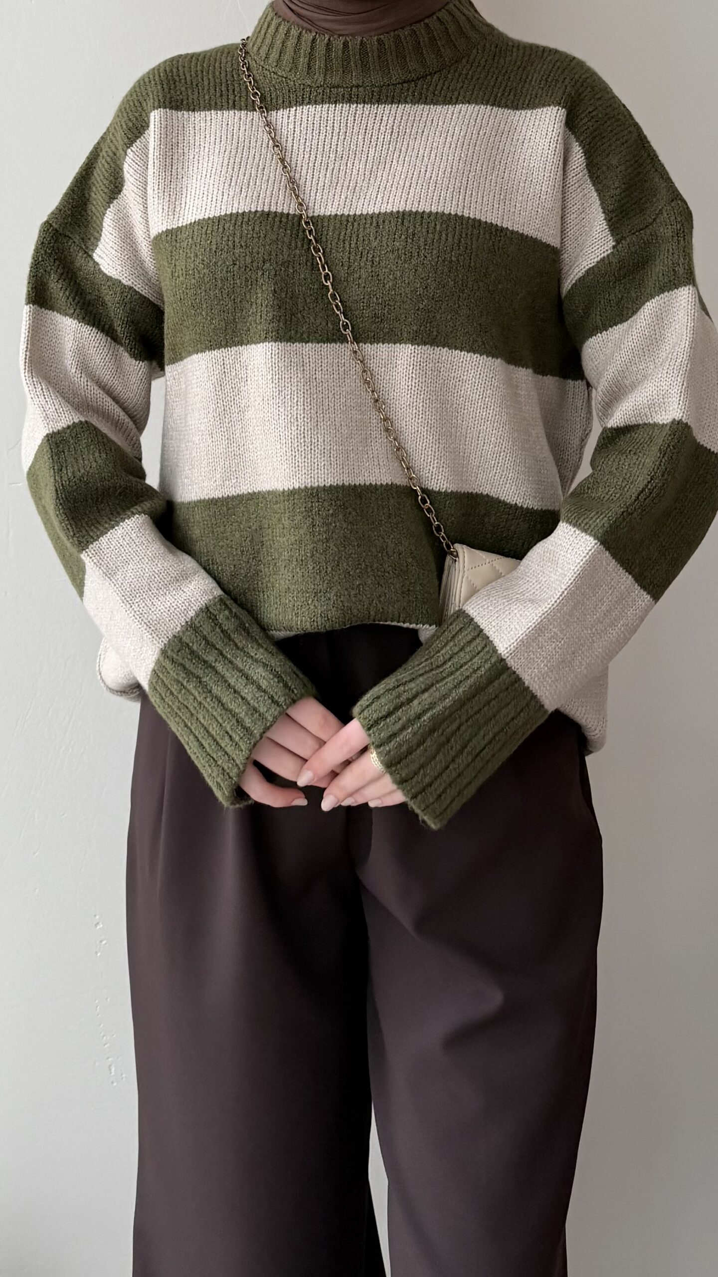 Ella Çizgili Triko Kazak – Haki