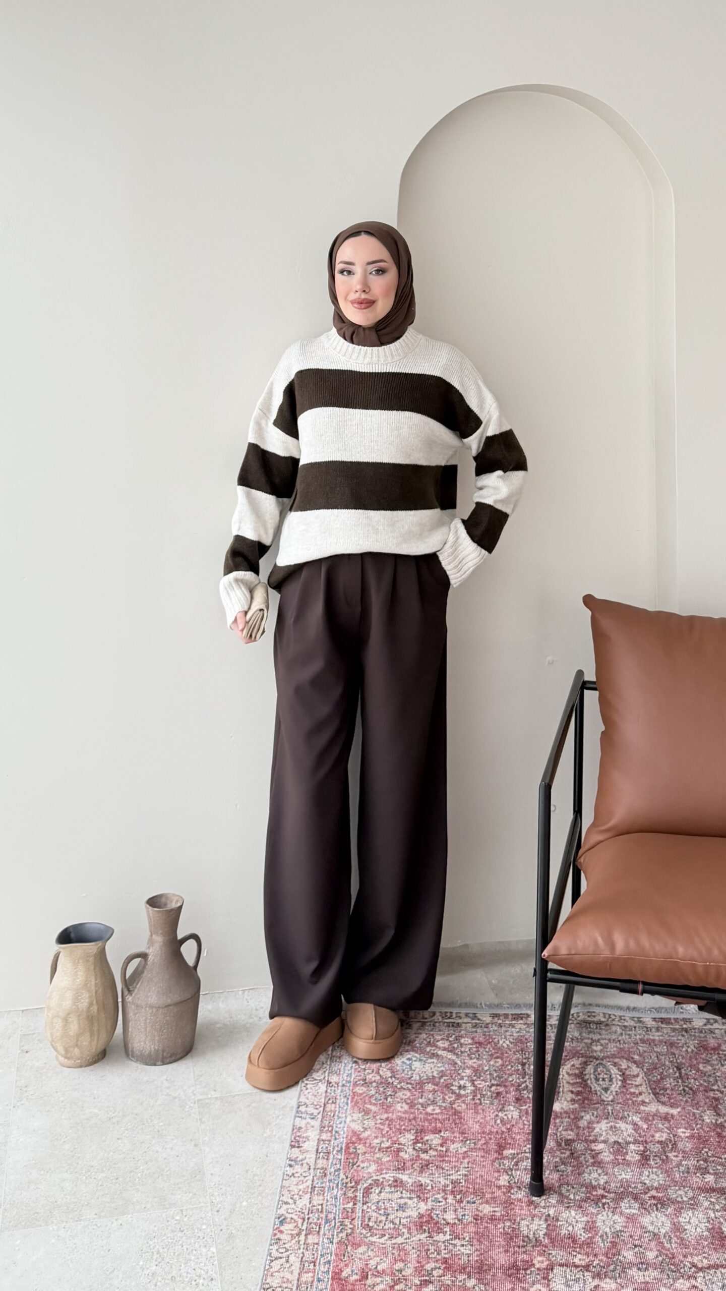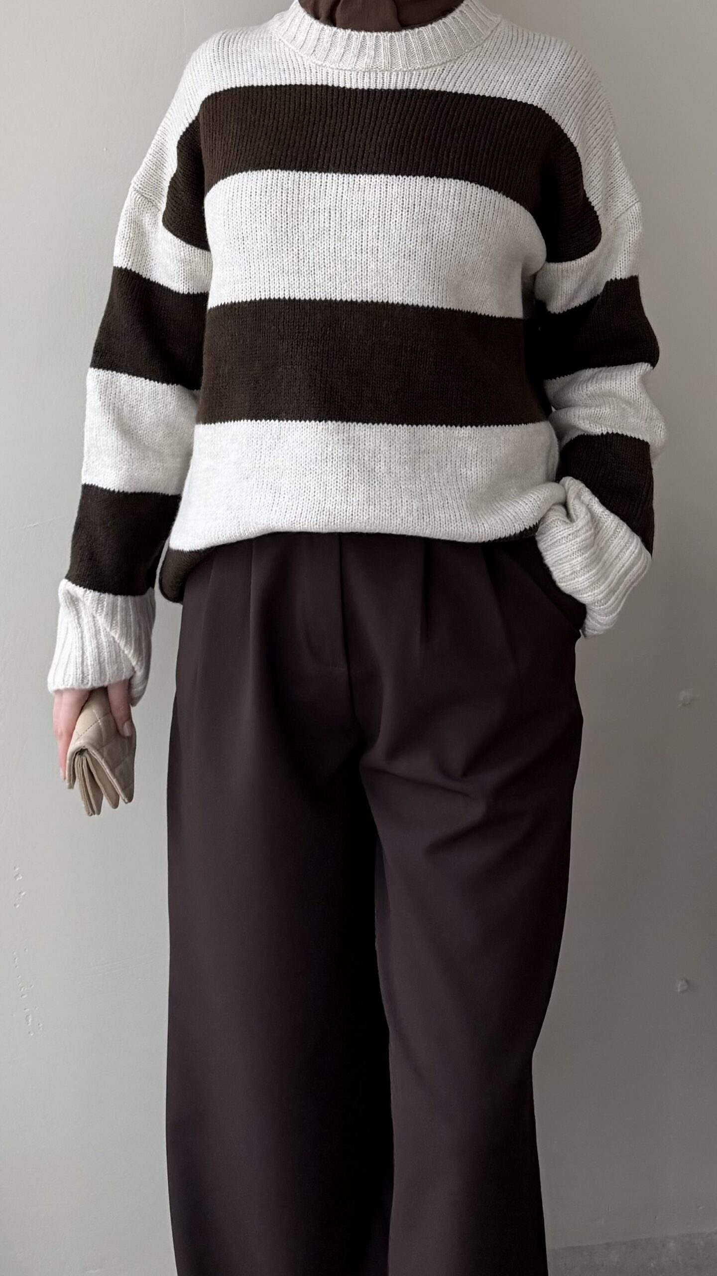 Ella Çizgili Triko Kazak – Taş