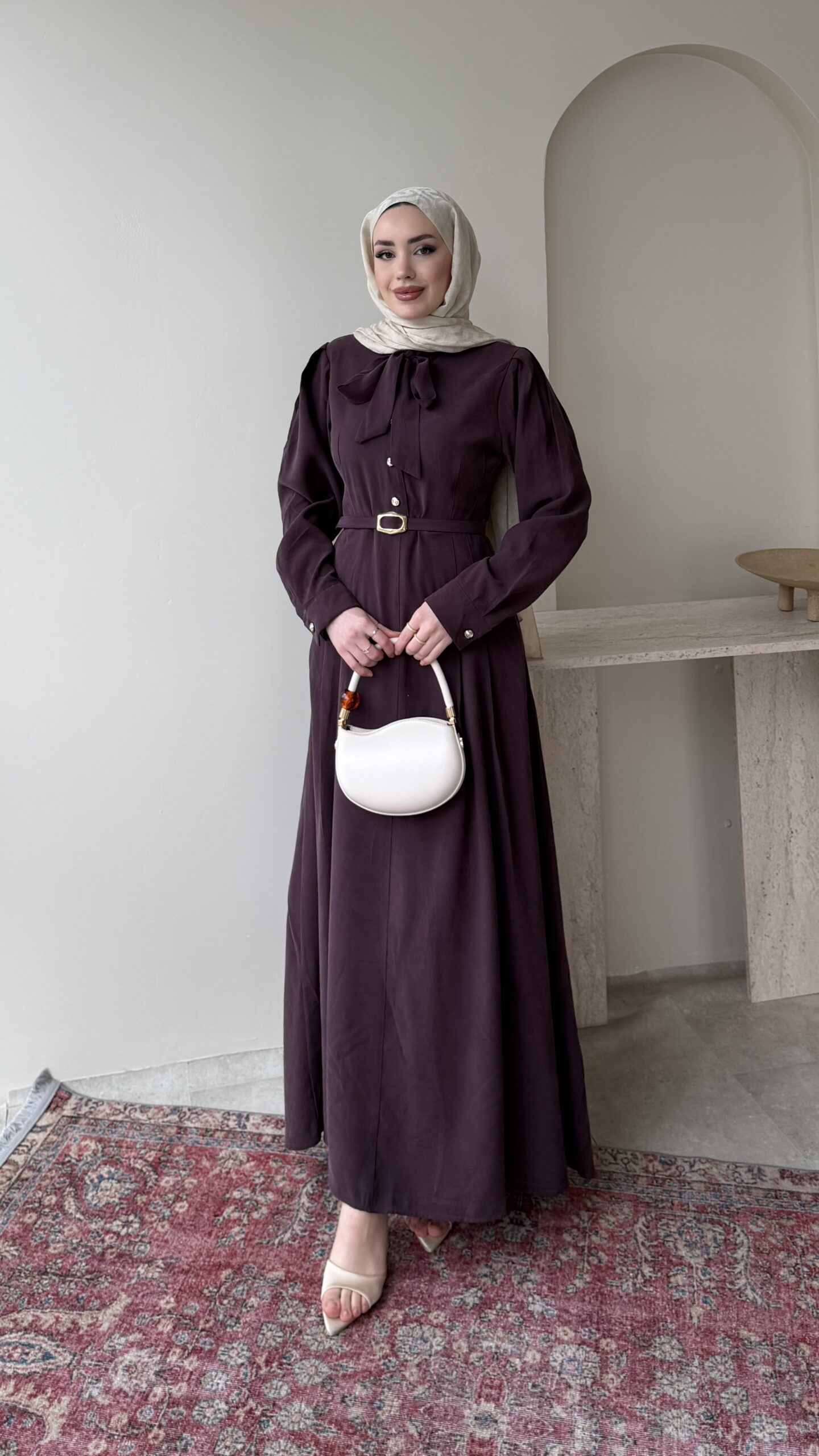 Elen Zincirli Scuba Elbise – Koyu Kahve
