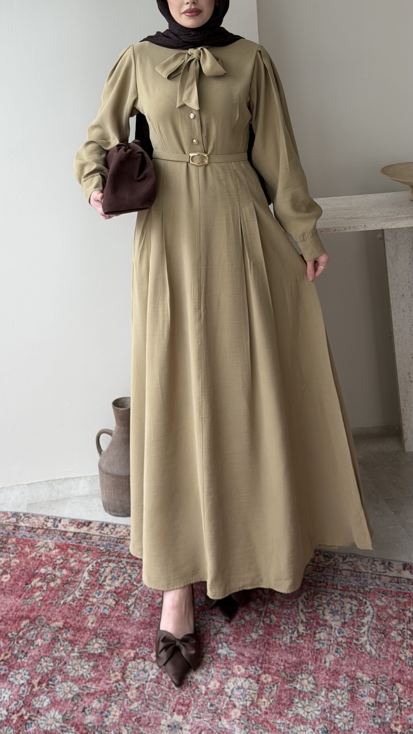 Sare Pileli Elbise – Koyu Kahve