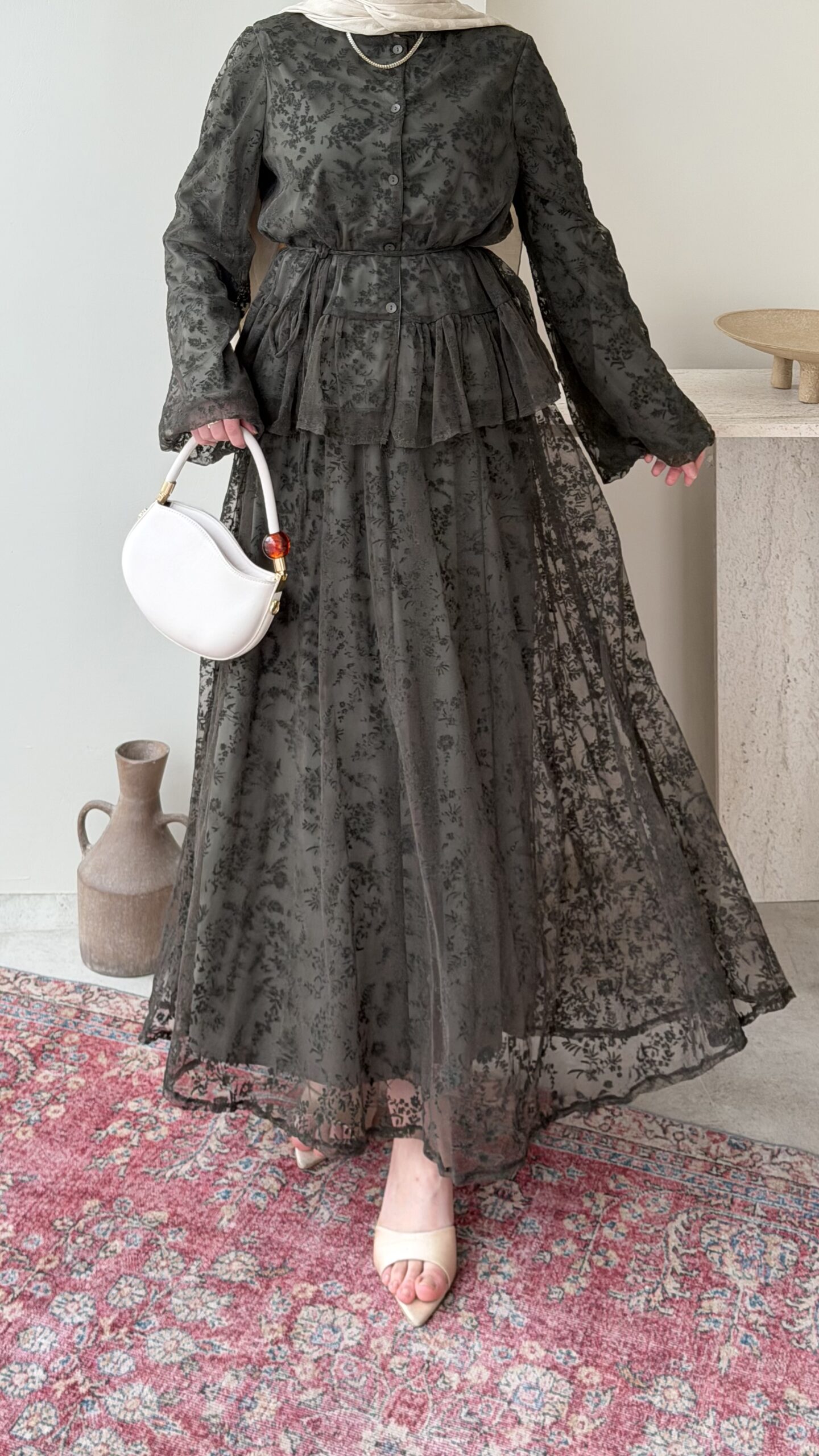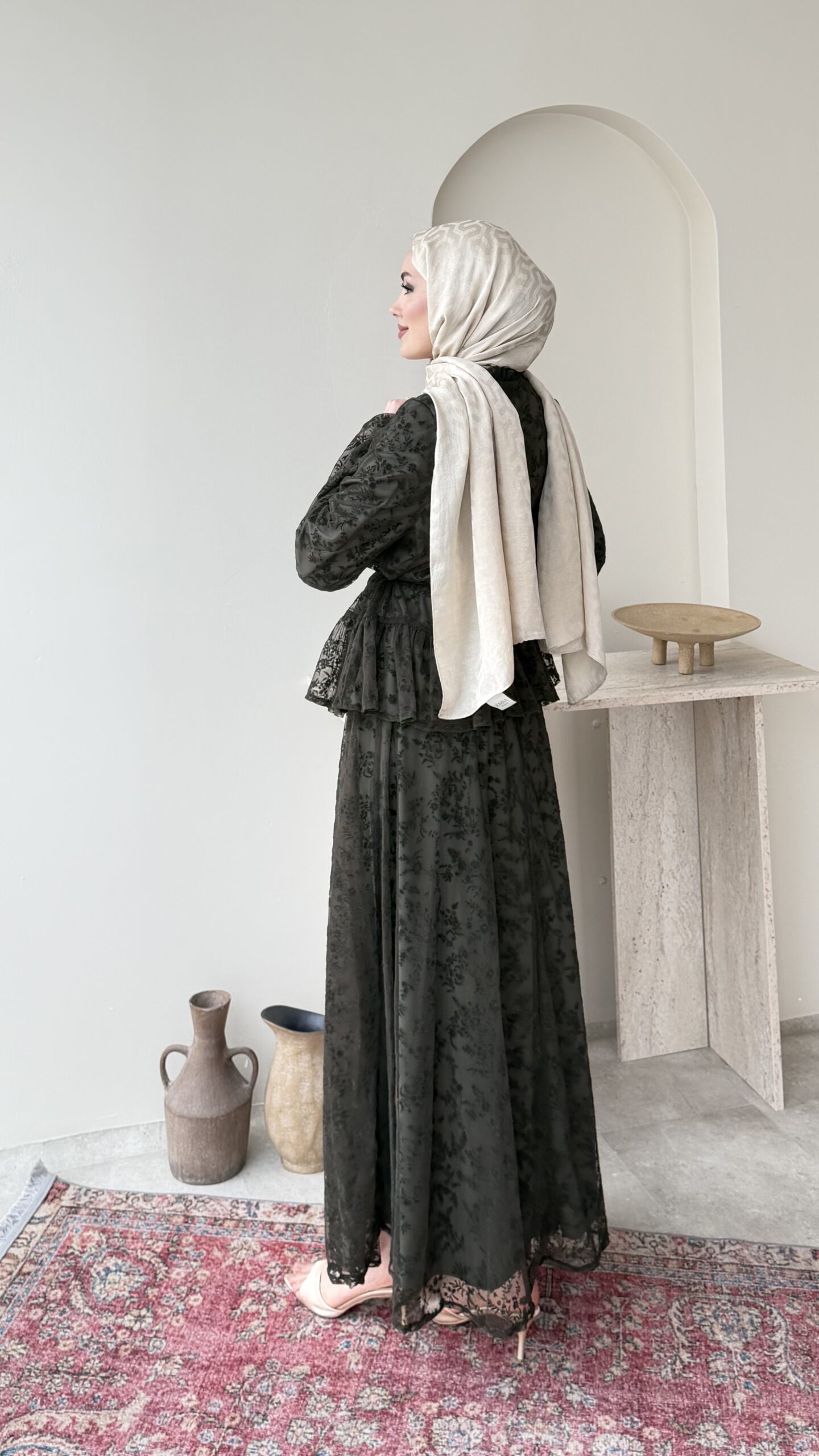 Mesa Garni Detaylı Oyşo Takım – Siyah ( Ön sipariş bayram sonrası kargolanacaktır)