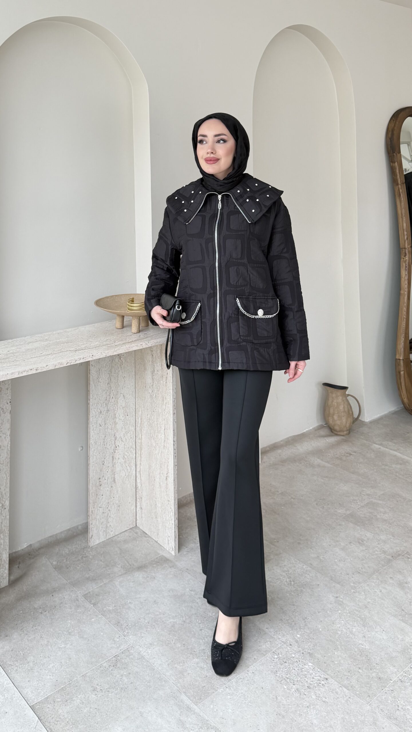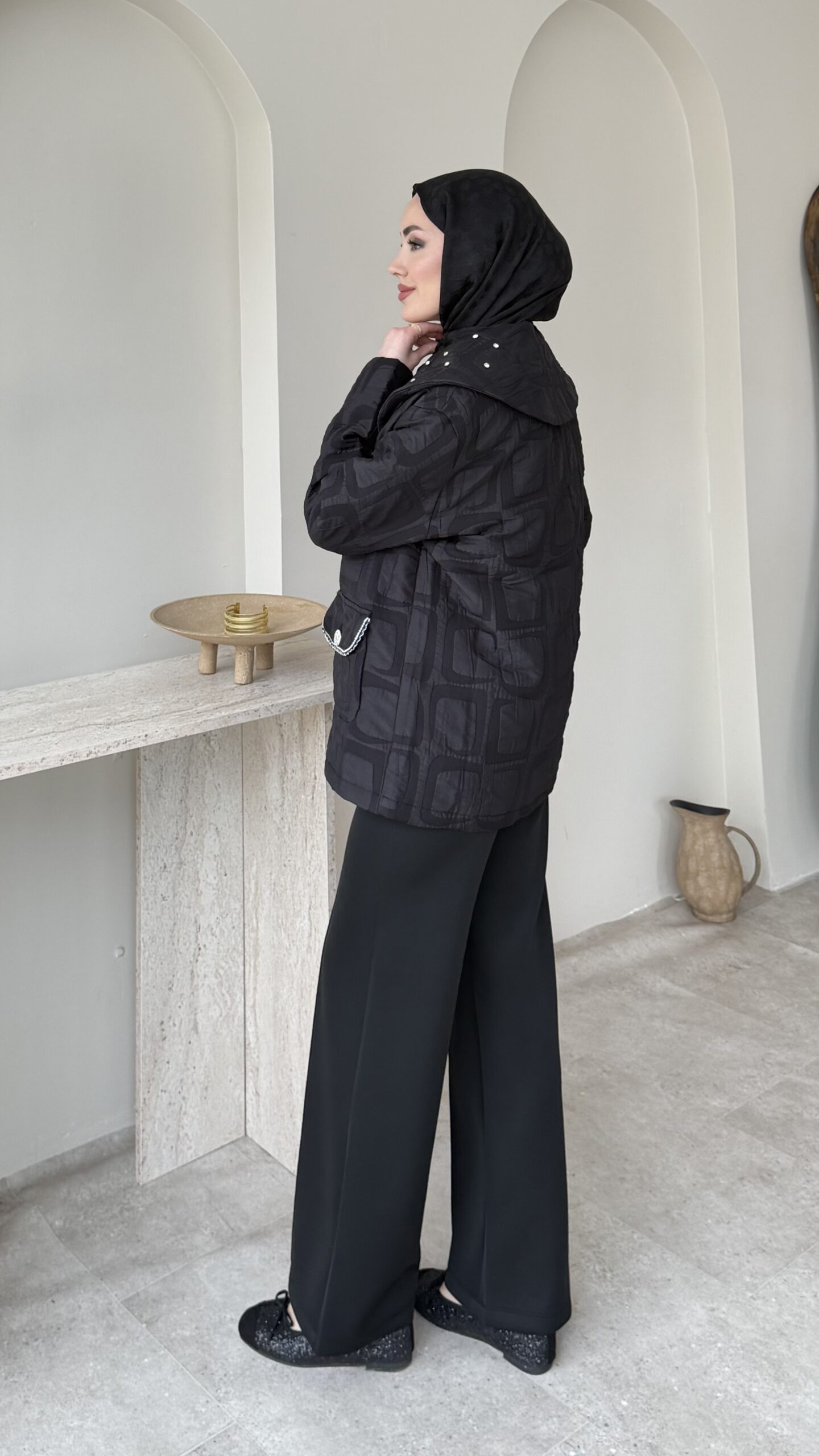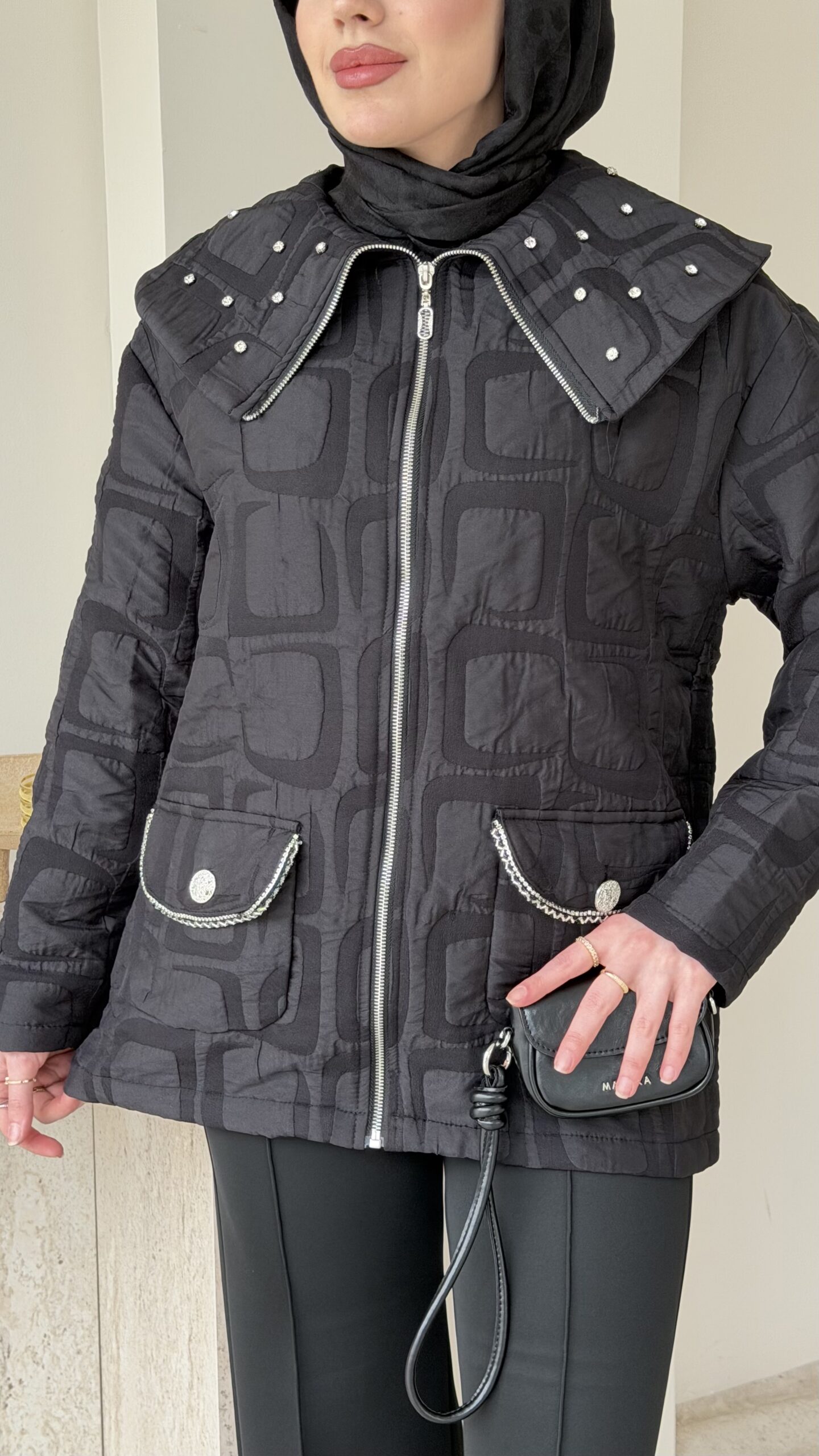 Kapitone formunda ceket.