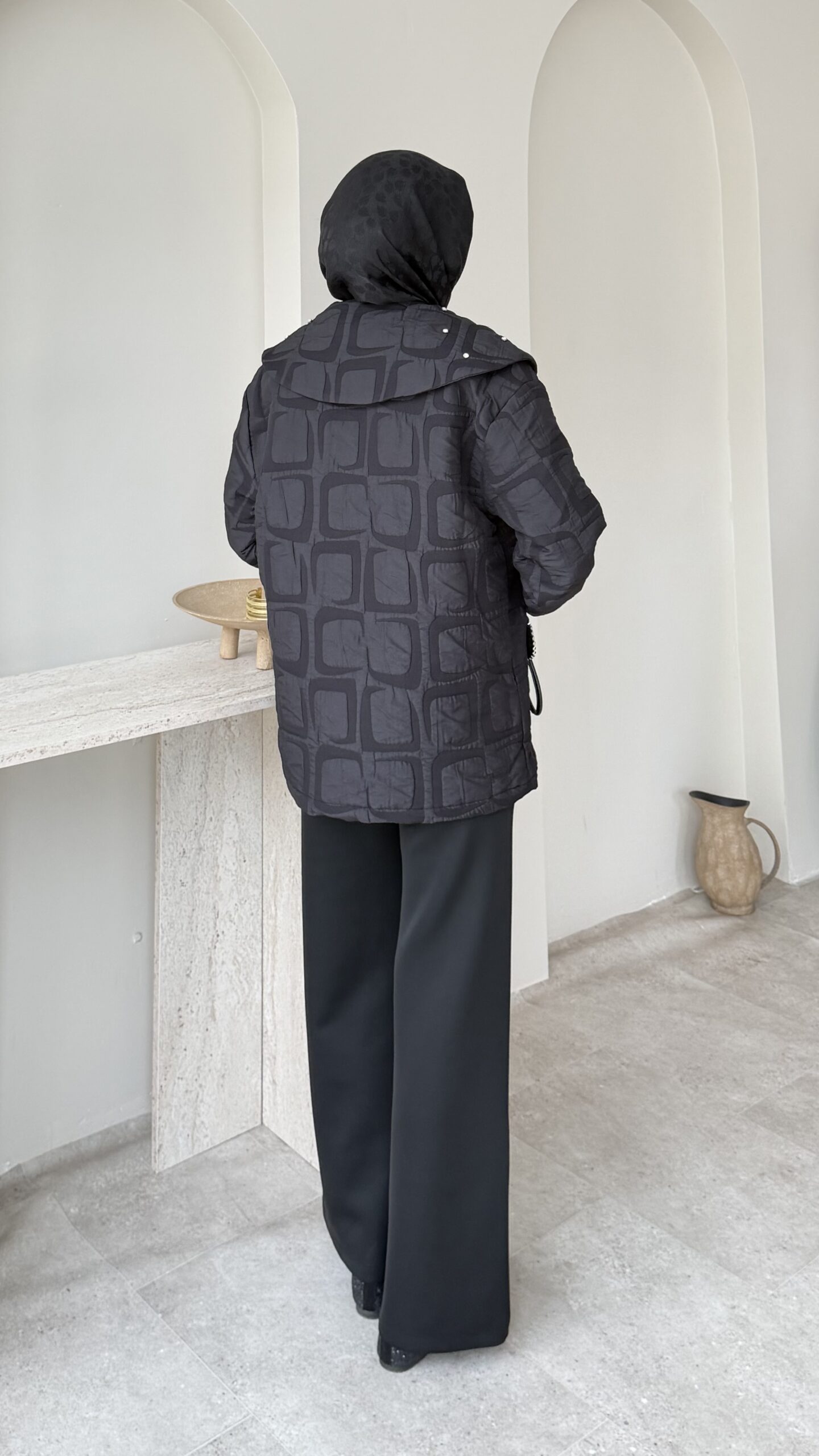 Lara Geometrik Desen Ceket – Siyah