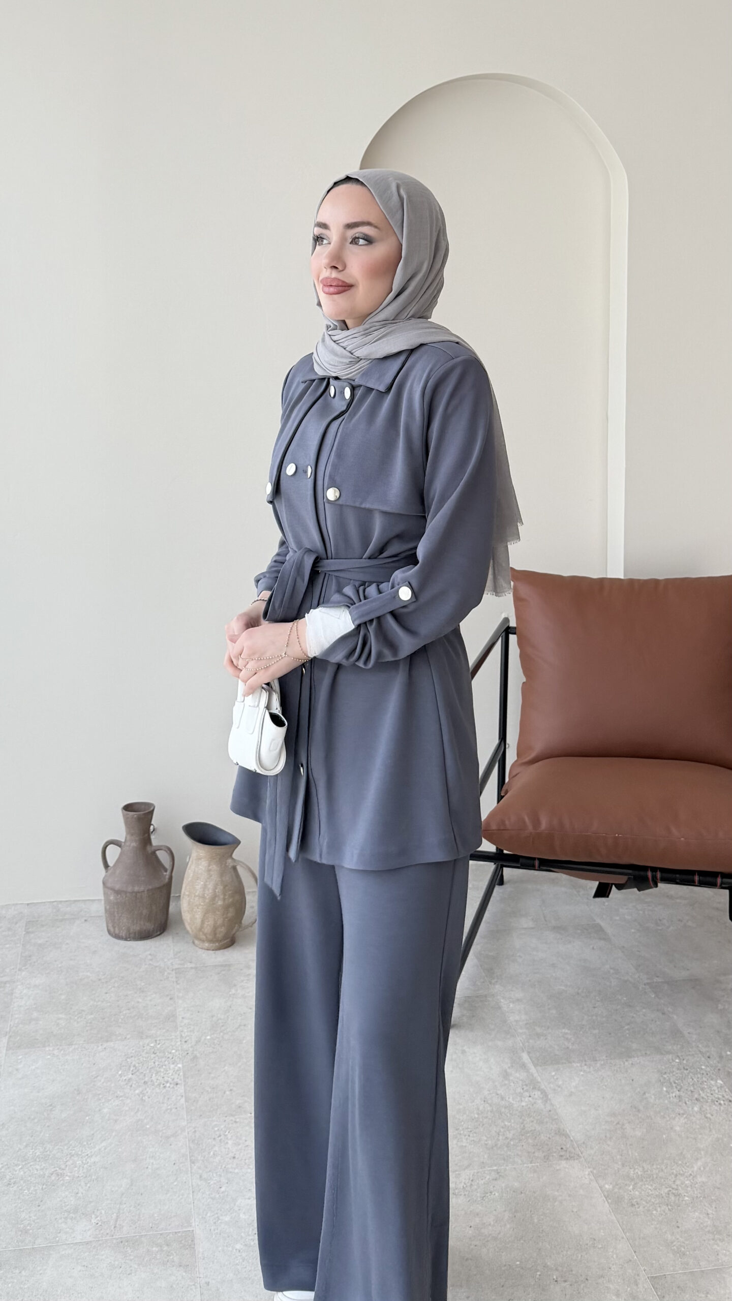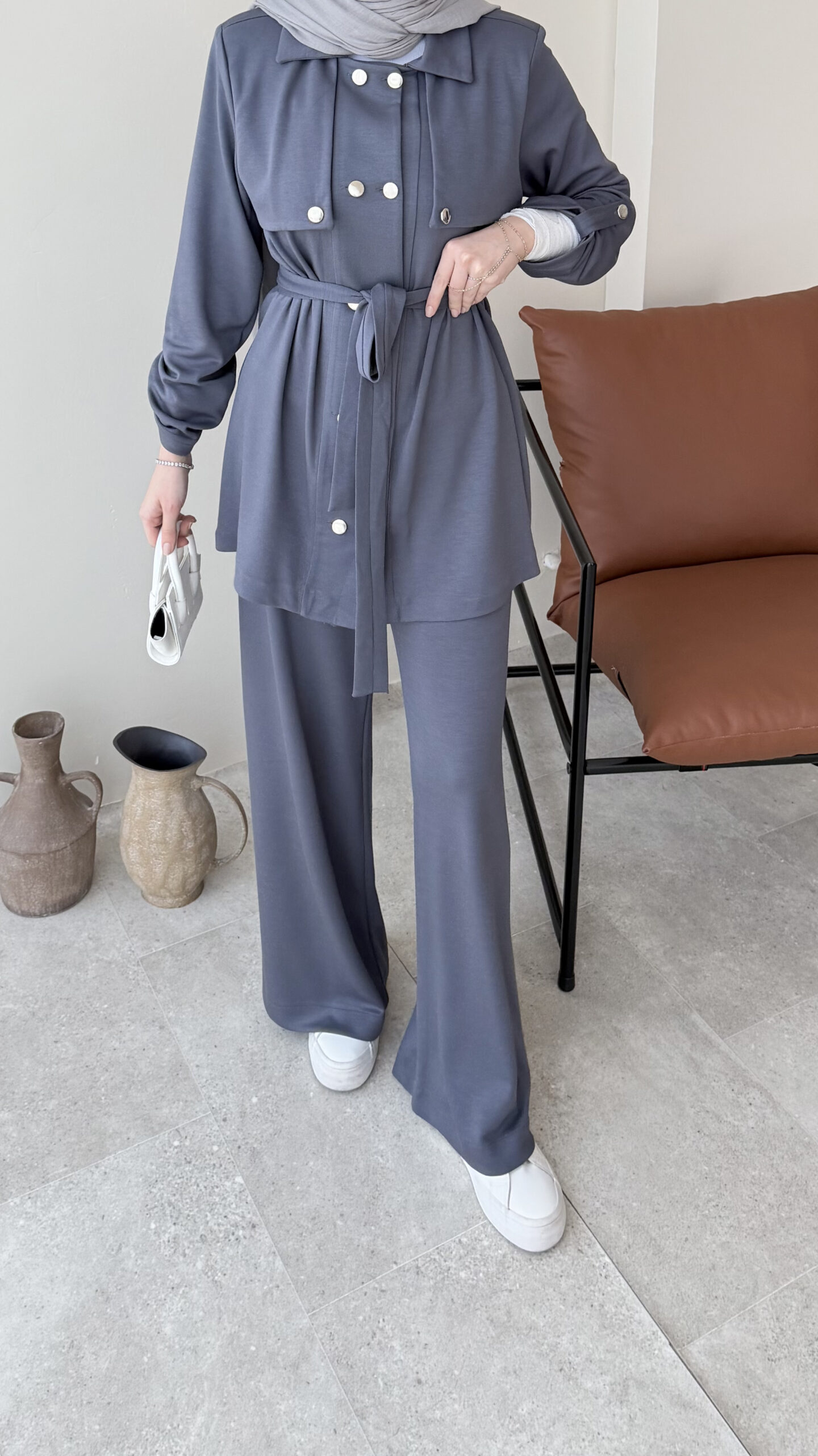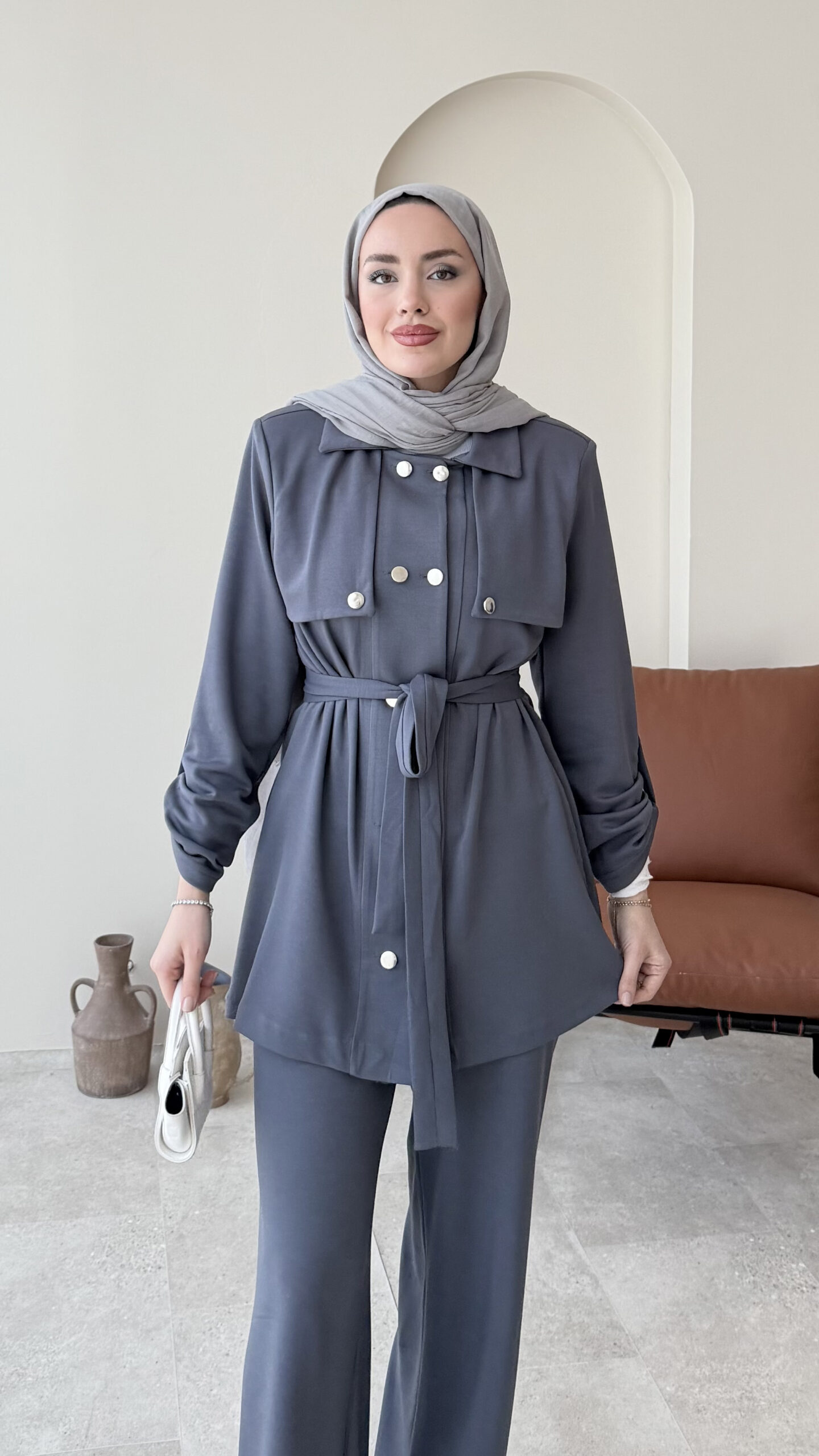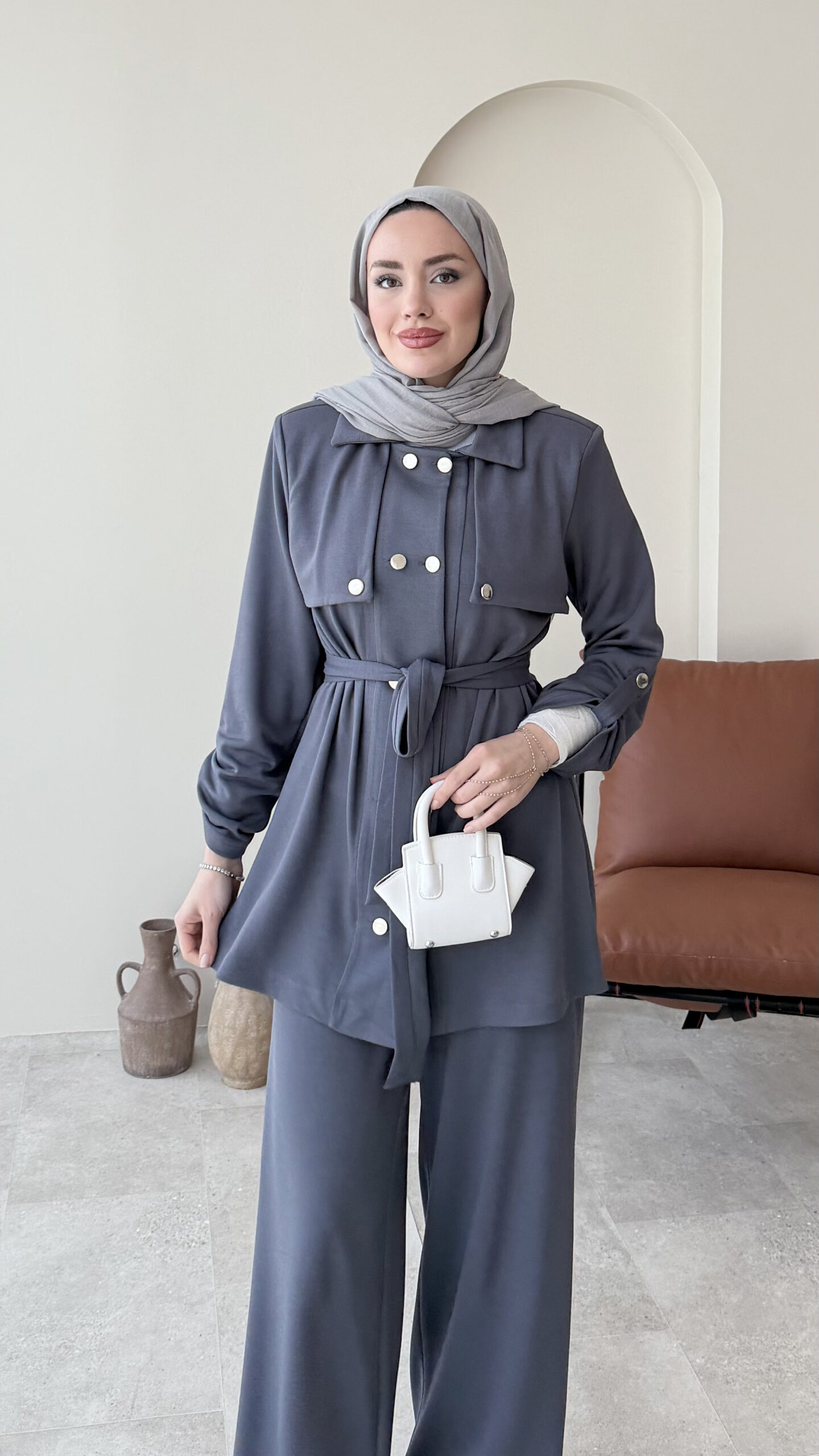 Luvi Düğmeli Oyşo Takım – Antrasit