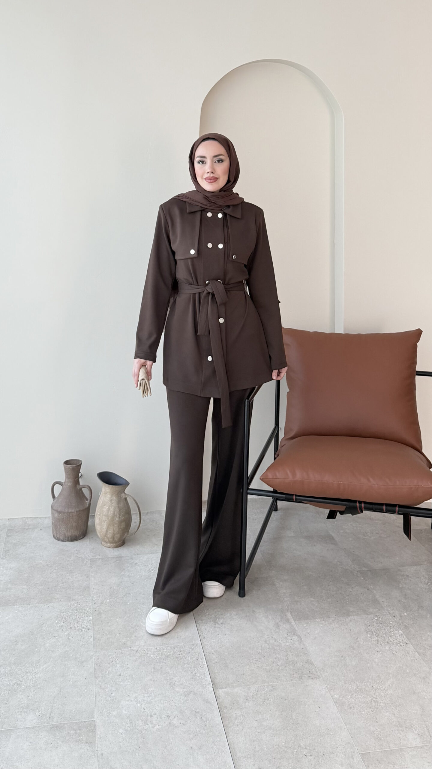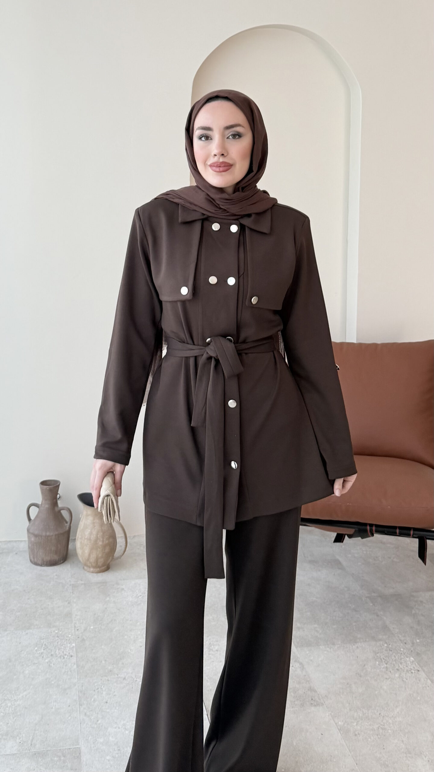Luvi Düğmeli Oyşo Takım – Koyu Kahve