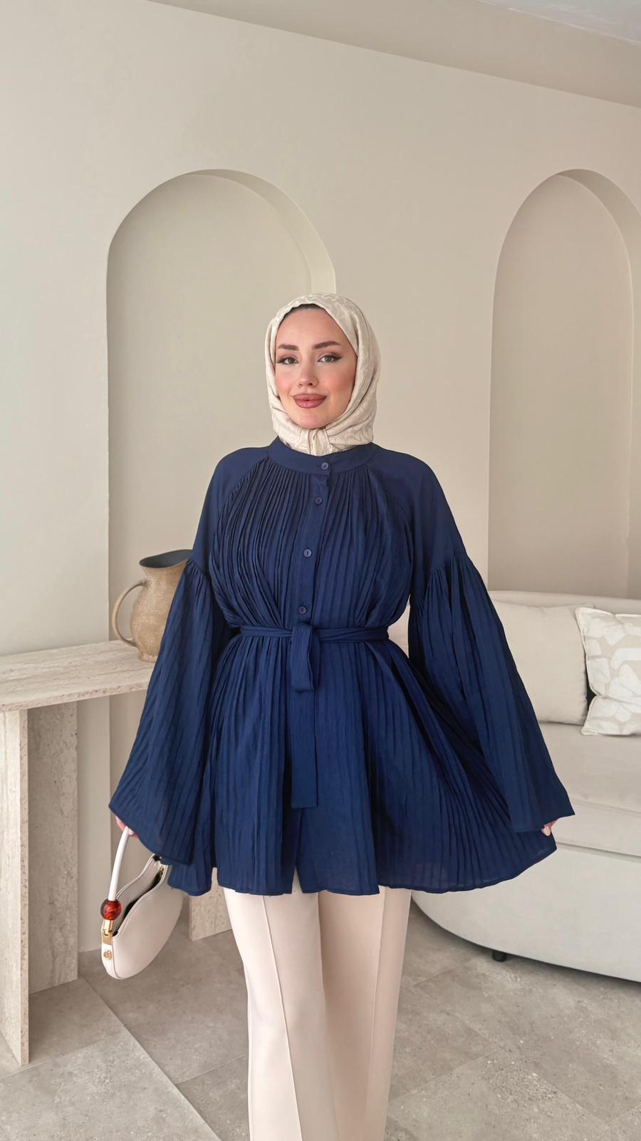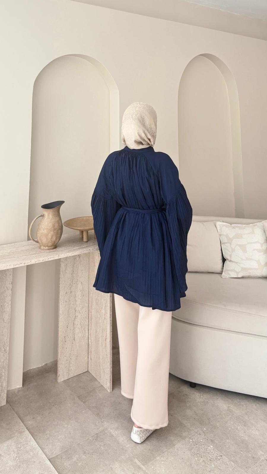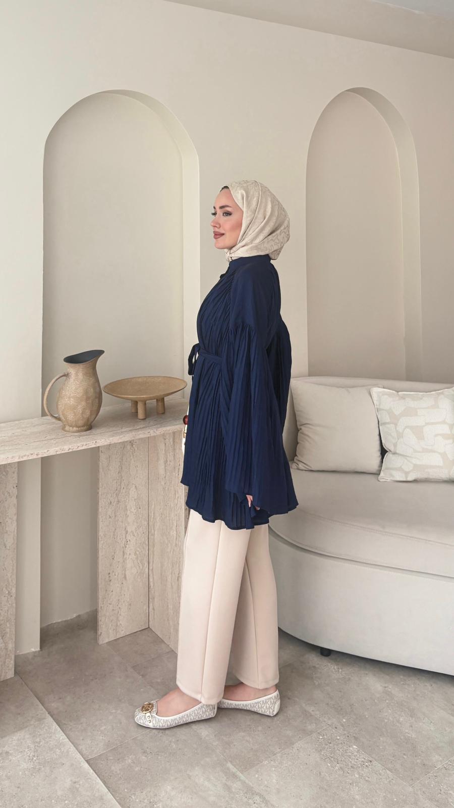 Luxe Piliseli Gömlek – Lacivert