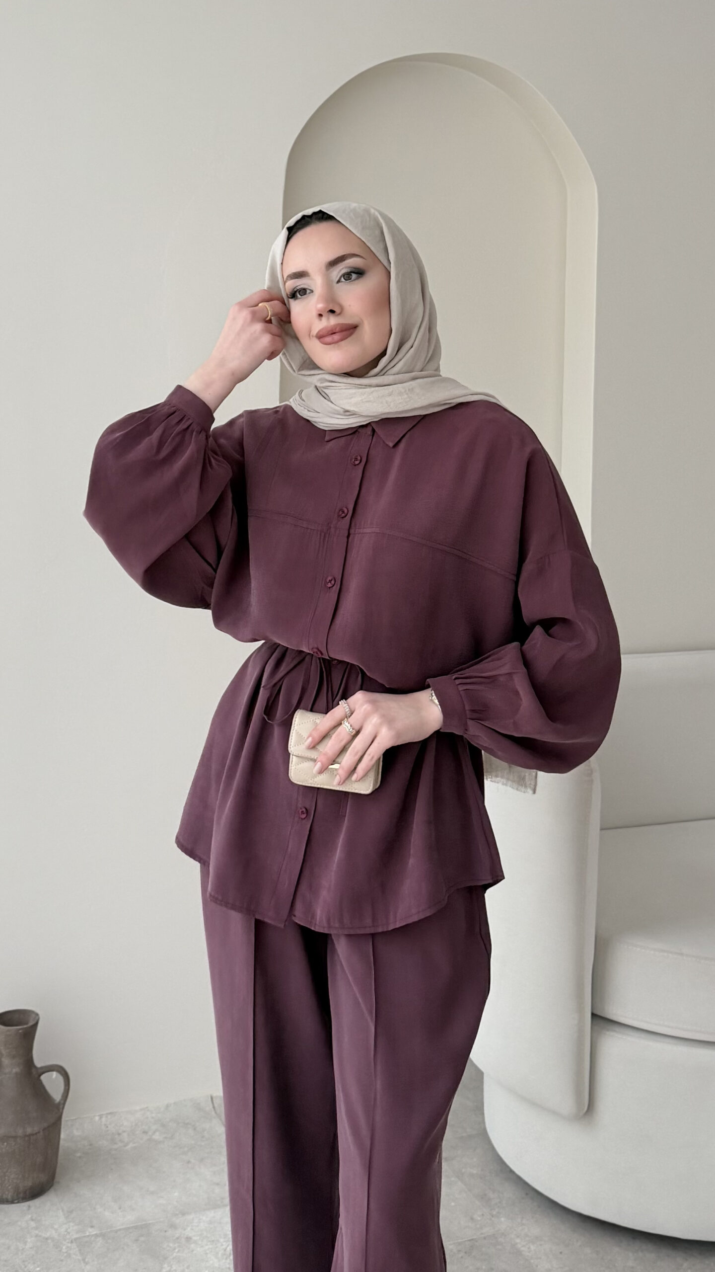 Pantalon beli lastikli, üst tunik rahat kalıptır.