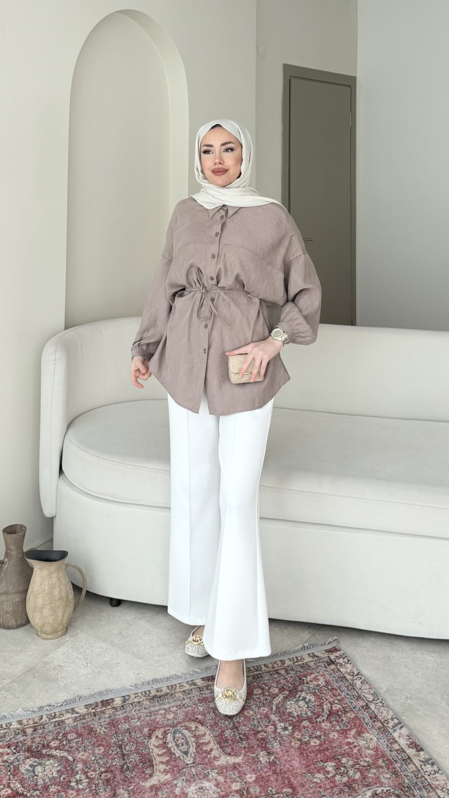Nara Jakarlı Gömlek – Vizon