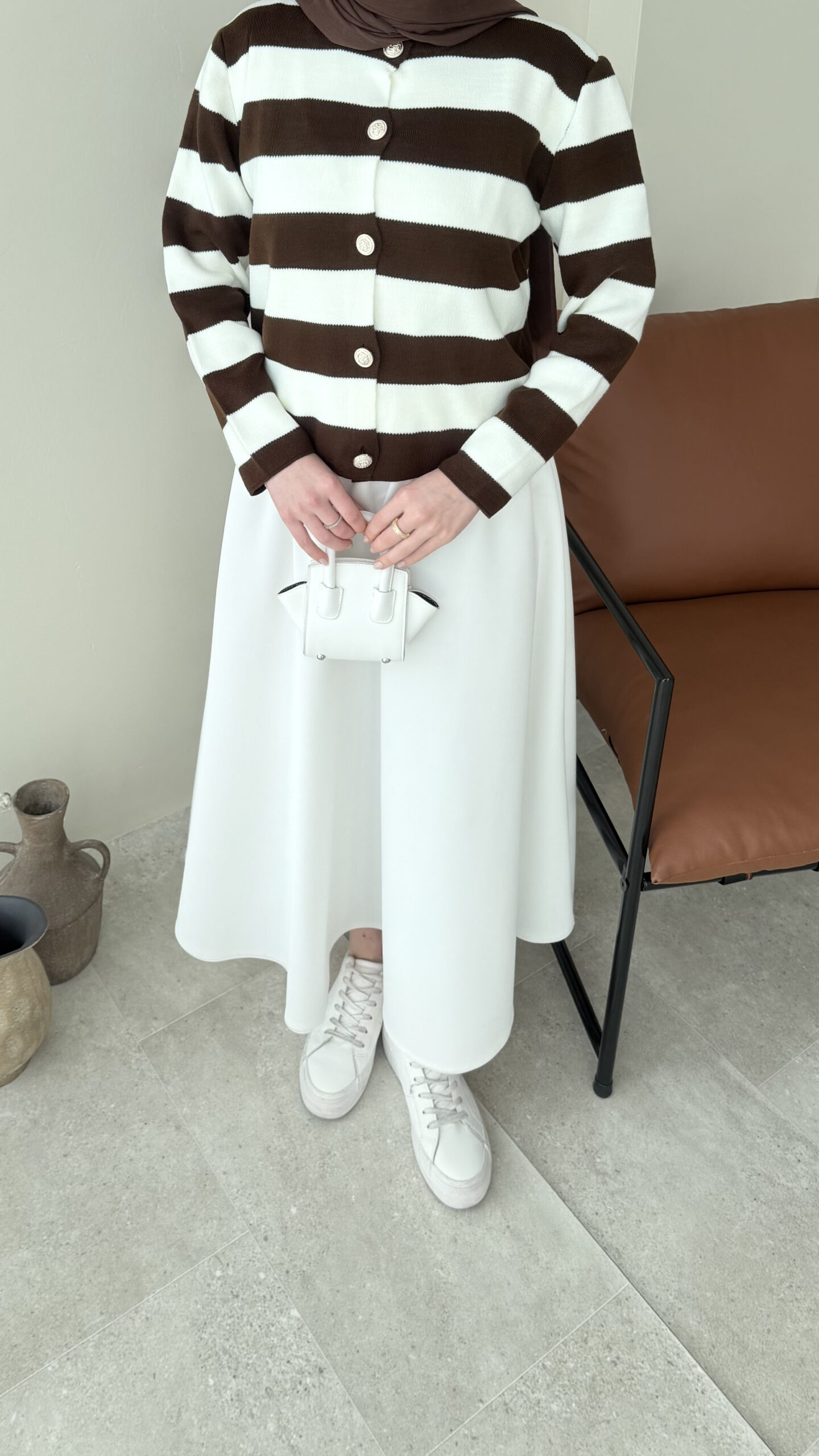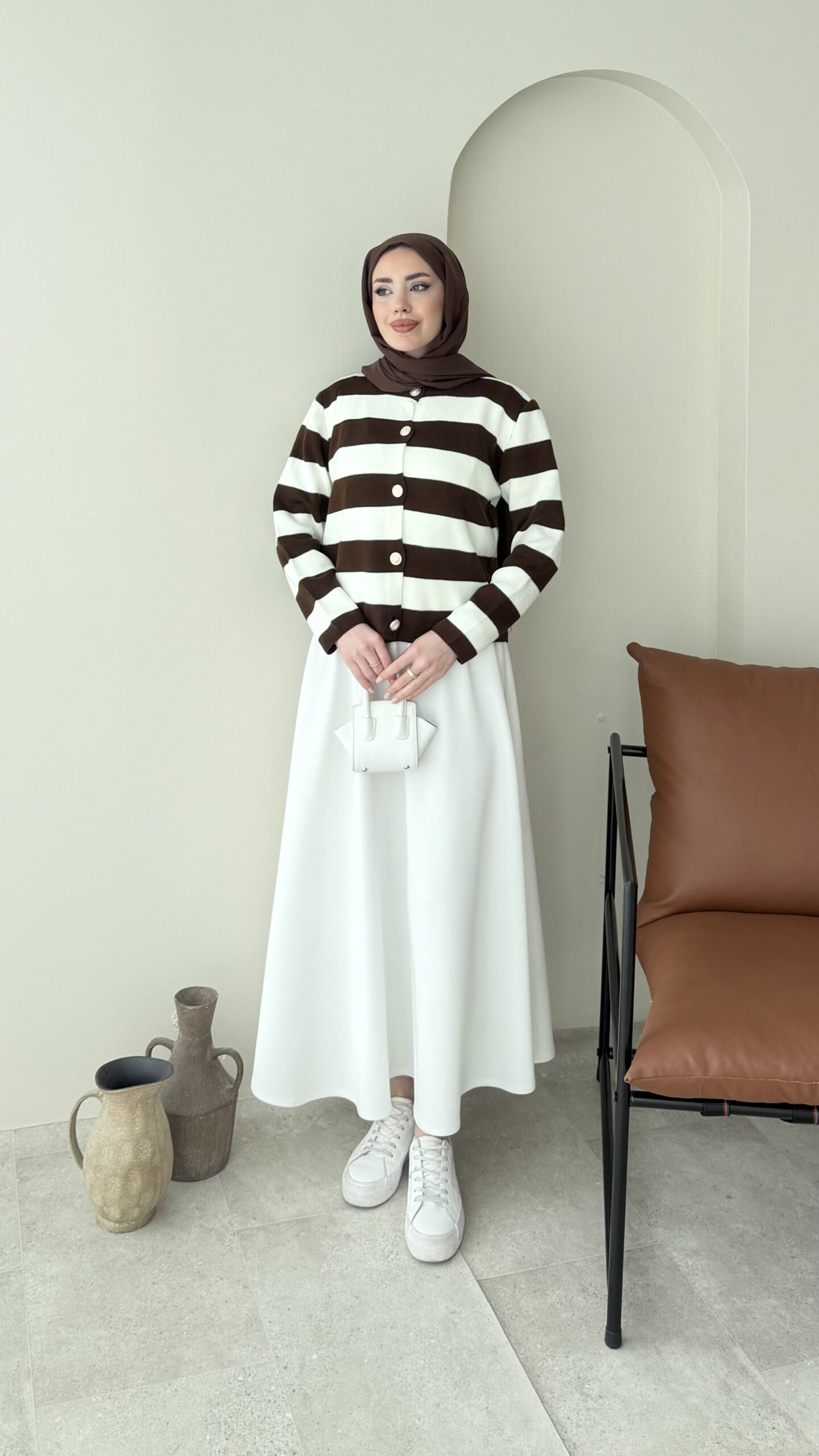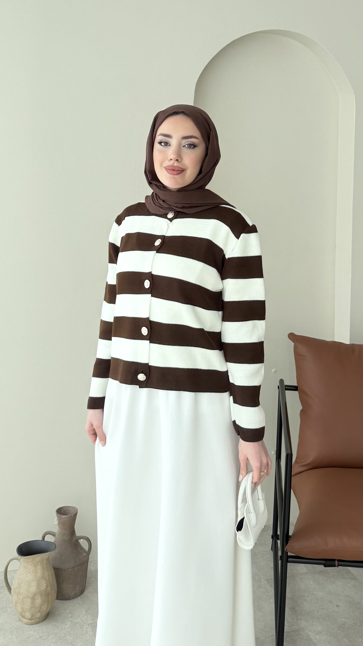 Nera Çizgili Triko Hırka – Kahve