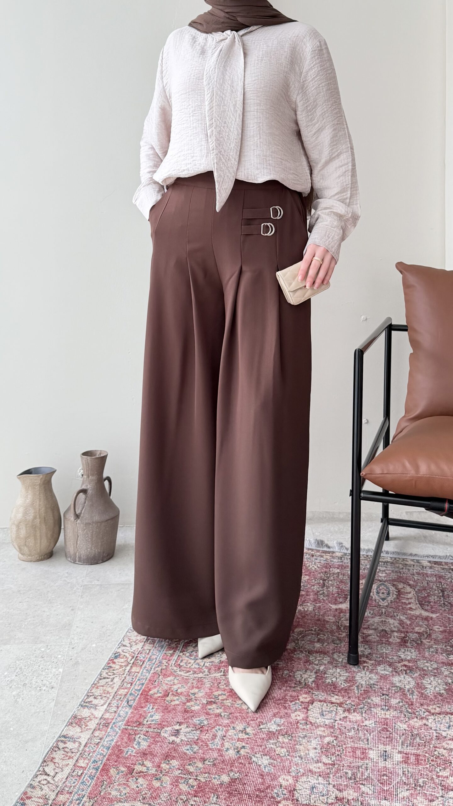 Sayle Detaylı Palazzo Pantalon – Kahve