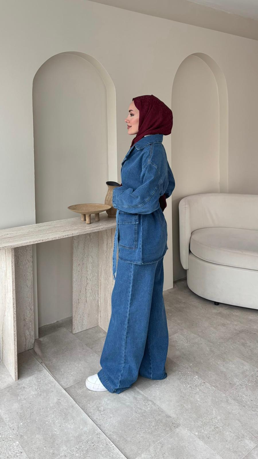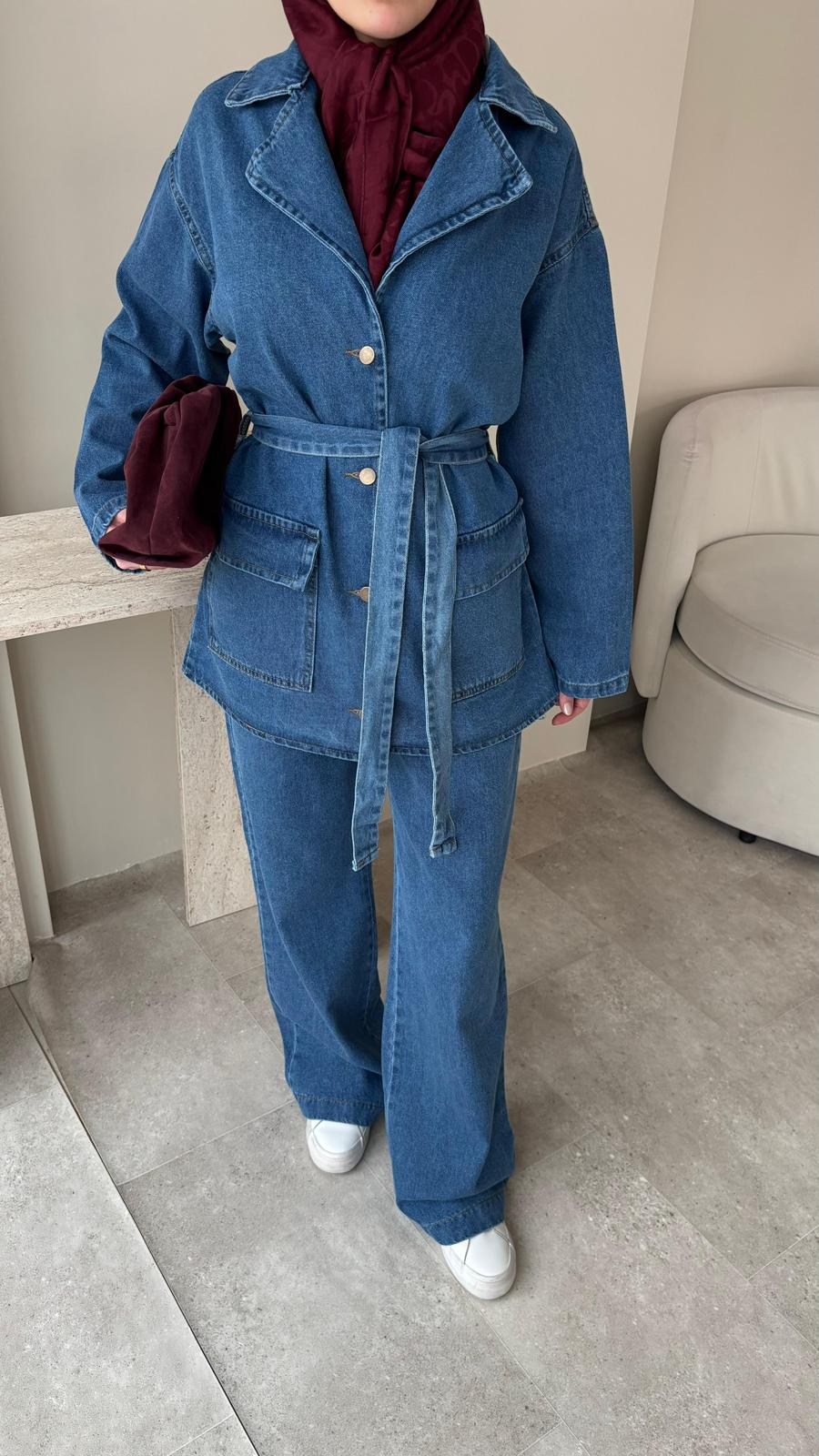 Olivia Kuşaklı Kot Takım – Lacivert