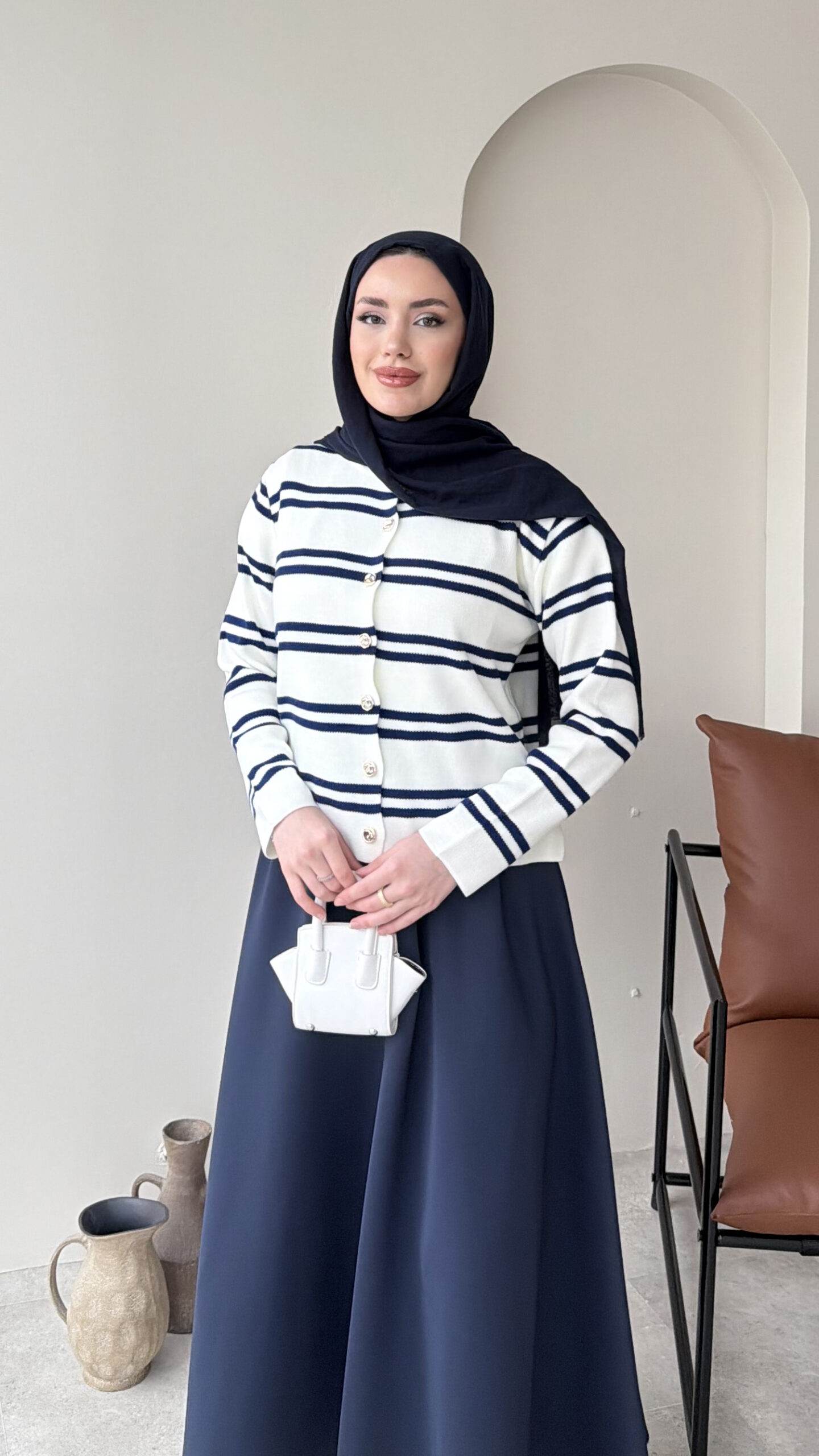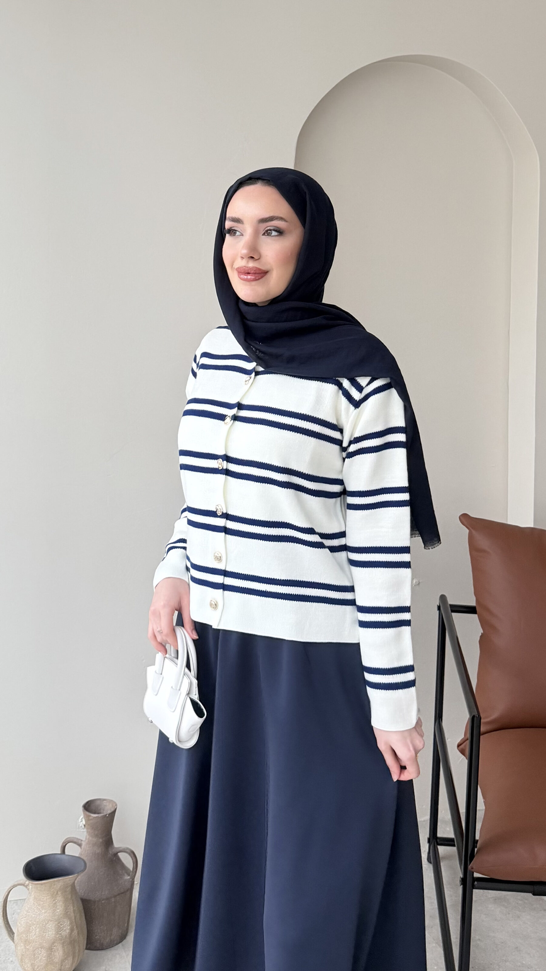 Çizgili Mini Hırka – Lacivert