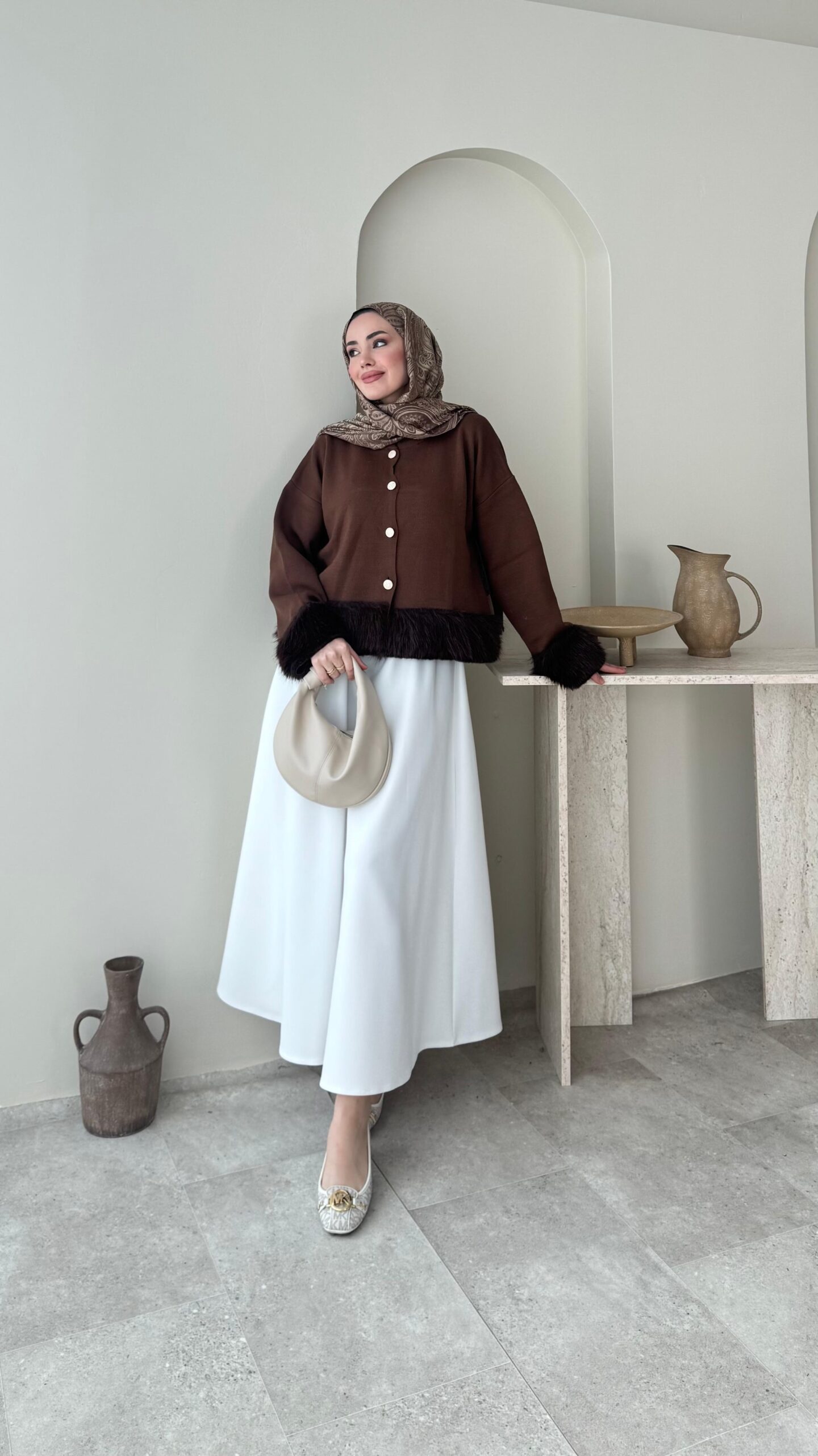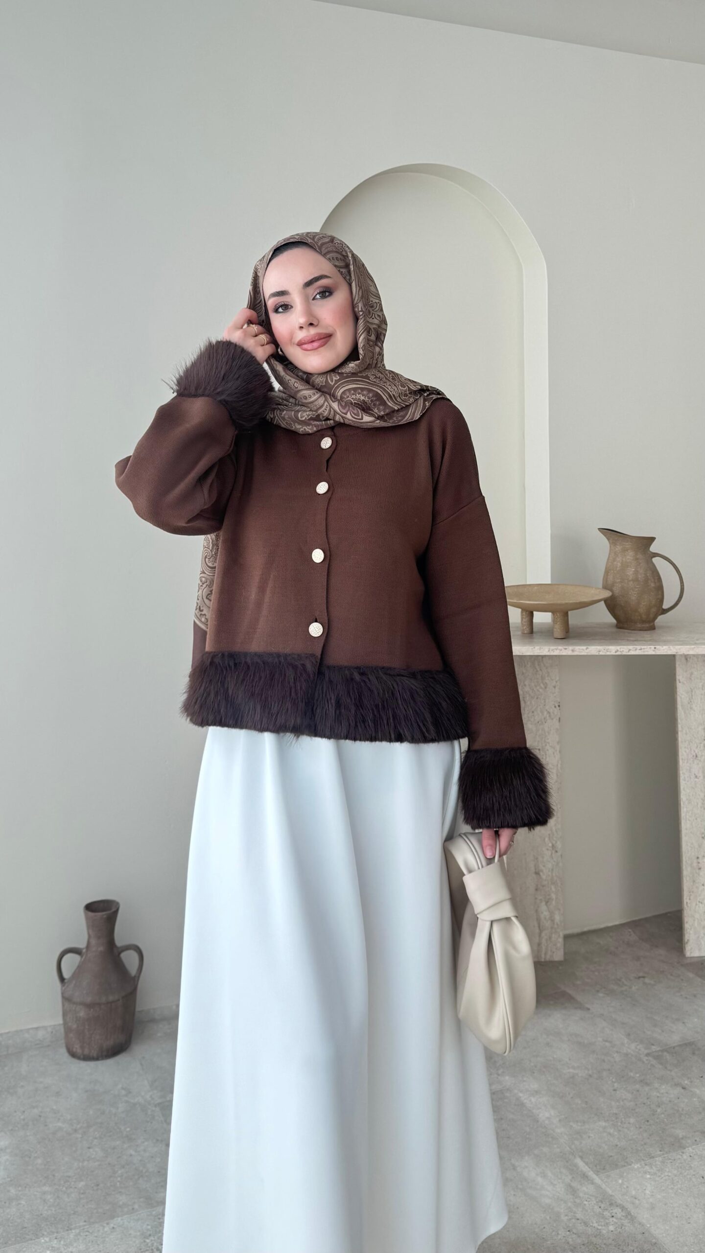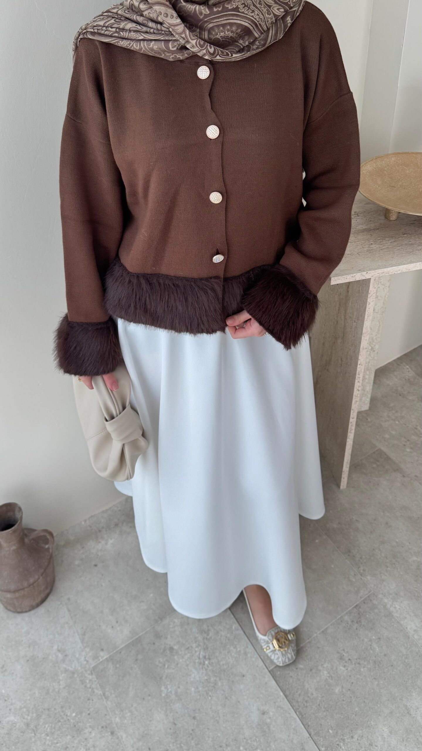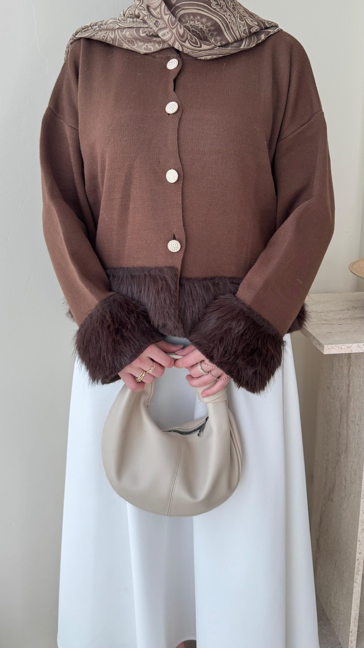 Mono Kürklü Hırka – Kahverengi