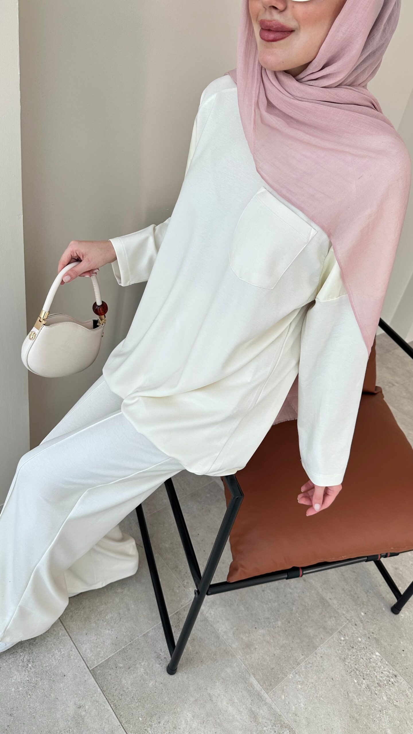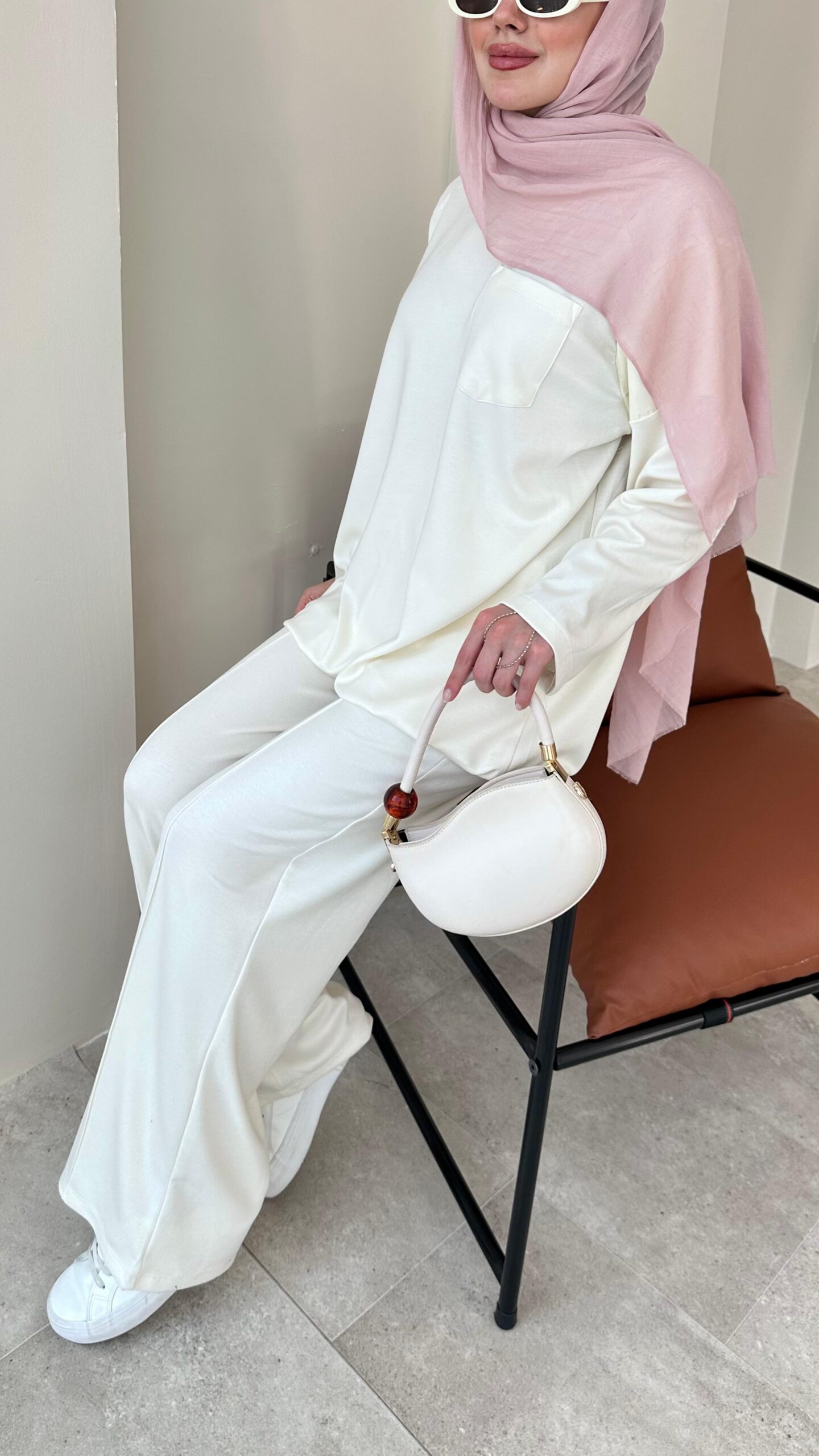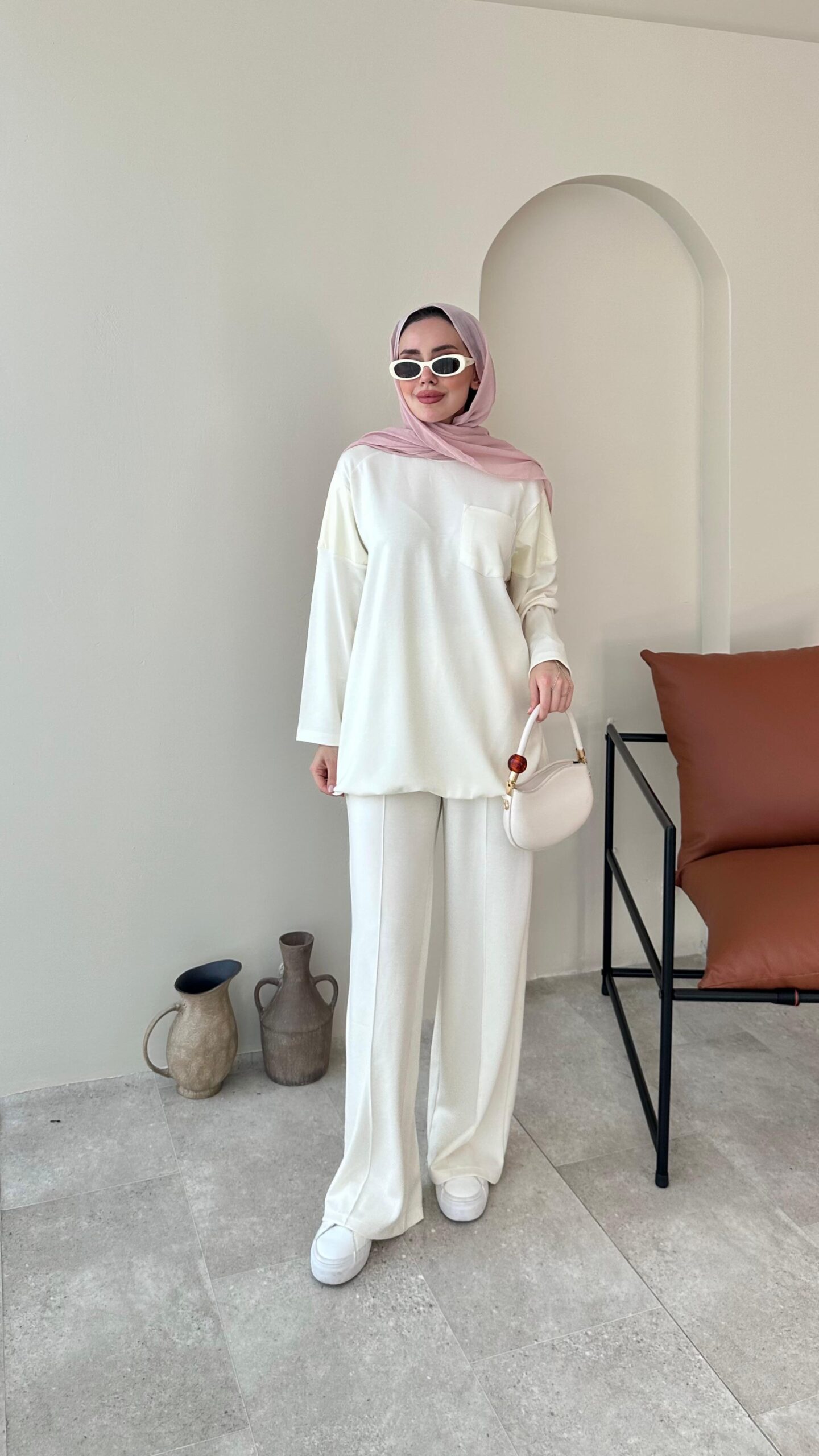 Oyşo kumaş rahatlığın tekrardan sizinle.Rahat kalıp pantolonu ve sweatiyle kurtarıcı parçalardan.