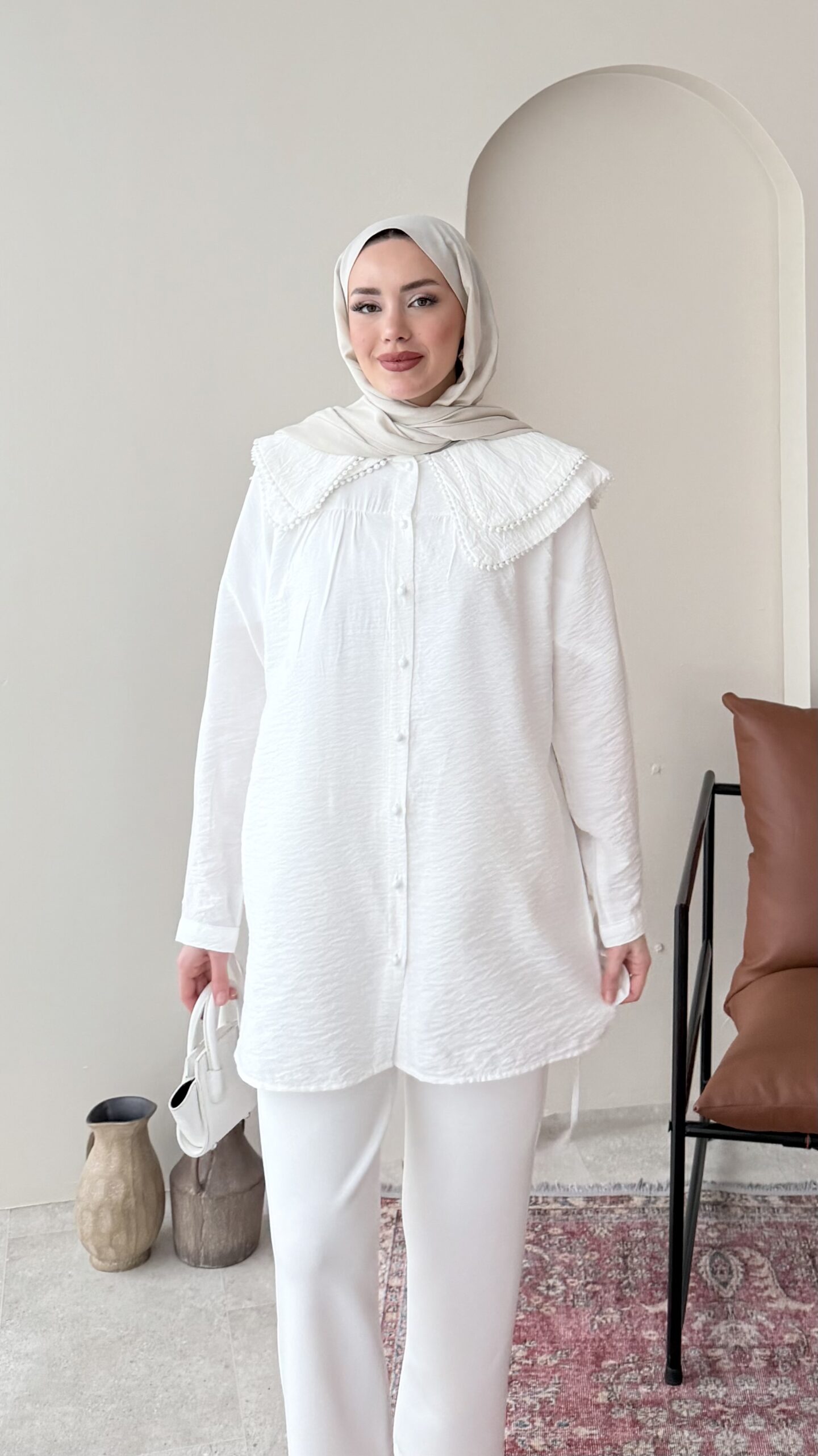 Fisto Detaylı Gömlek – Beyaz