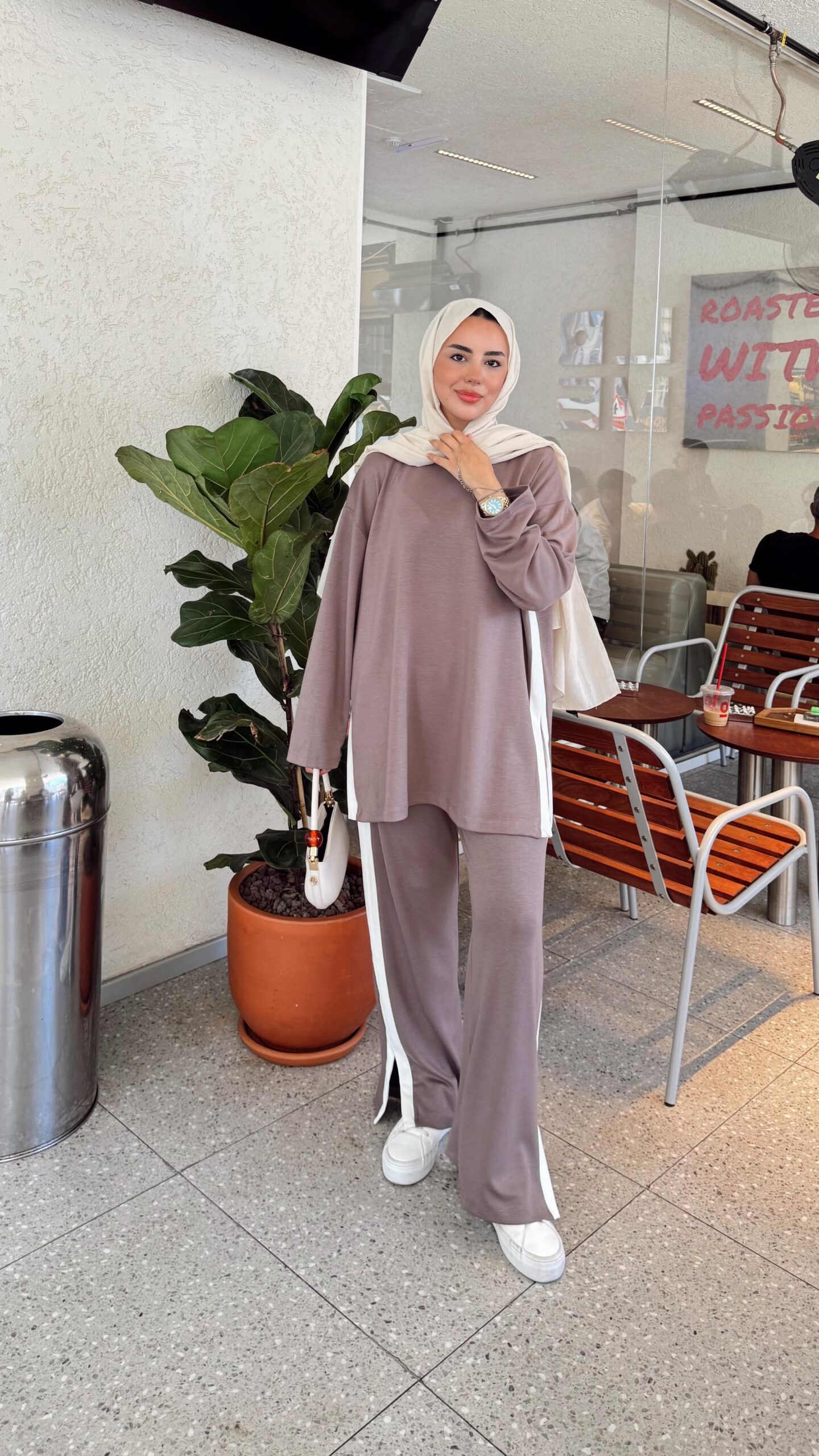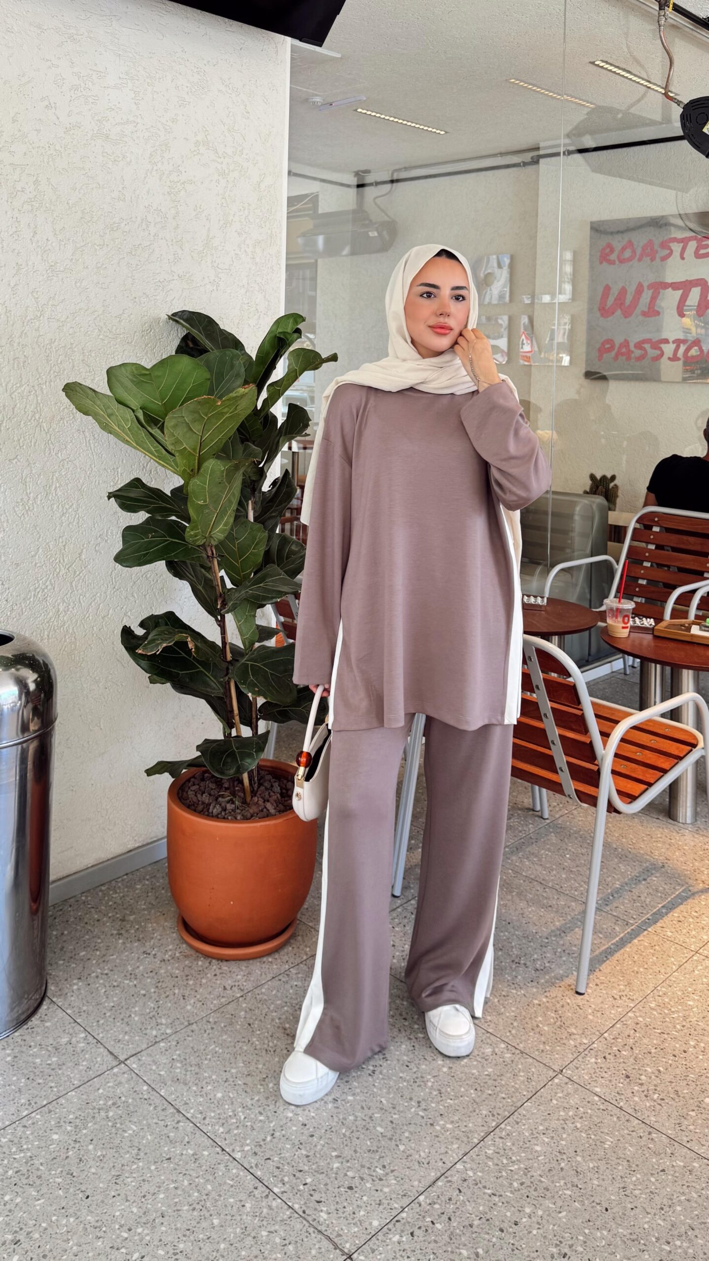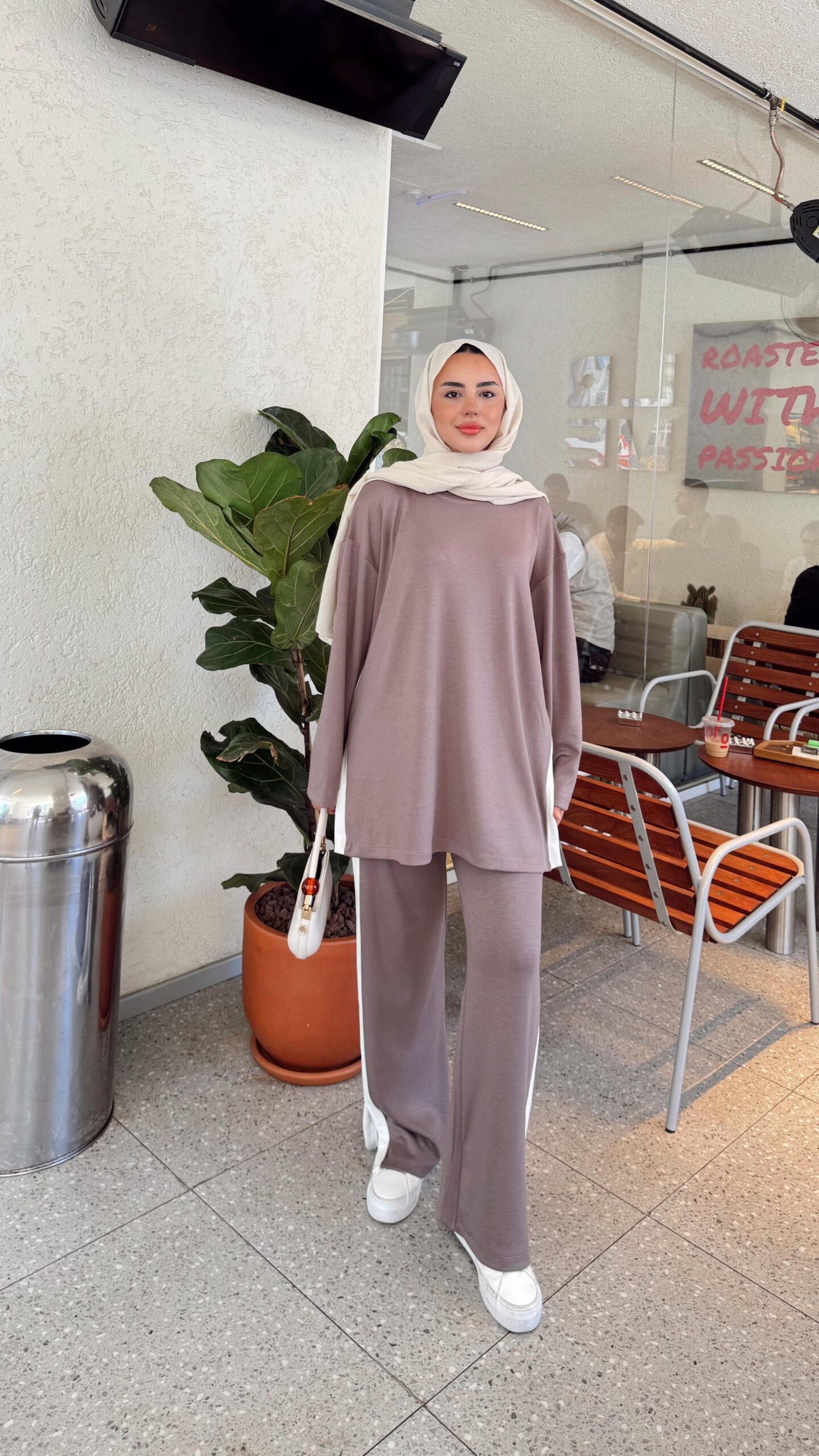 Rahat kalıp,oyşo kumaş takımımız yırtmaç detaylarıyla güne boyu şık ve konforlu kullanım sağlıyor.