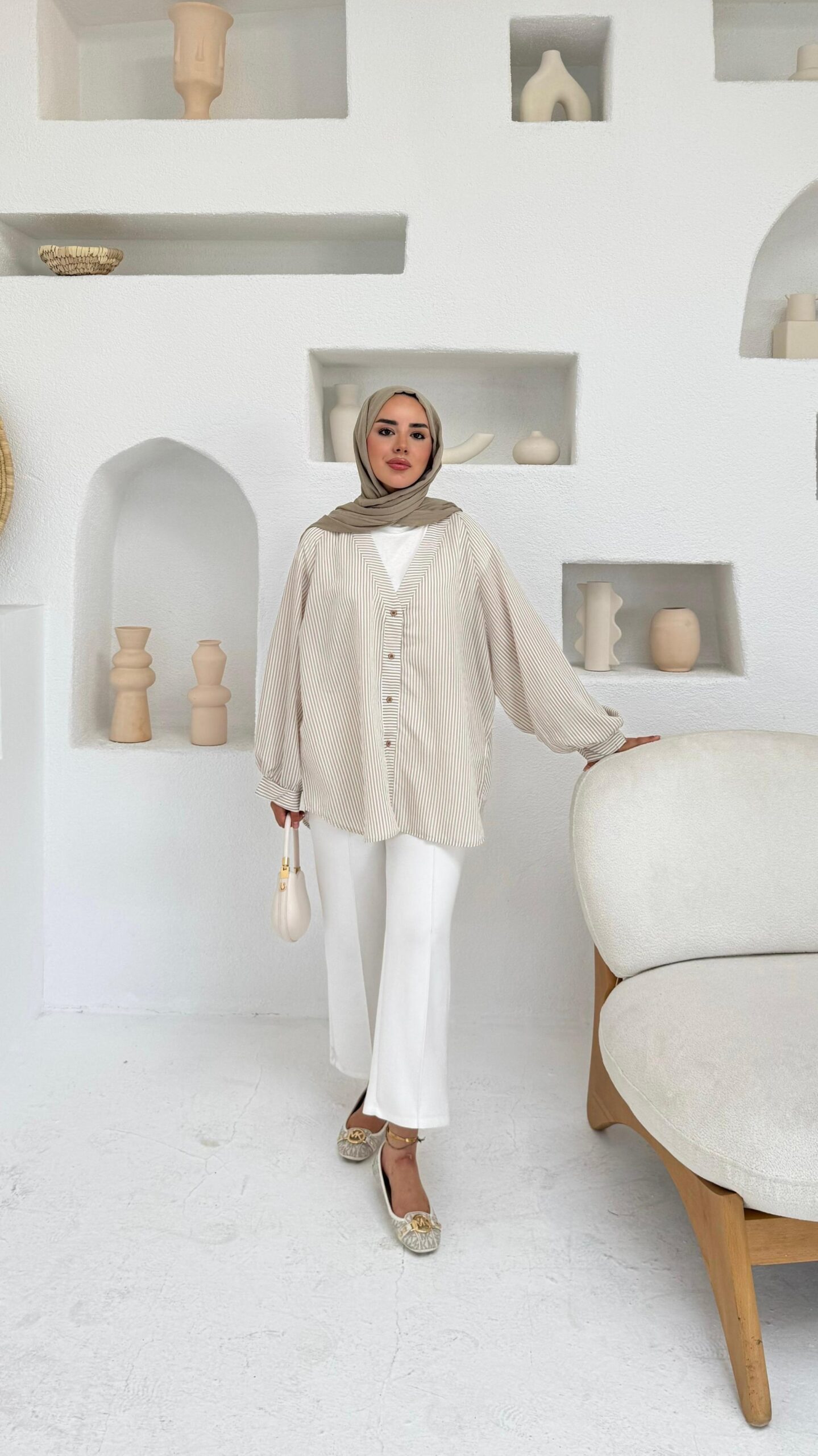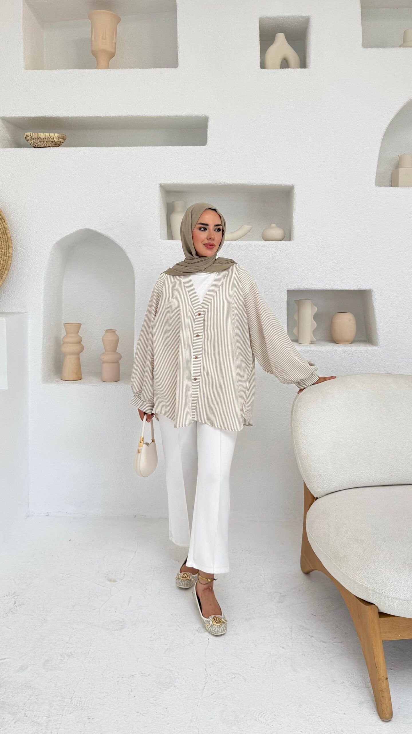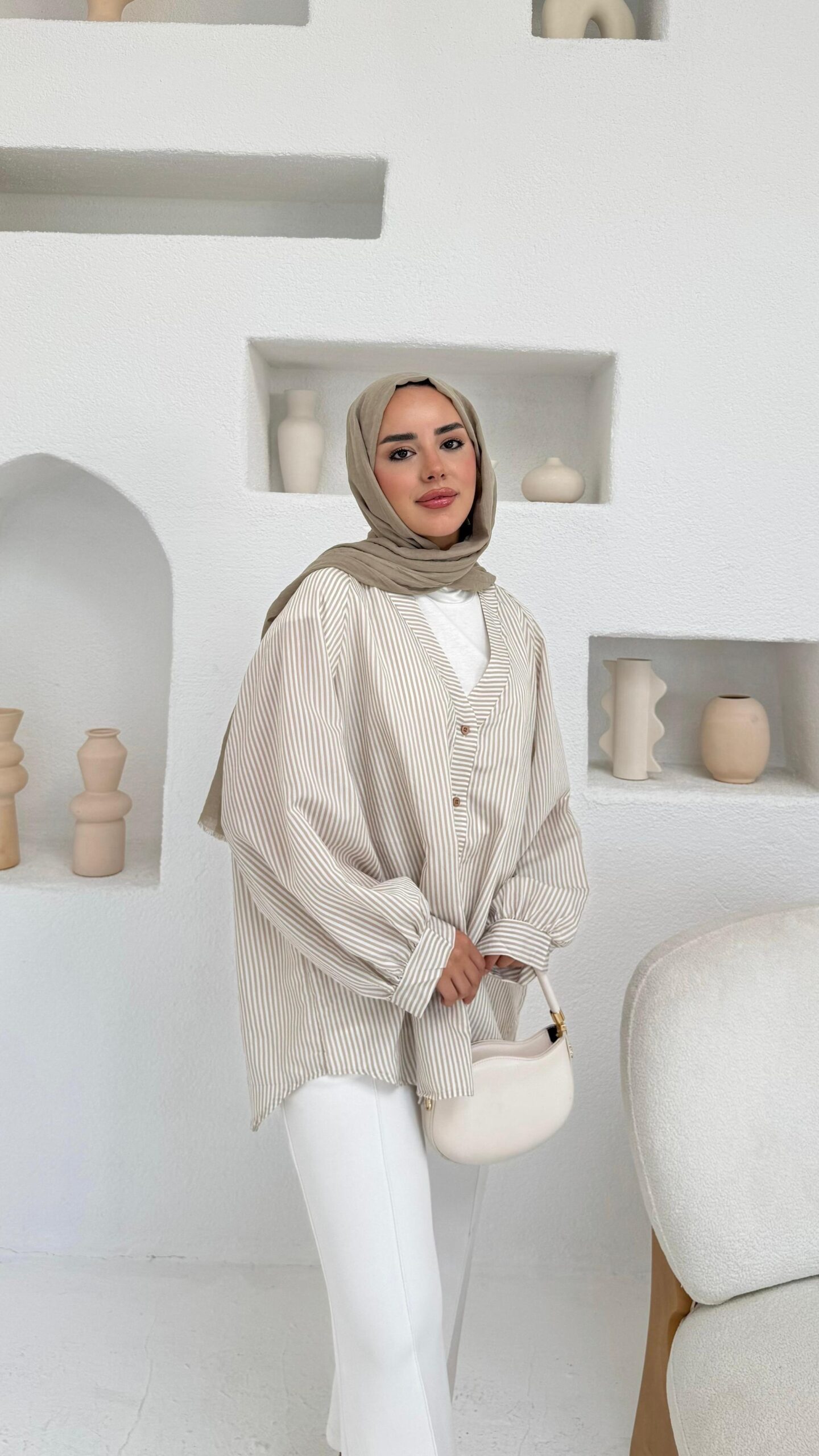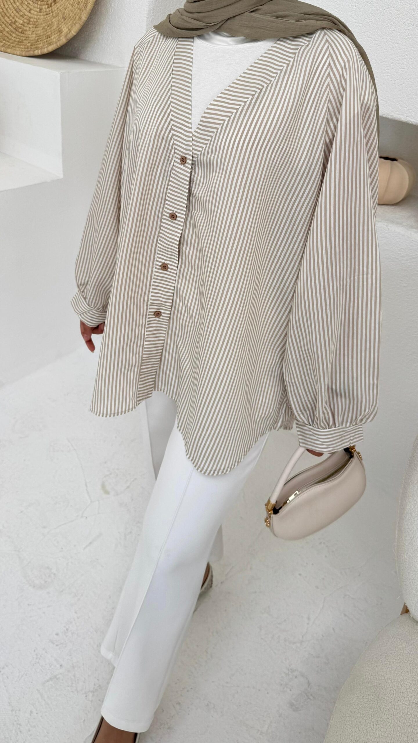 Mizgin Çizgi Gömlek – Vizon