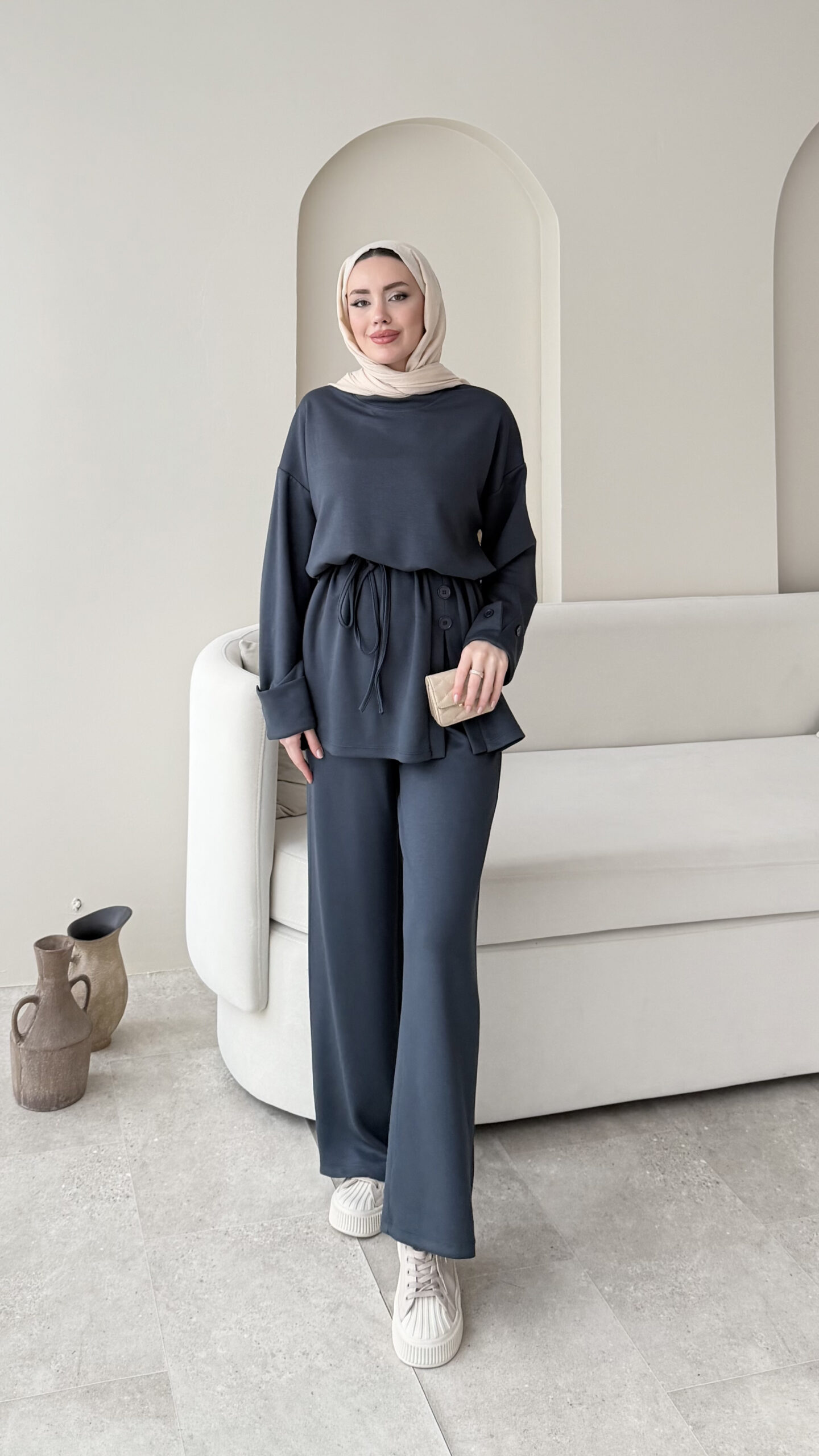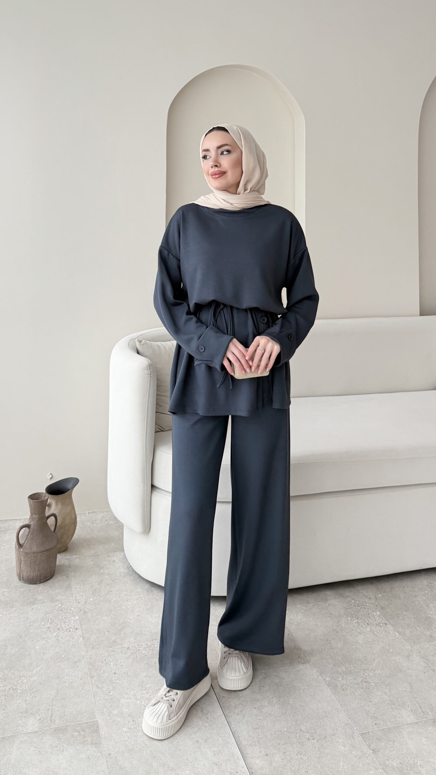 Luvi Düğmeli Oyşo Takım – Antrasit