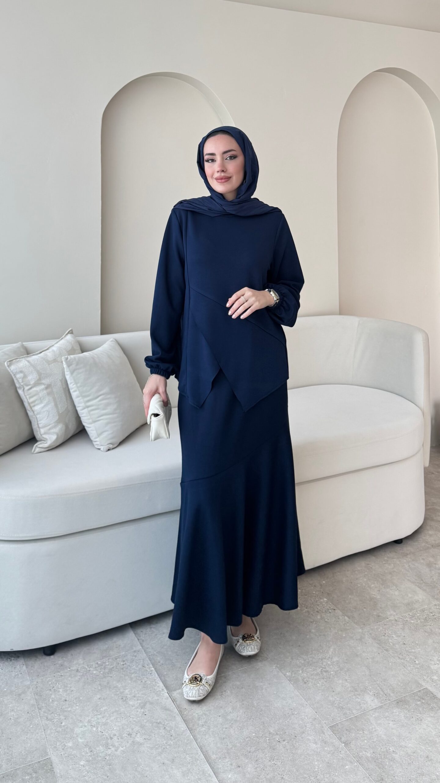 Asimetrik kesim üst bluzu ve lastikli eteğiyle oyşo takımımız hem özel tasarım hemde oldukça rahat takımlarımız arasında✨