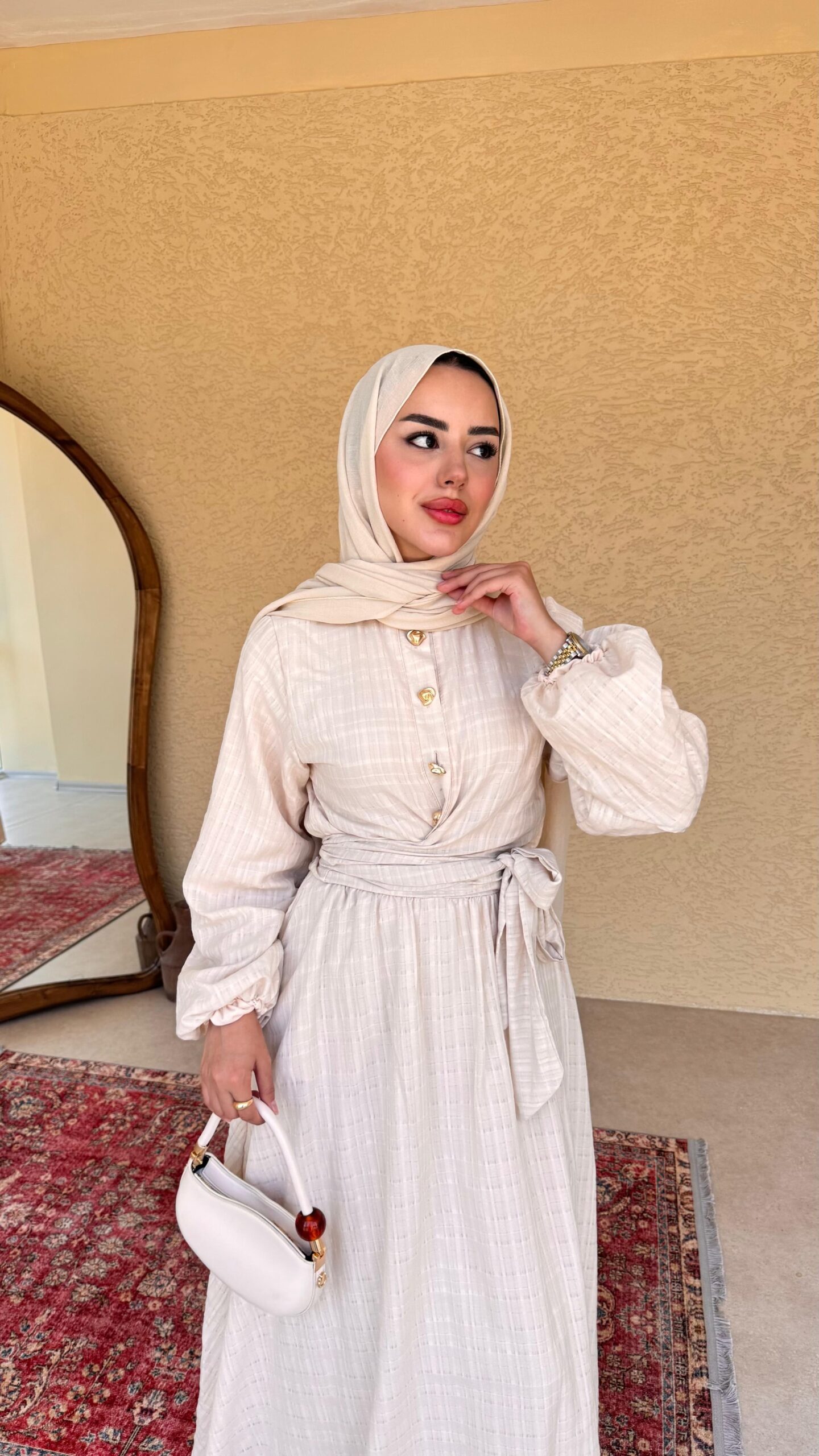 Gold düğme detayı, rahat ve sizi yormacak kumaşıyla tam bir prenses takımı.