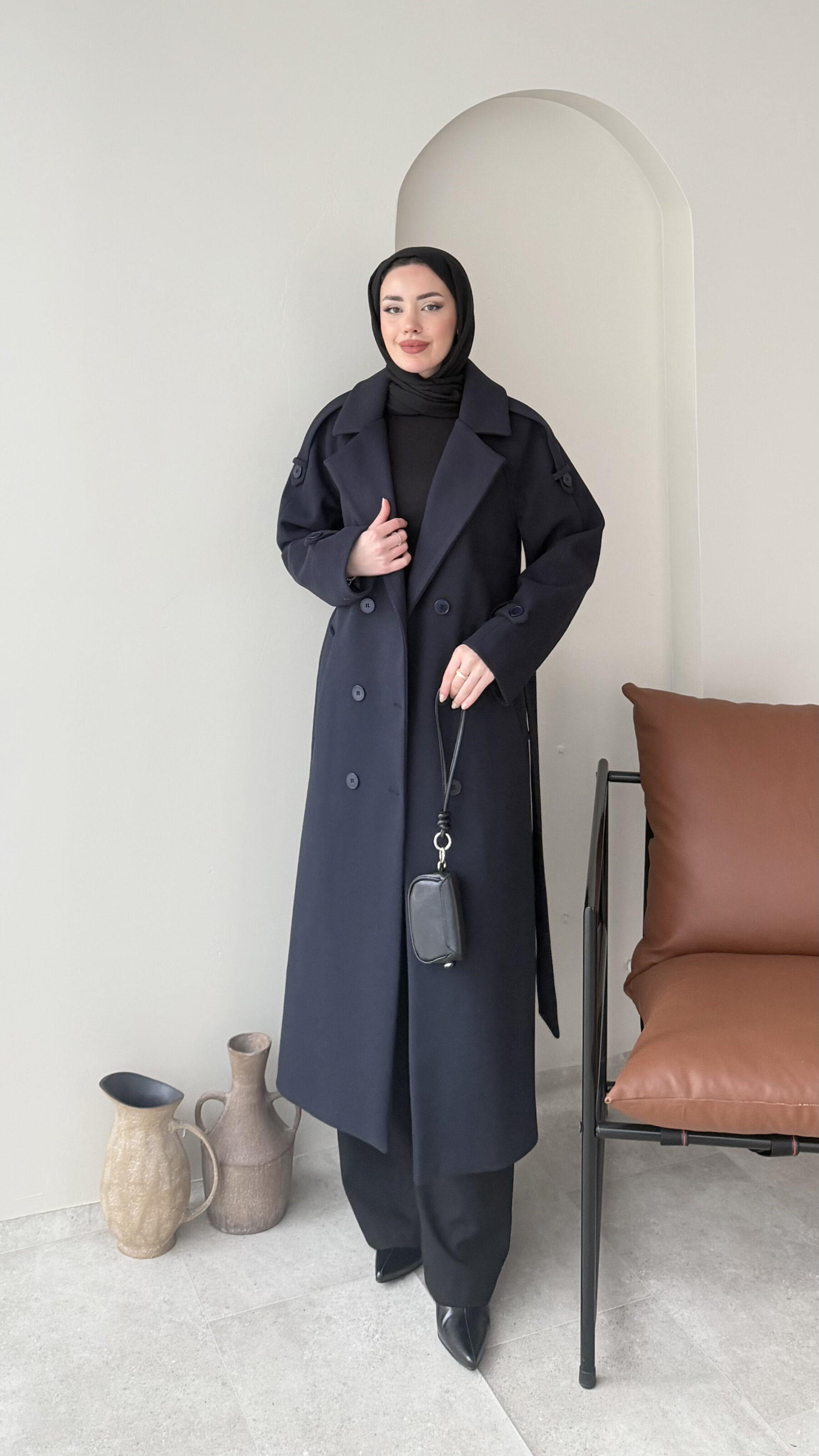 Hira Şal Yaka Premium Kaşe Kaban – Siyah