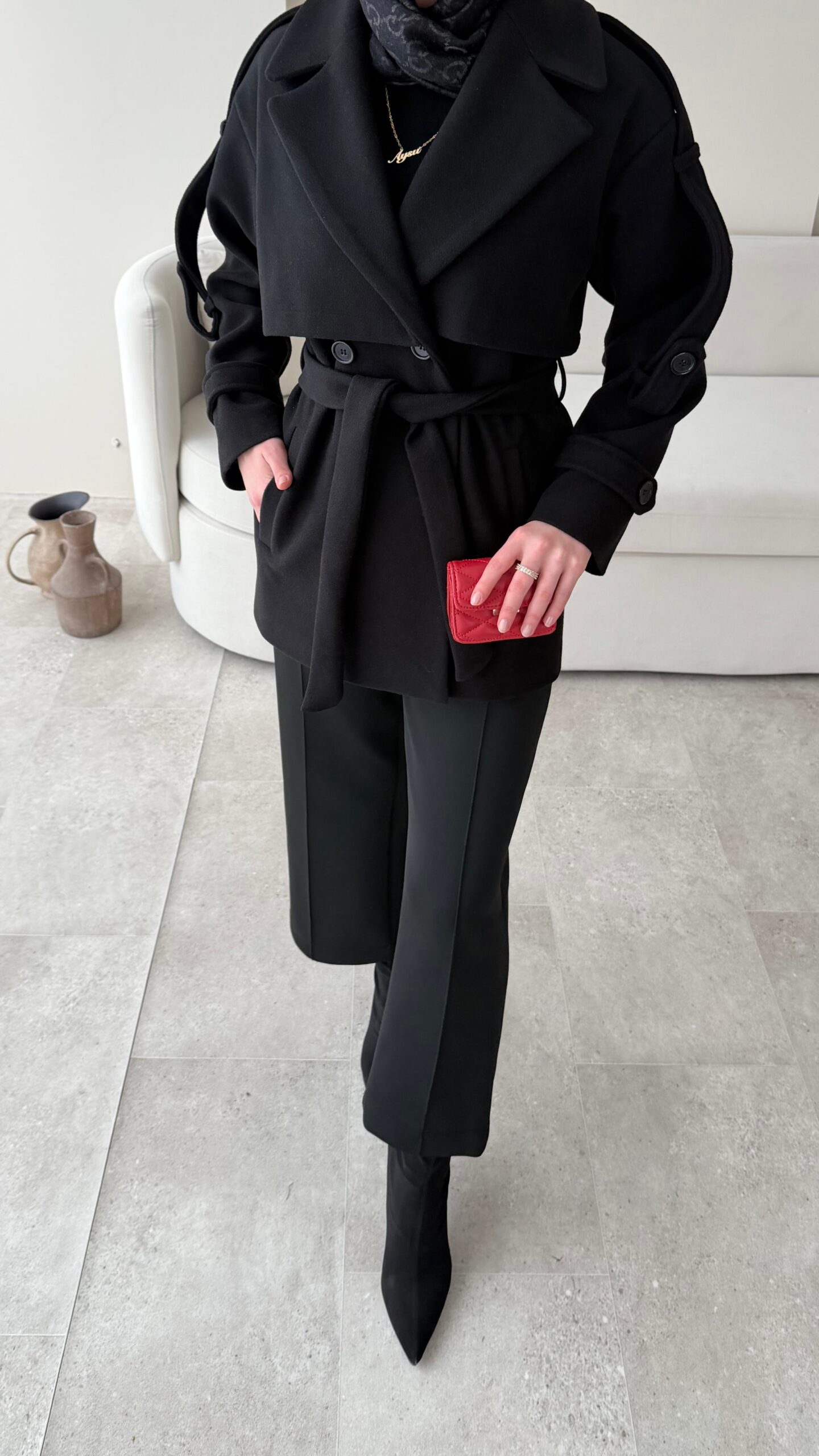 Hira Şal Yaka Premium Kaşe Kaban – Lacivert