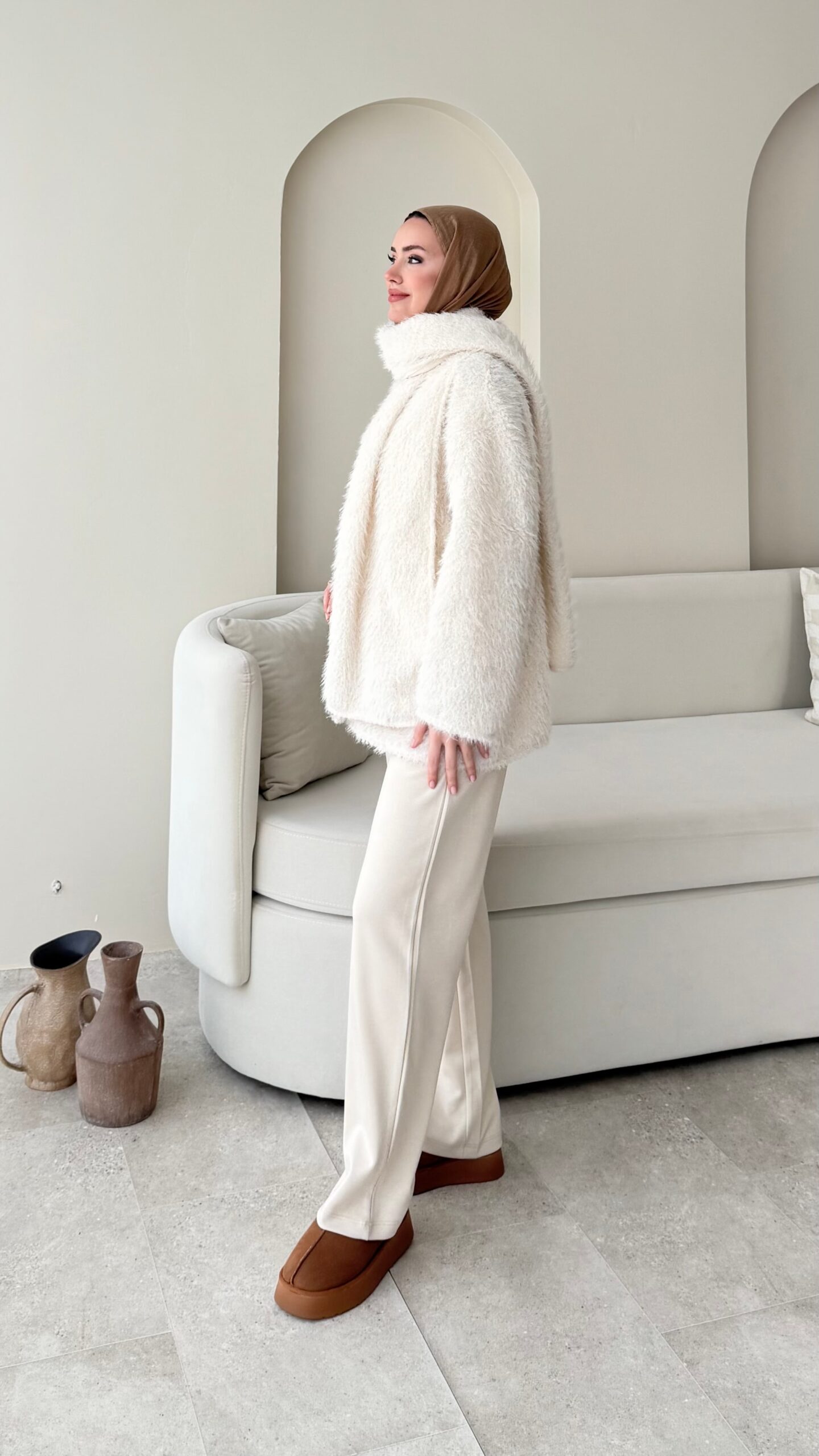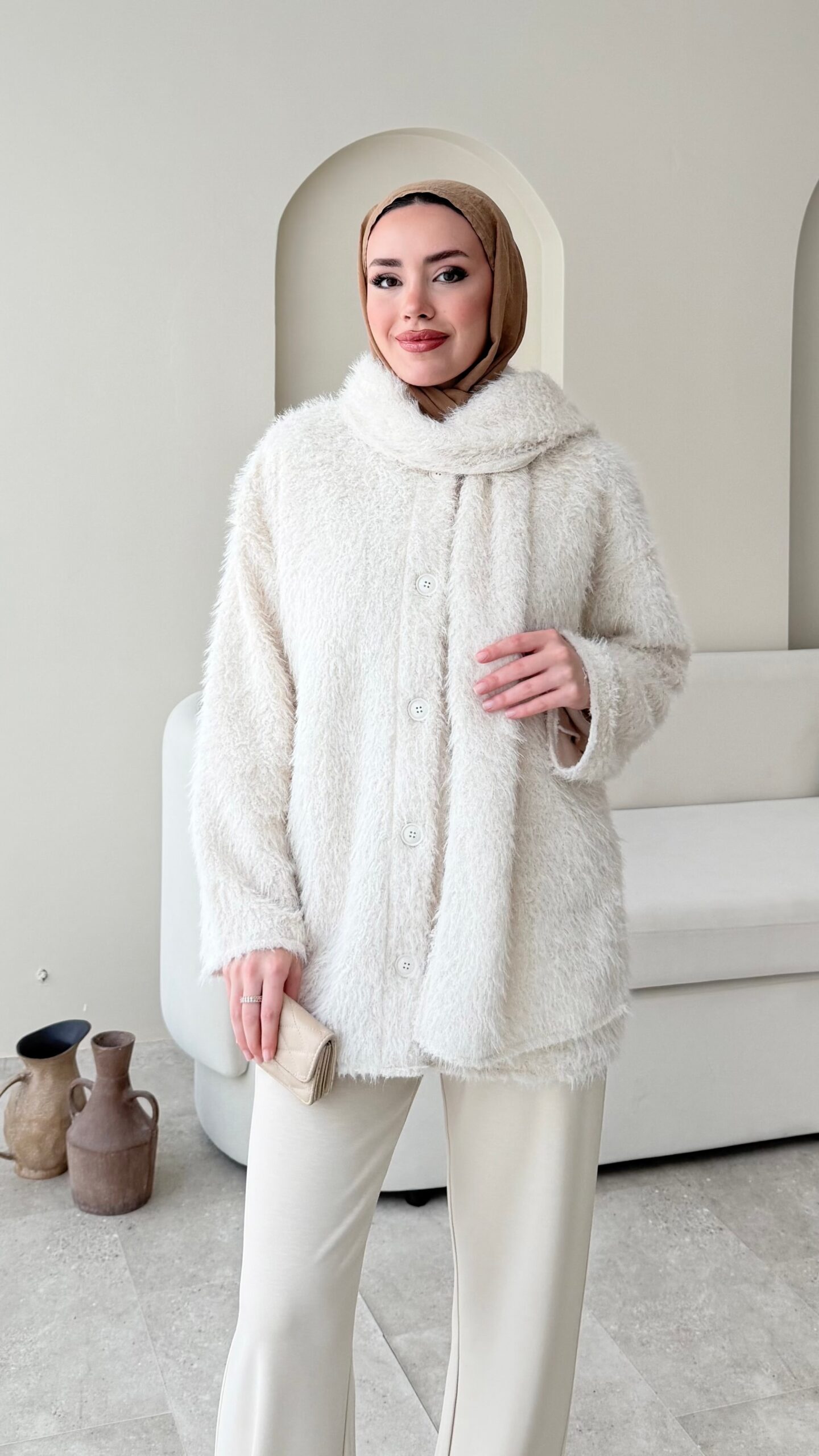 Mores Tüylü Kap – Ekru
