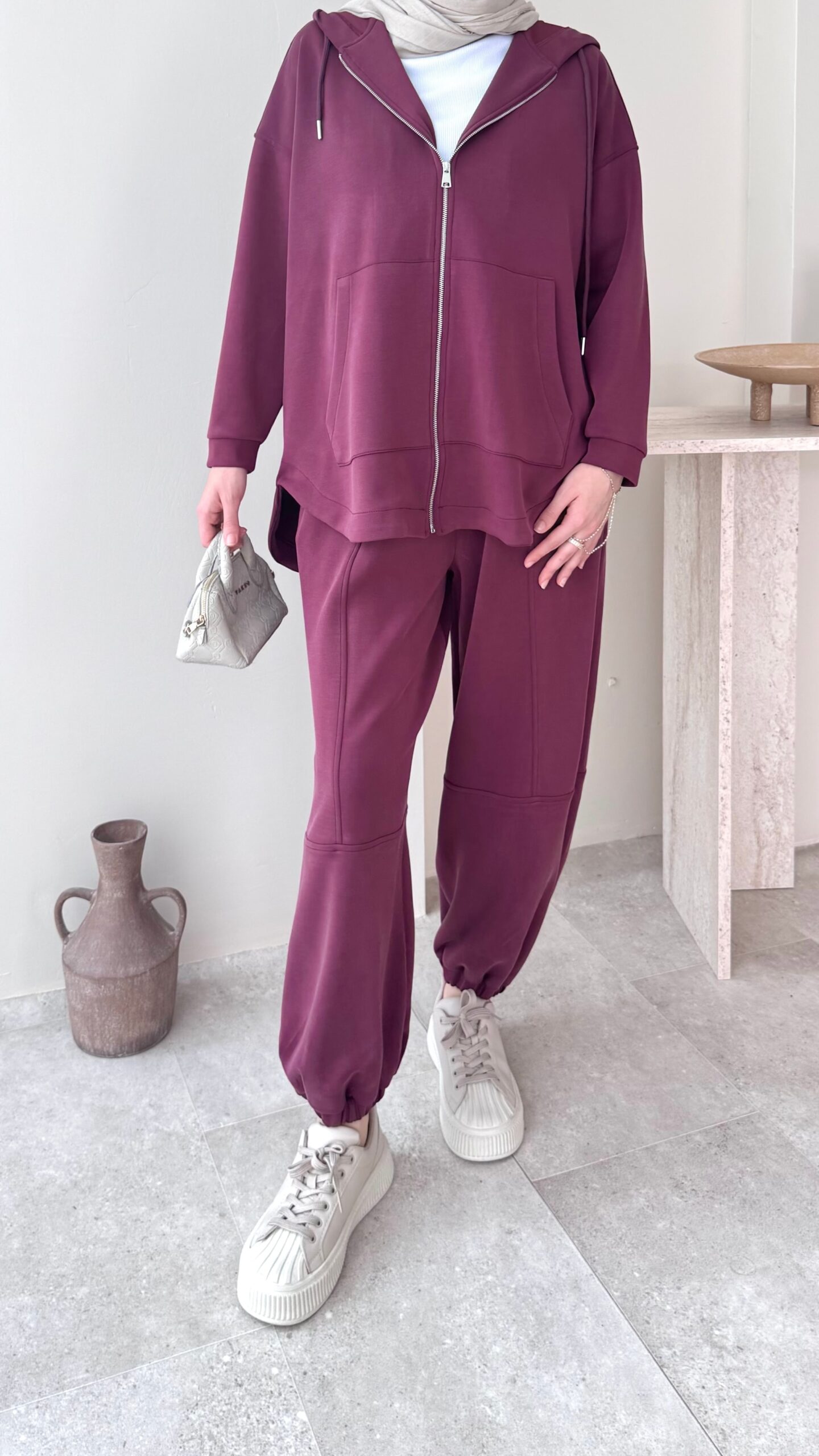 Premium oyşo kumaştan üretilen “Herme Salaş Oyşo Takımımız” rahat kalıbı,fermuarlı hırka ve eşofmanıyla inanılmaz konforlu✨