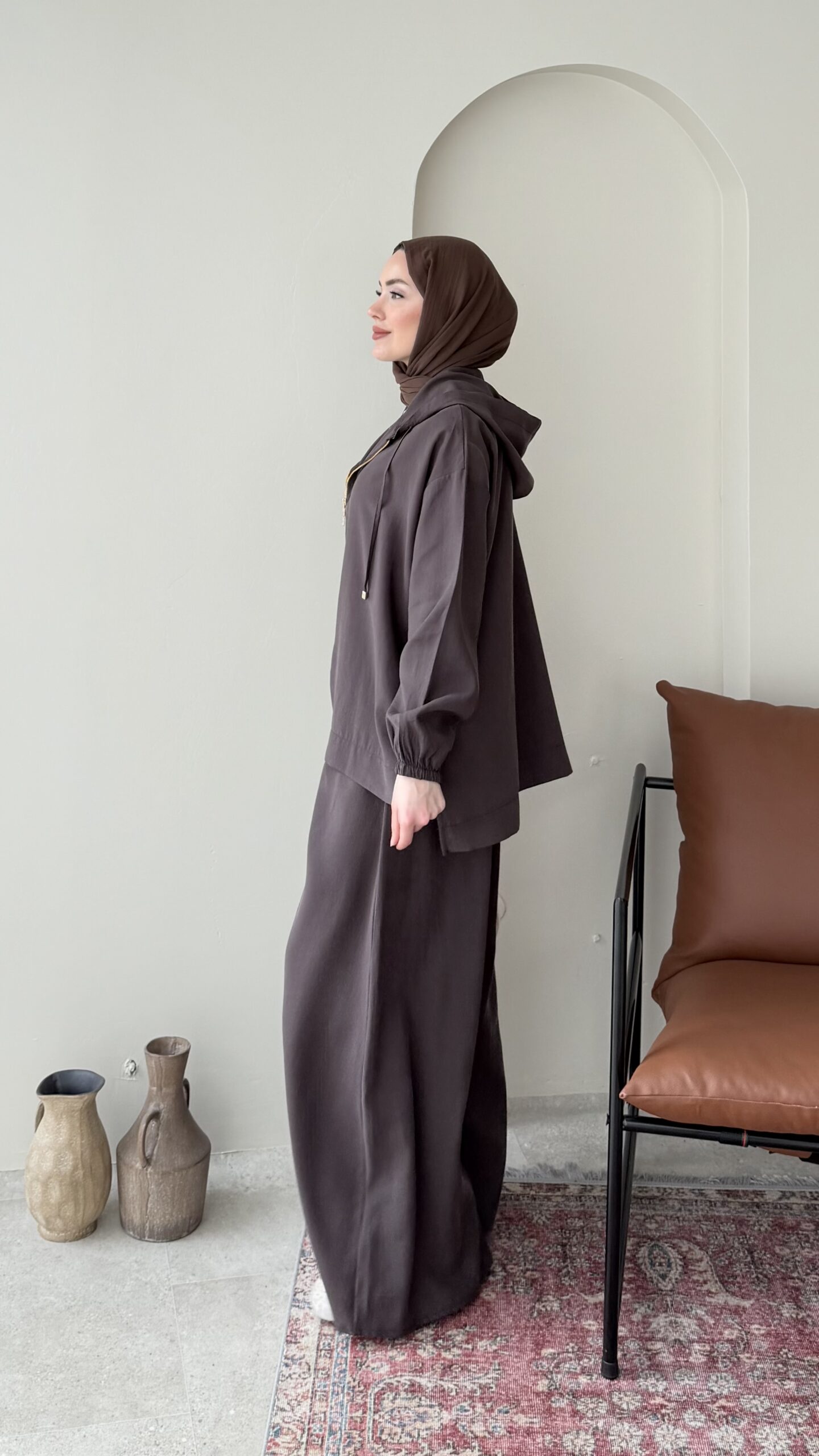 Yâde İpeksi Qupra Takım – Kahverengi