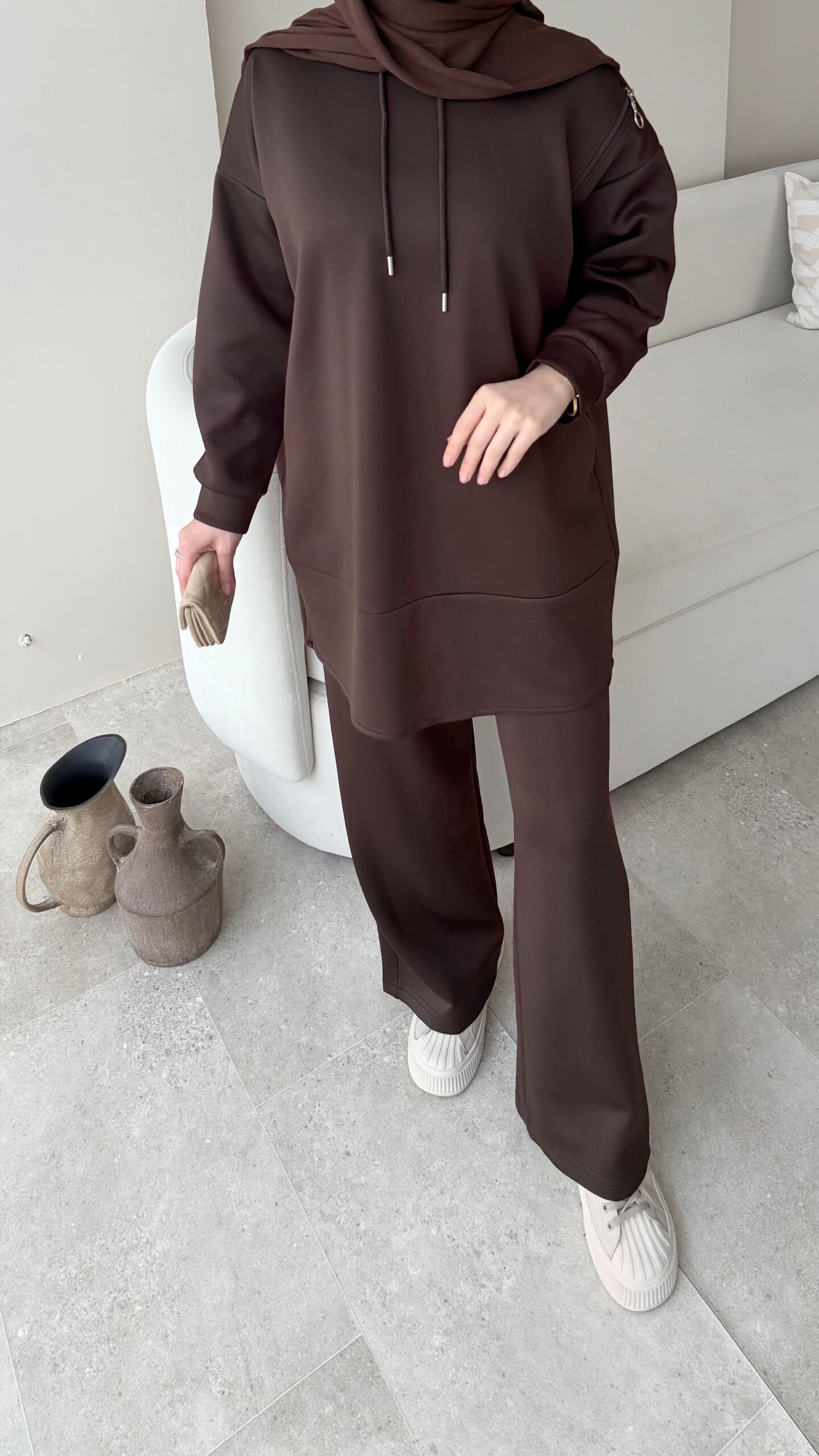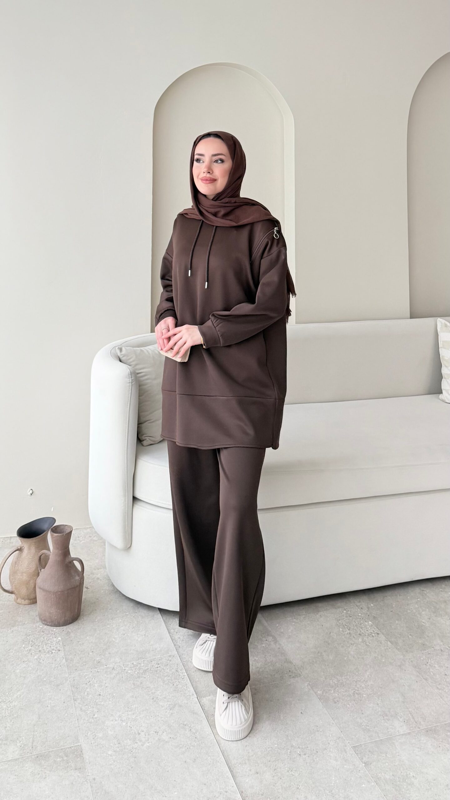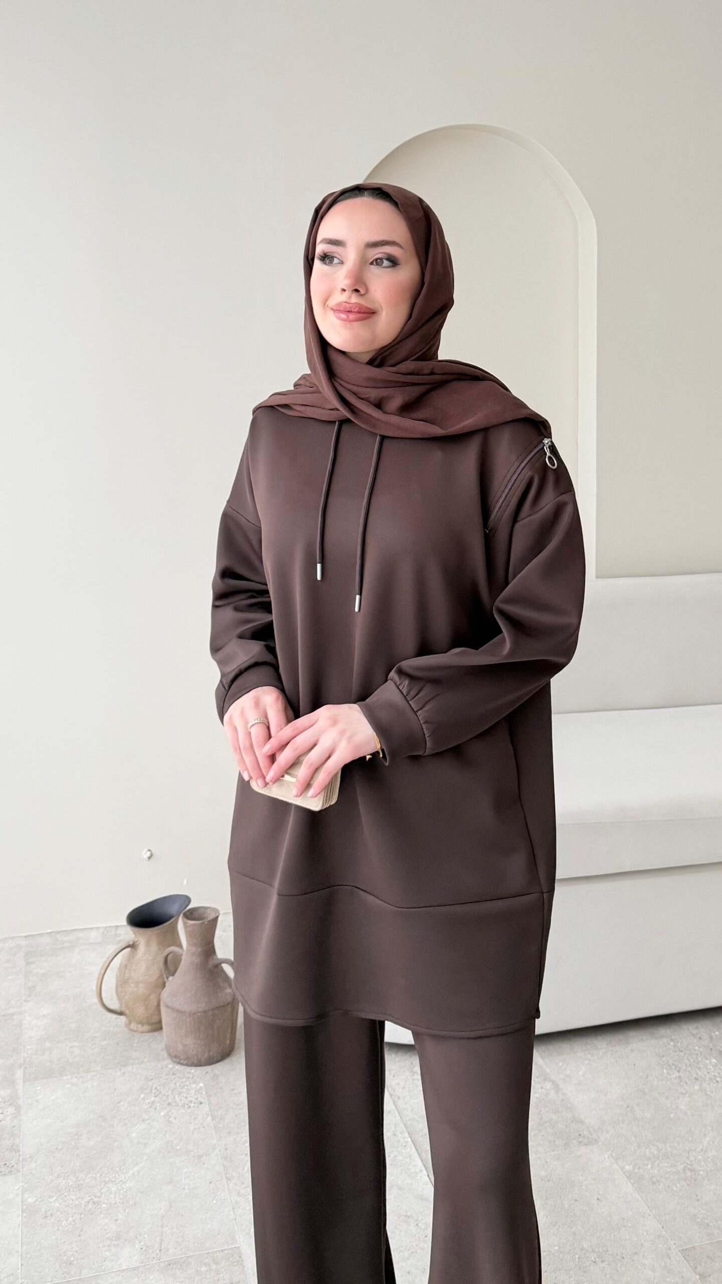 Pilya Fermuarlı Scuba Takım – Kahverengi