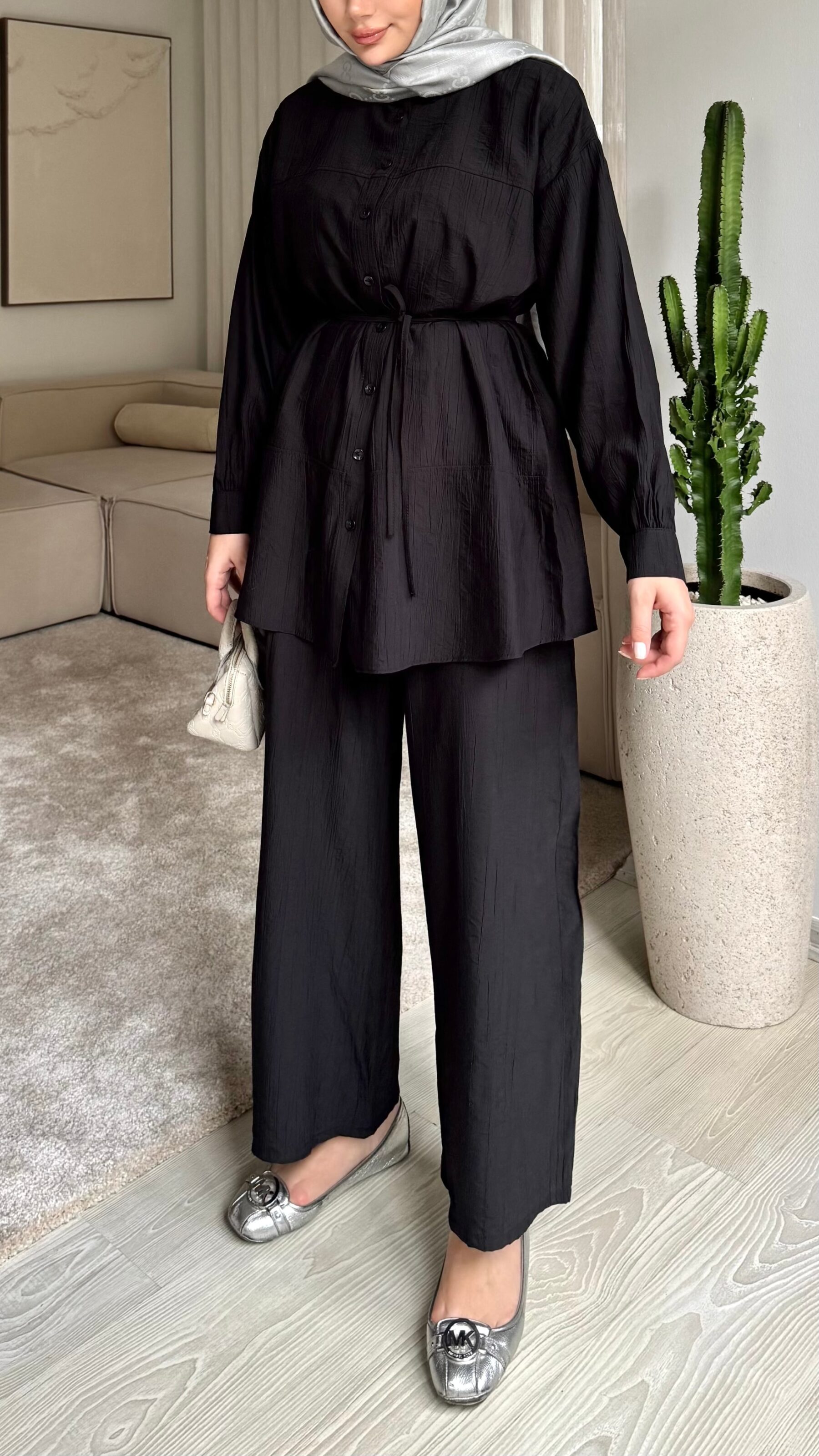 Pantolonun beli lastikli ve cepleri mevcuttur