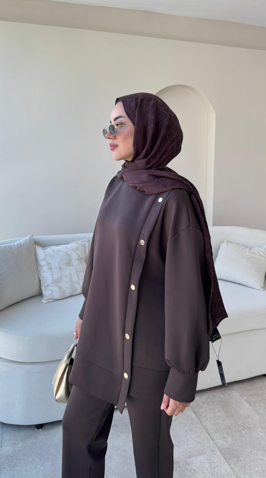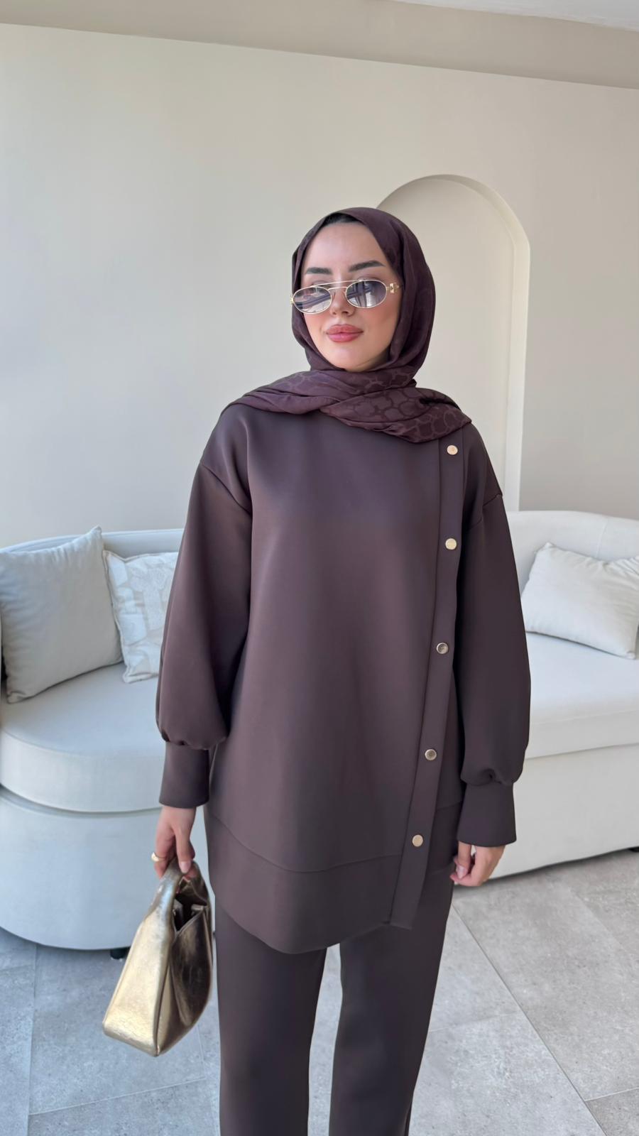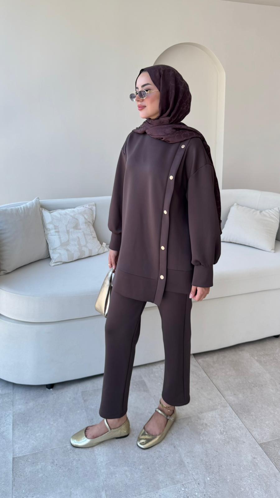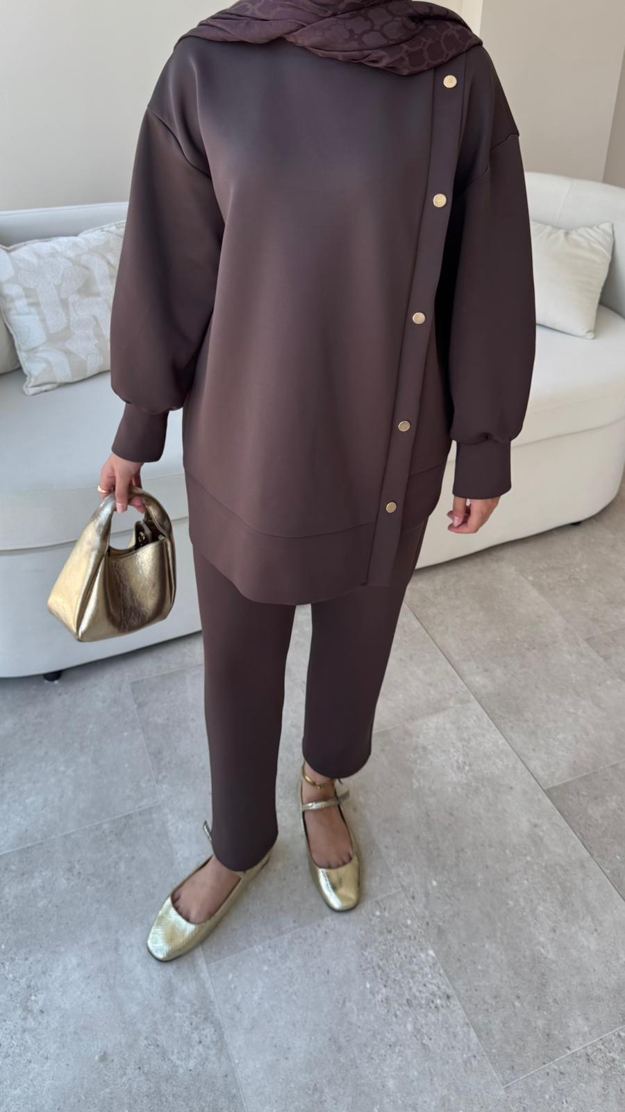 Sole Düğmeli Scuba Takım – Acı Kahve