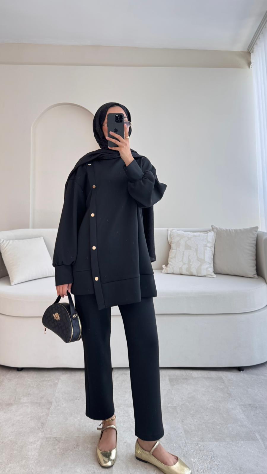 “Sole Düğmeli Scuba Takım – Siyah” için yorum yapan ilk kişi siz olun