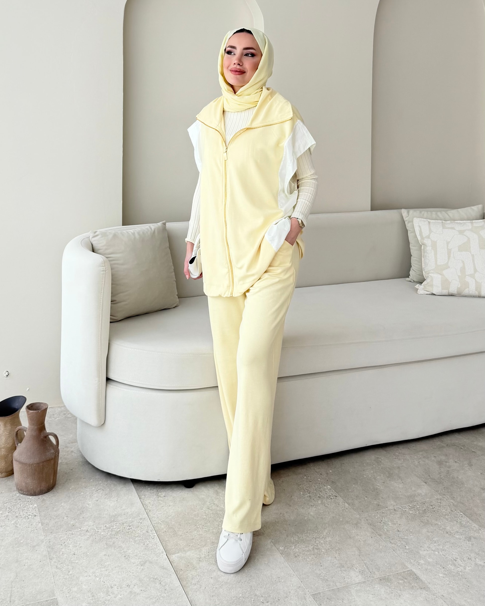Yelek takımlarımızda bir yenisi daha!! Yelekli takımları ne kadar sevdiğinizi biliyoruz, oyşo kumaş ve rahat kalıpta takımımız sizinle