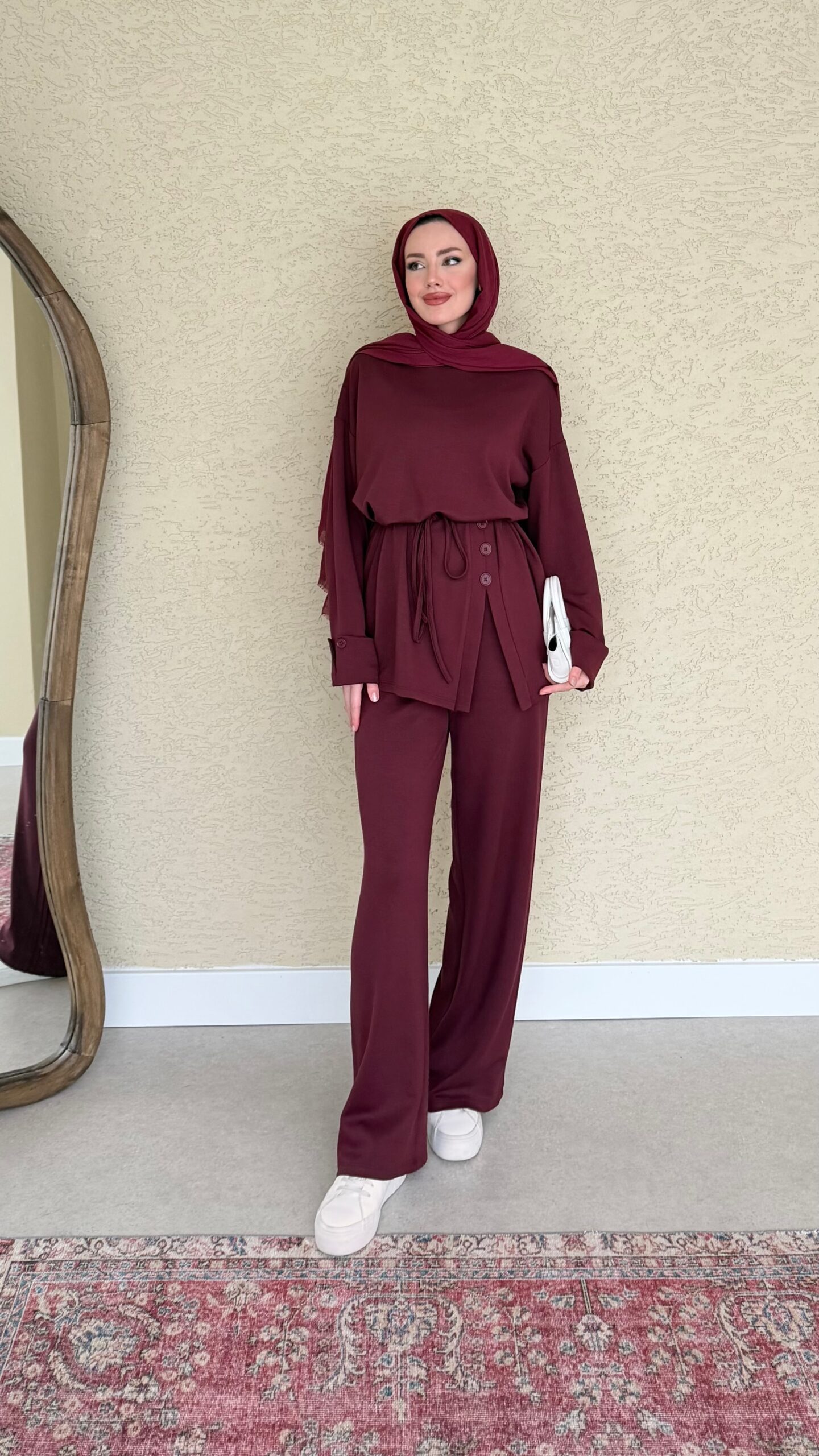 Berli Düğmeli Oyşo Takım – Bordo
