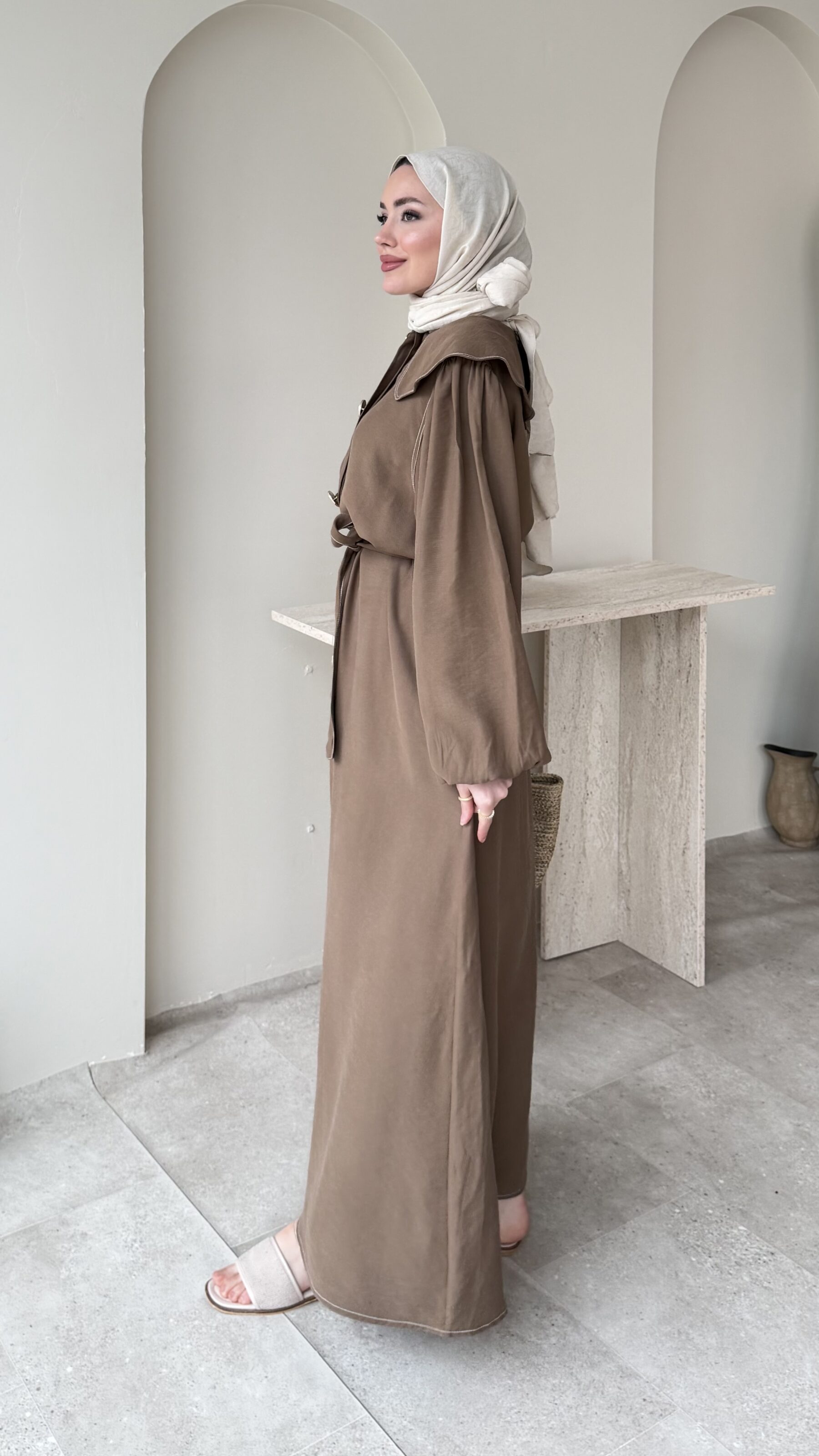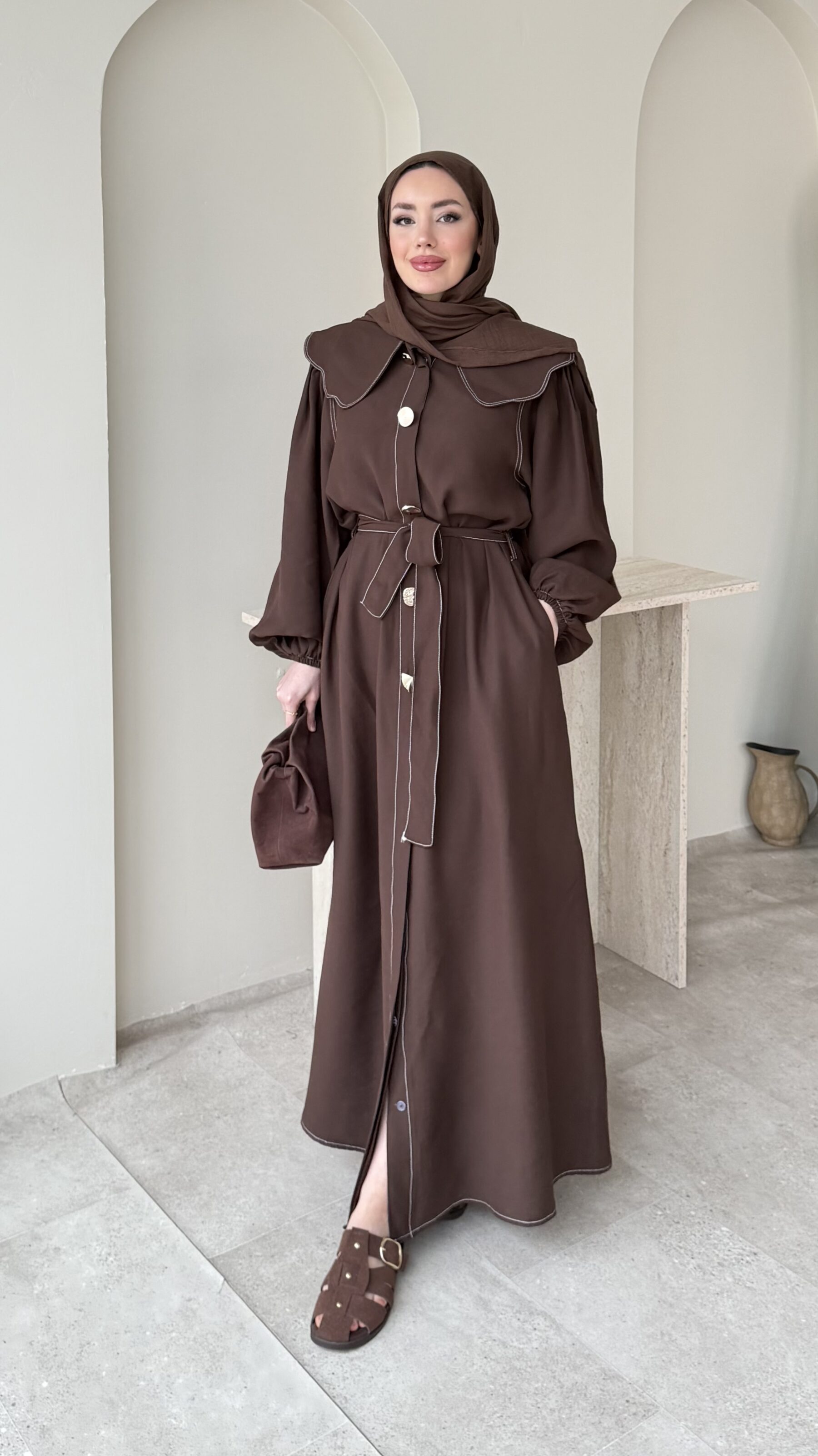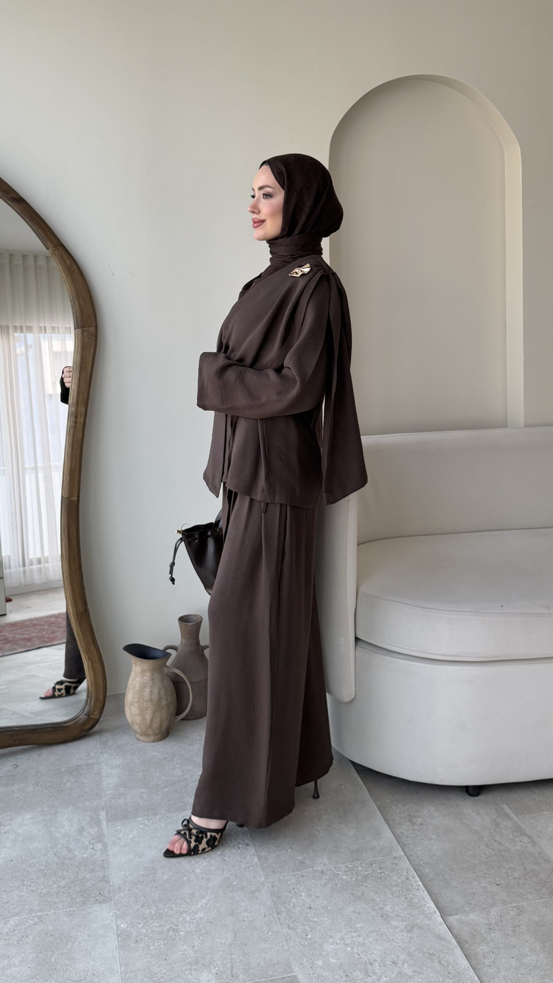 Yumi Şal Yaka Takım – Kahverengi