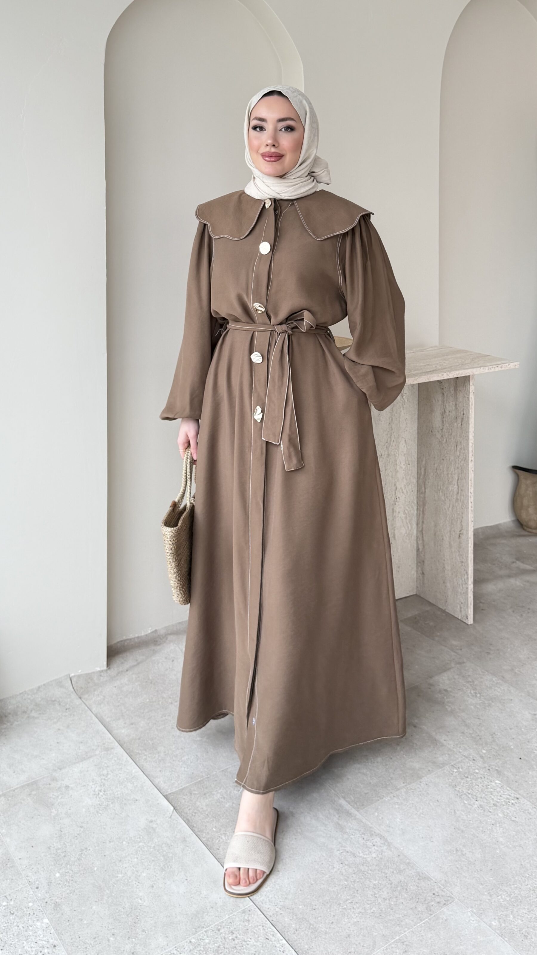 Anna Bebe Yaka Elbise – Kahverengi