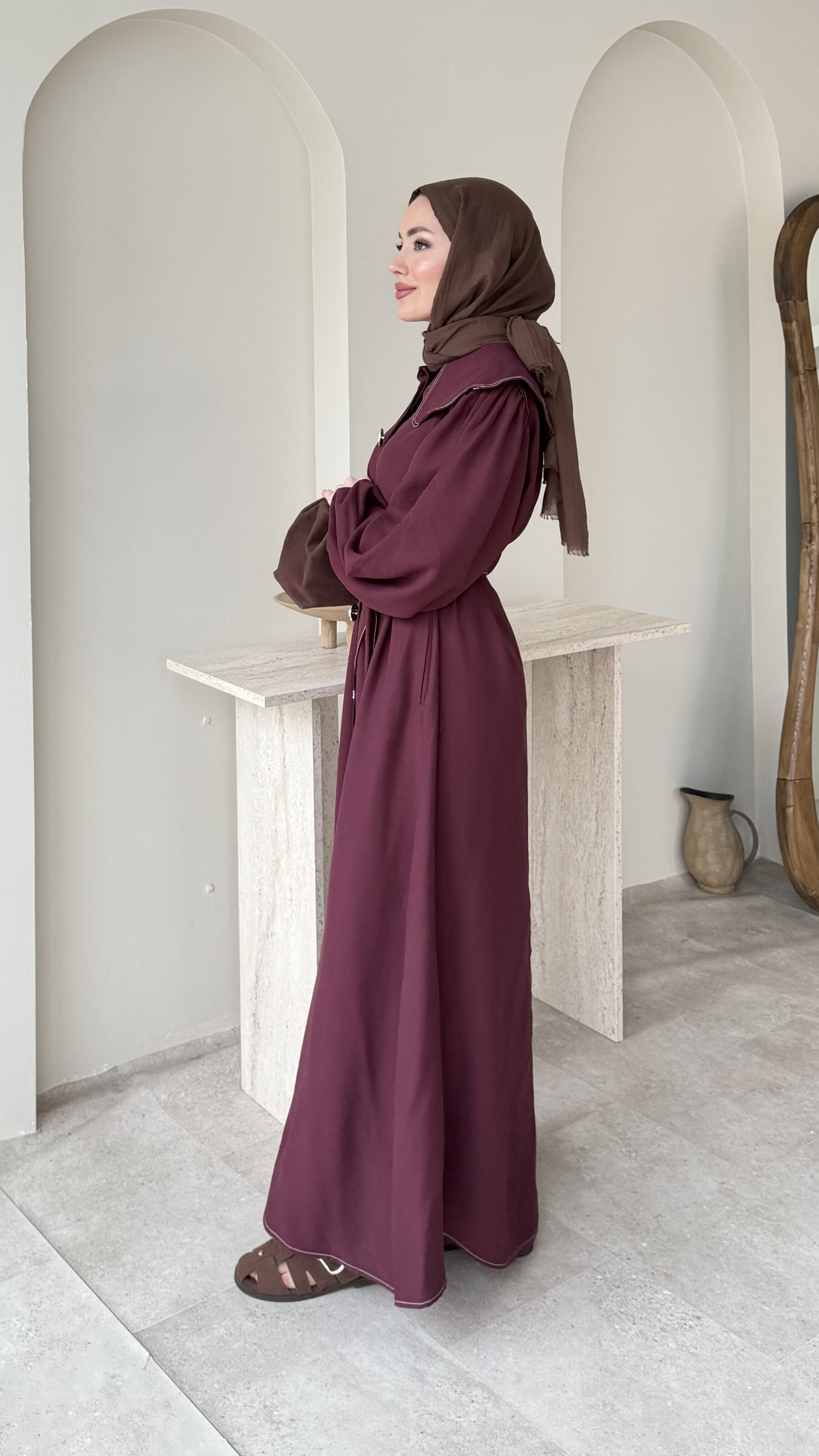 Yumi Şal Yaka Takım – Bordo